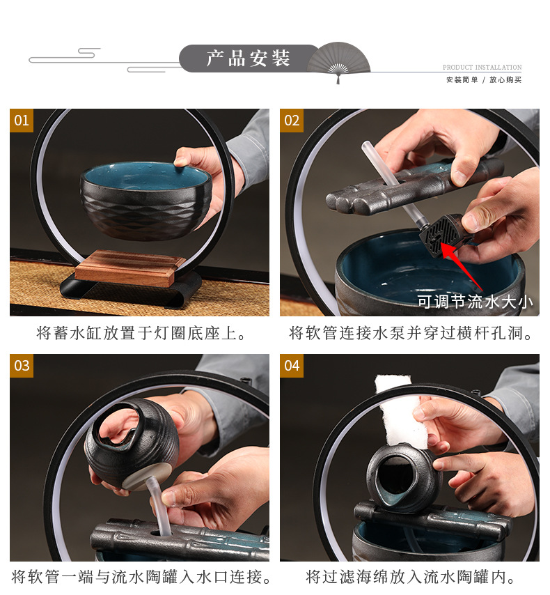 창조적 인 세라믹 흐르는 물 장식 행운의 거실 순환 물고기 탱크 분수 사무실 데스크탑 장식 오프닝 선물스토어 가기