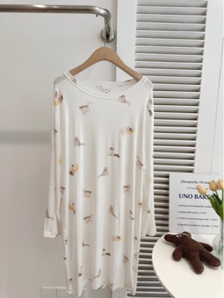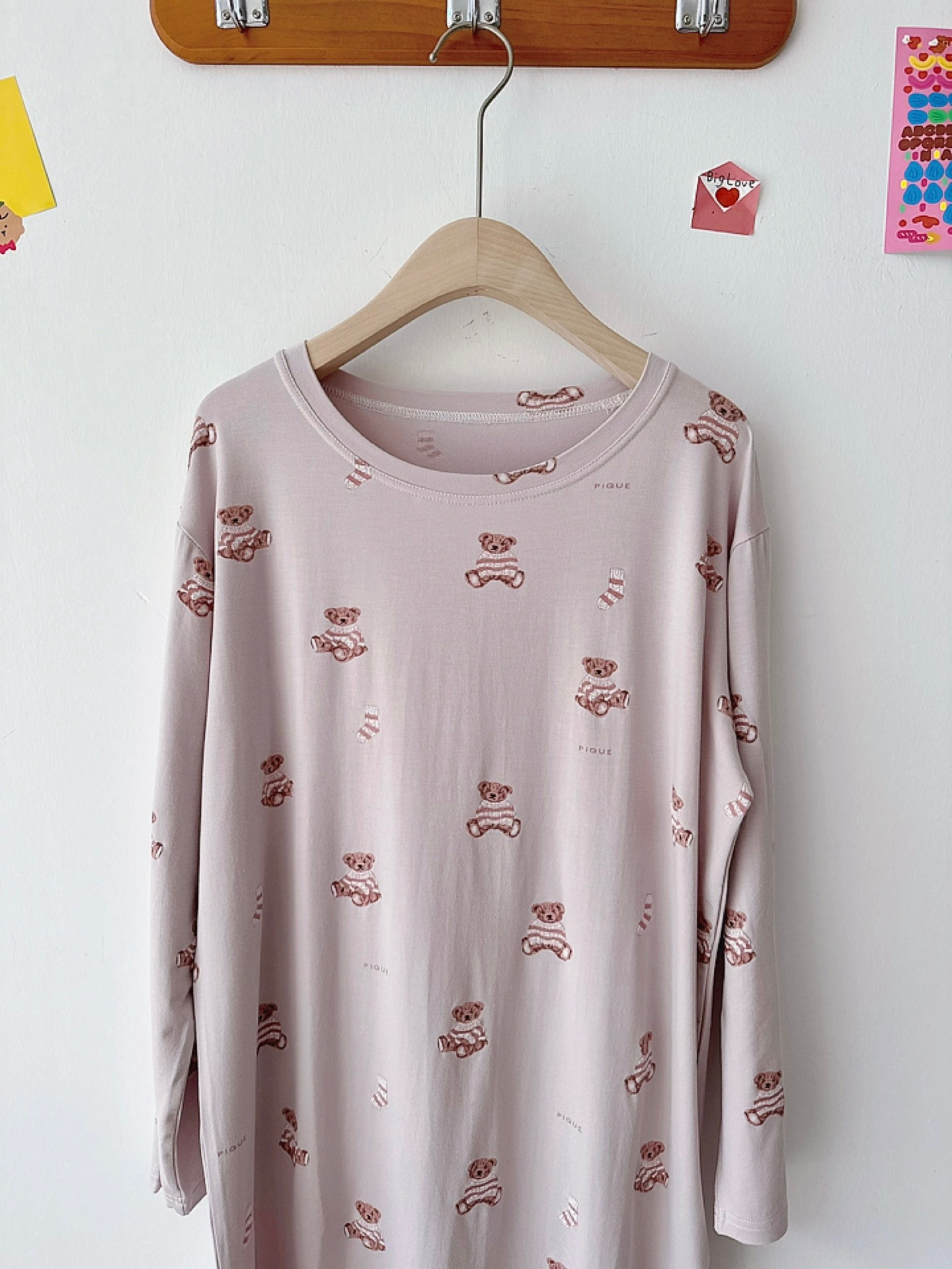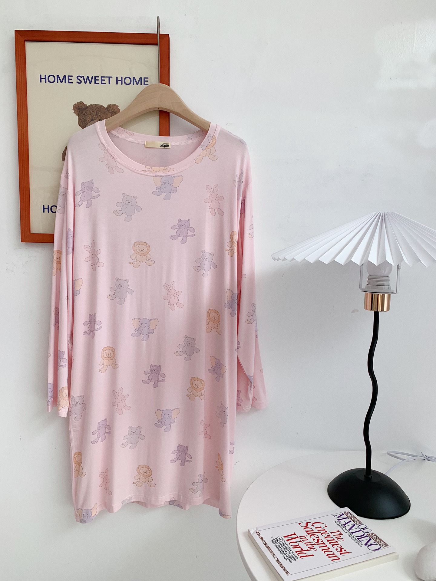 Gp 봄과 여름 새로운 여성 모달 만화 곰 사랑 나이트 드레스 긴 원피스 잠옷 도매스토어 가기