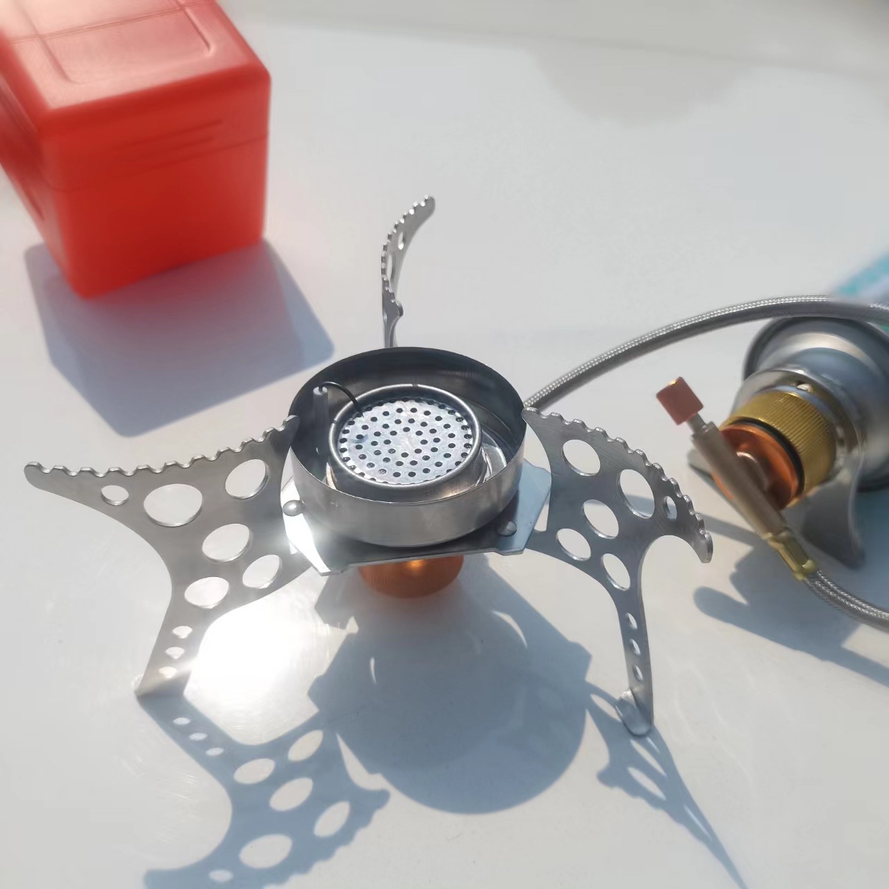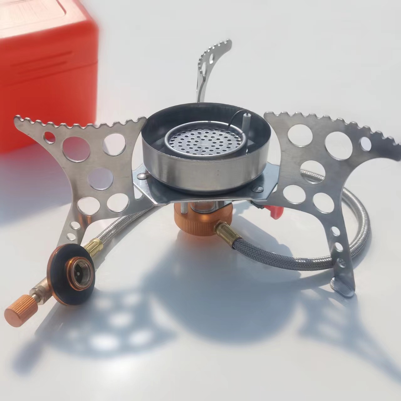 공장 직송 원형 방풍 전자 점화 야외 캠핑용 휴대용 가스 스토브스토어 가기