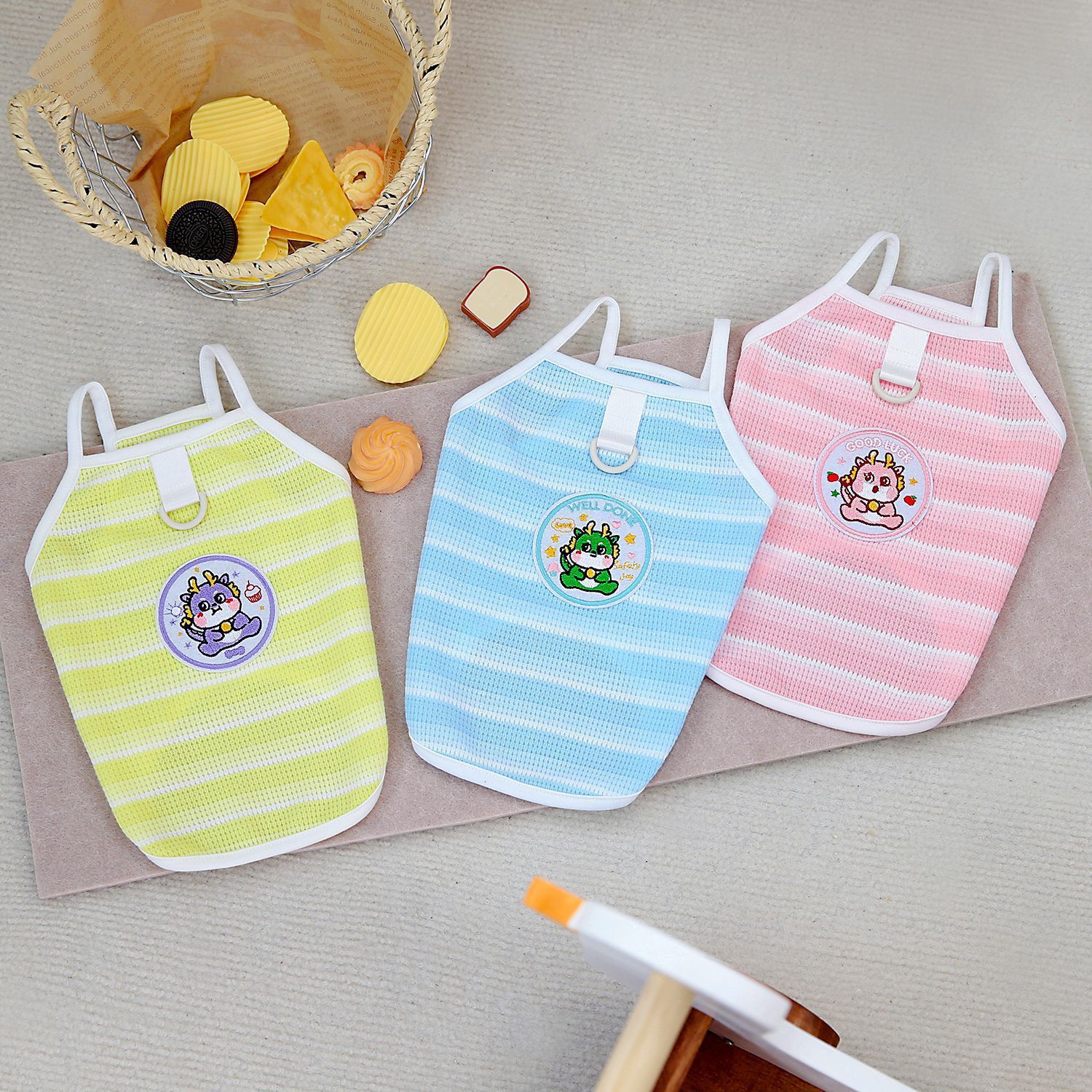 애완견 옷 애완 동물 의류 봄과 여름 곰 테디 애완 동물 조끼 슬링 작은 용 자수 로고 슬링