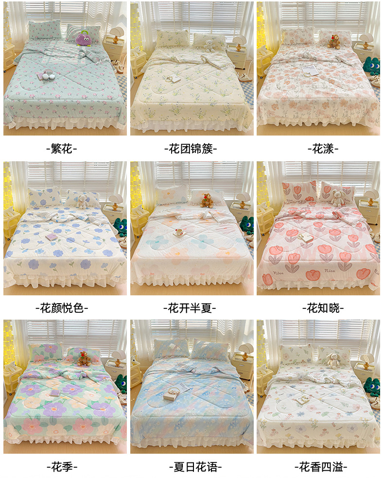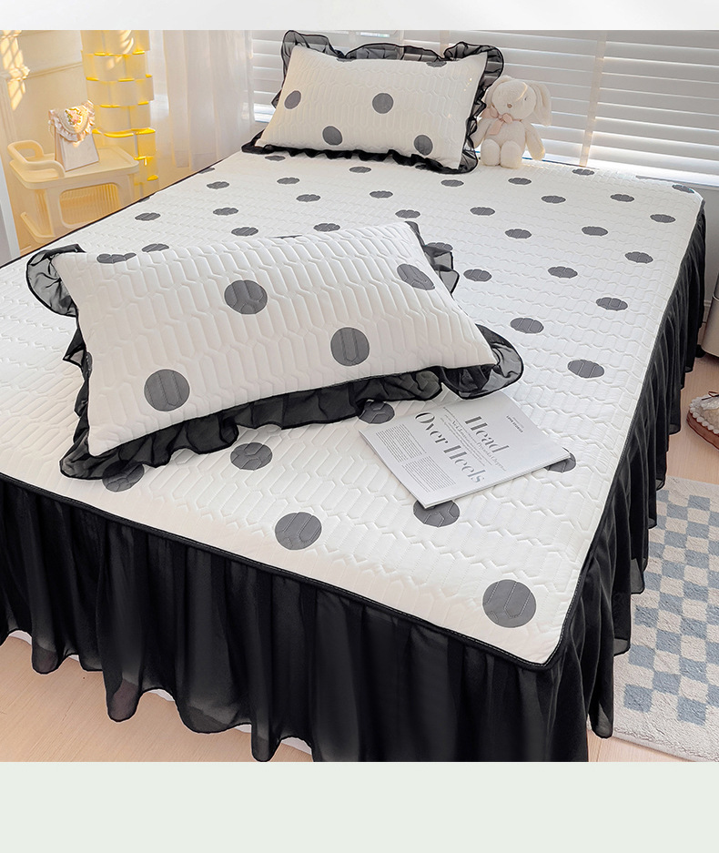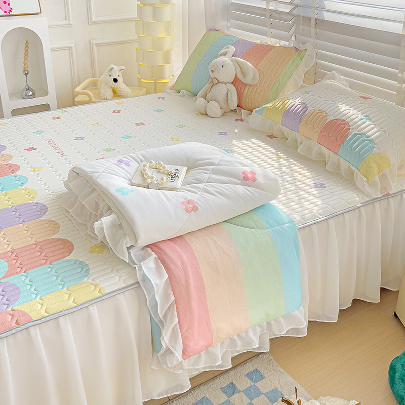 2024 새로운 여름 레이스 만화 공주 스타일 작은 신선한 라텍스 매트 침대 치마 여름 퀼트 4 피스 도매