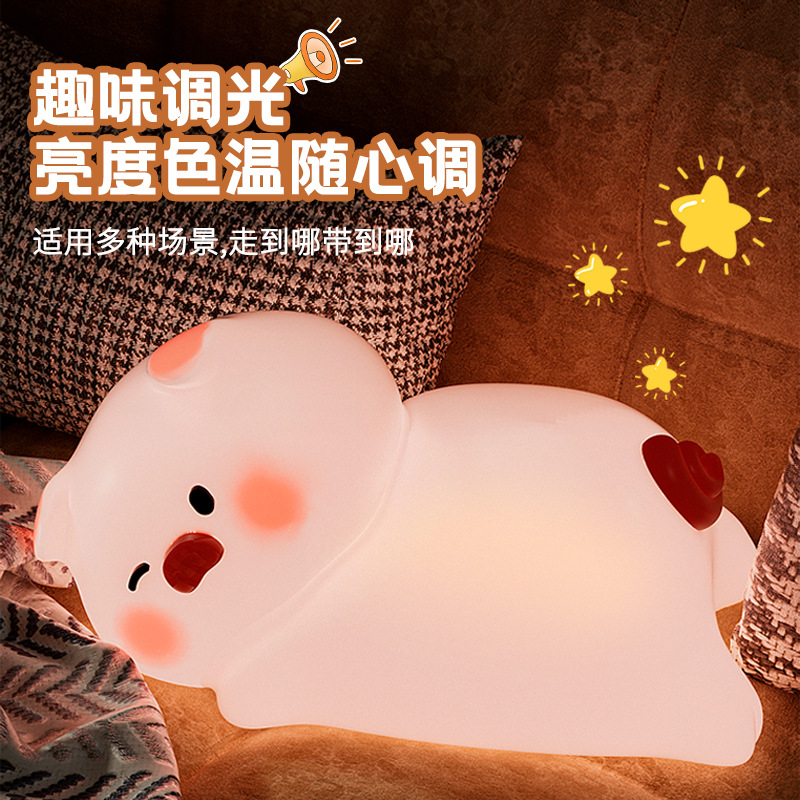 창조적 인 새로운 만화 휴대용 돼지 팻 밤 라이트 침실 침대 옆 어린이 간호 수면 실리콘 팻 라이트