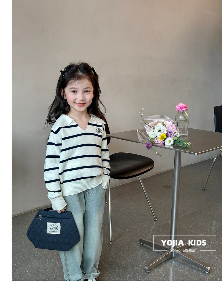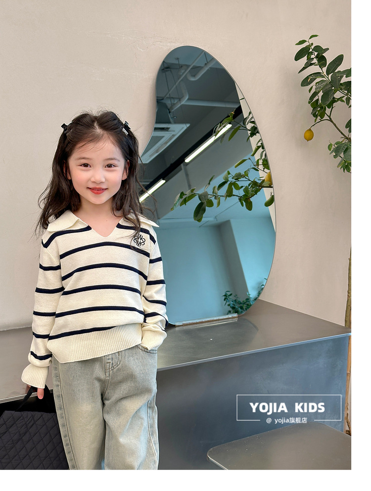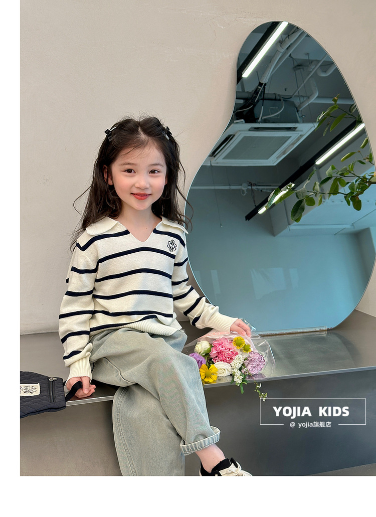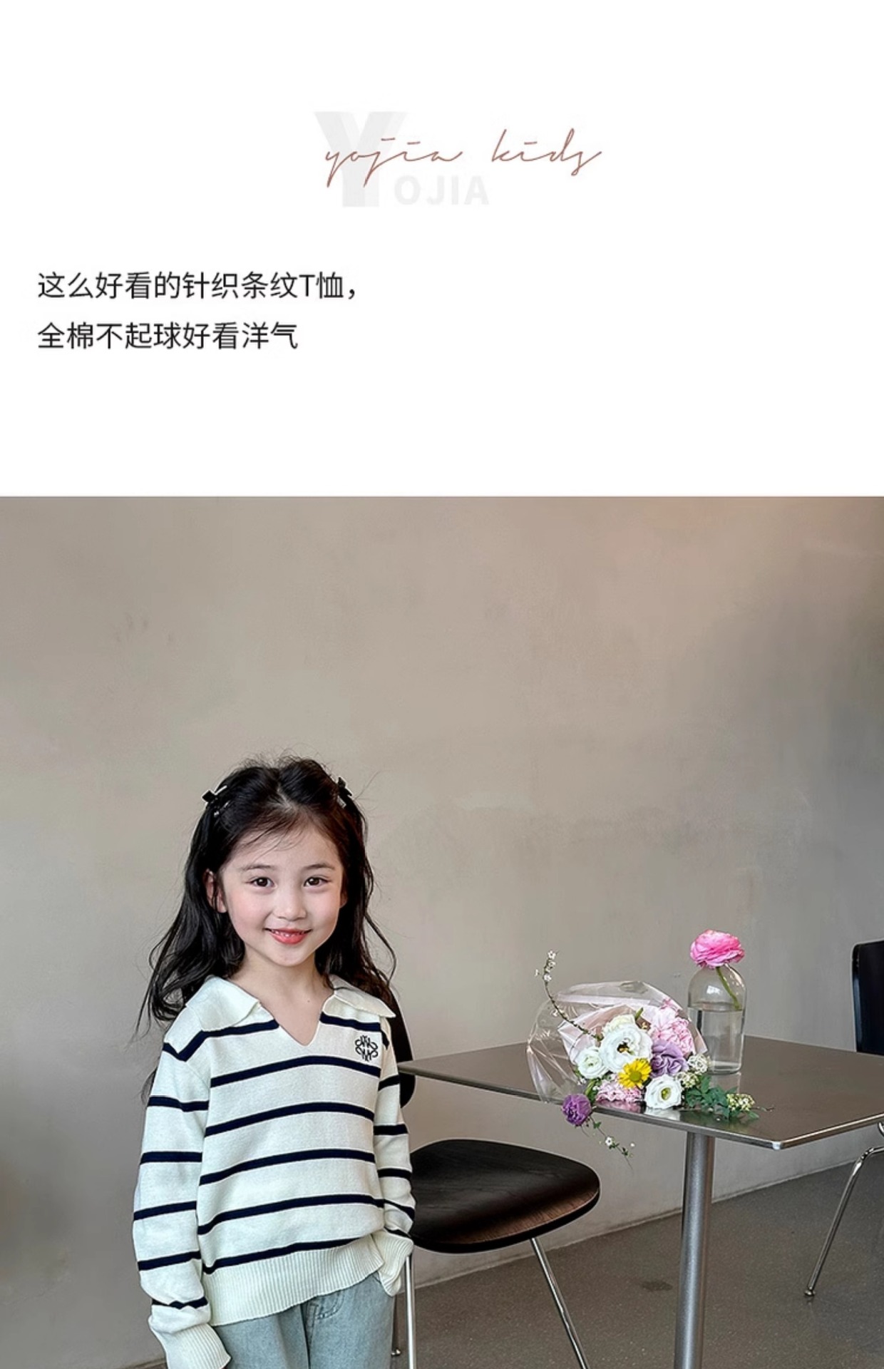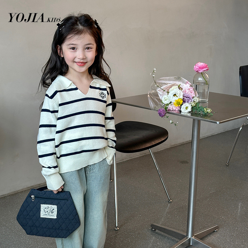 YOJIA 소녀 스웨터 얇은 아동복 2024 새로운 봄과 가을 어린이 봄 의류 기본 셔츠 긴 소매스토어 가기