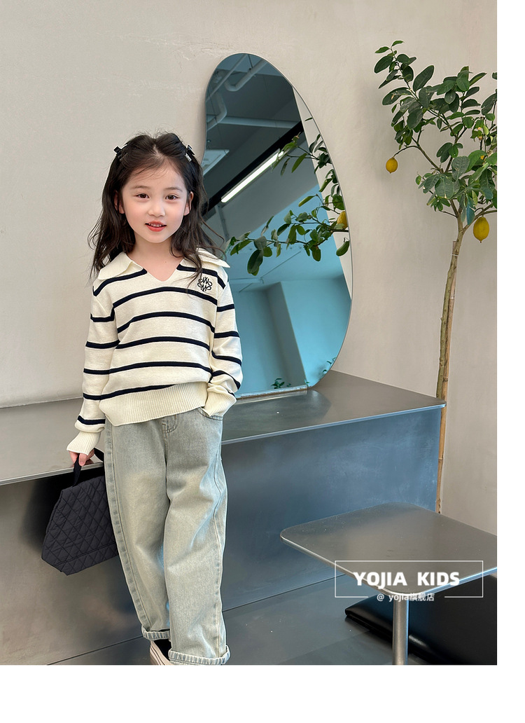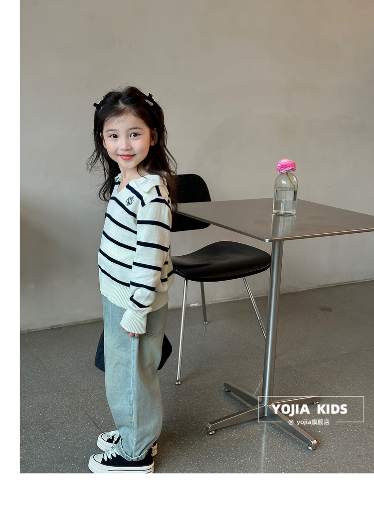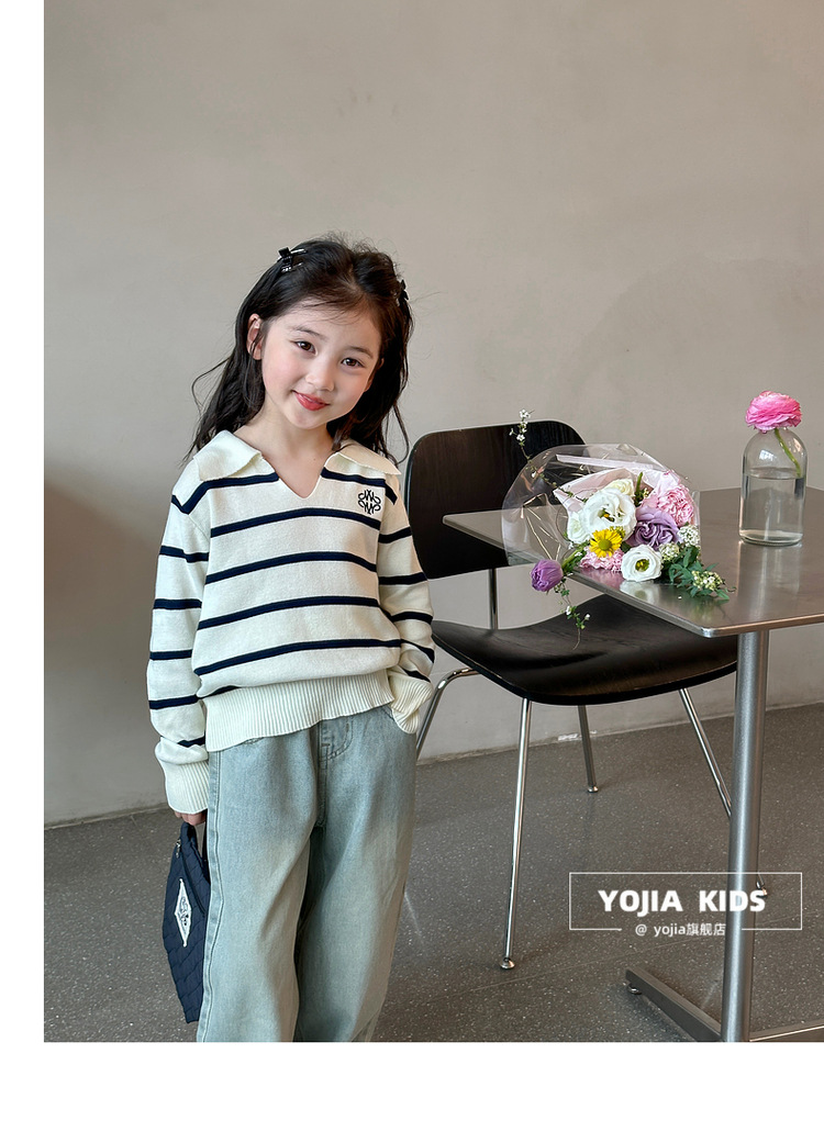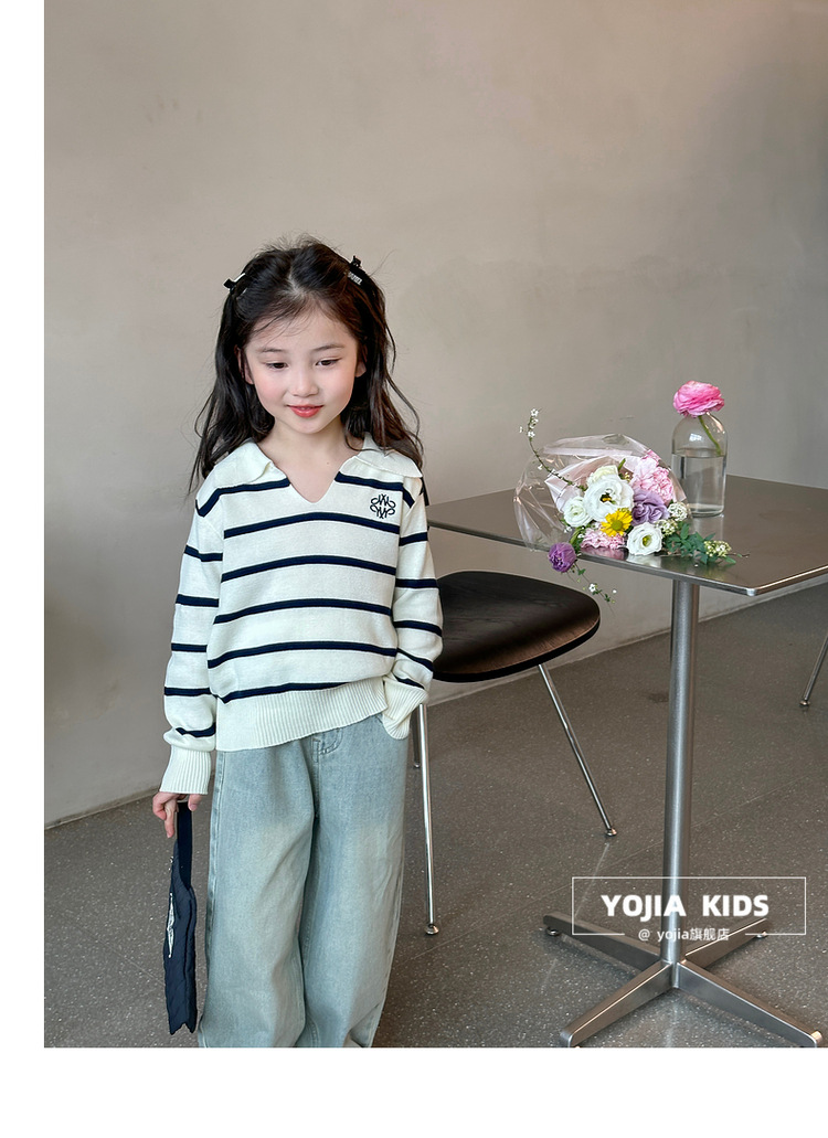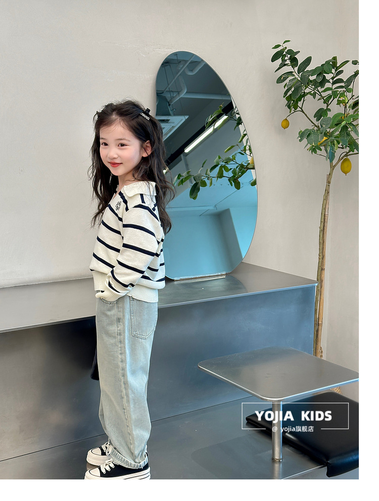 YOJIA 소녀 스웨터 얇은 아동복 2024 새로운 봄과 가을 어린이 봄 의류 기본 셔츠 긴 소매스토어 가기