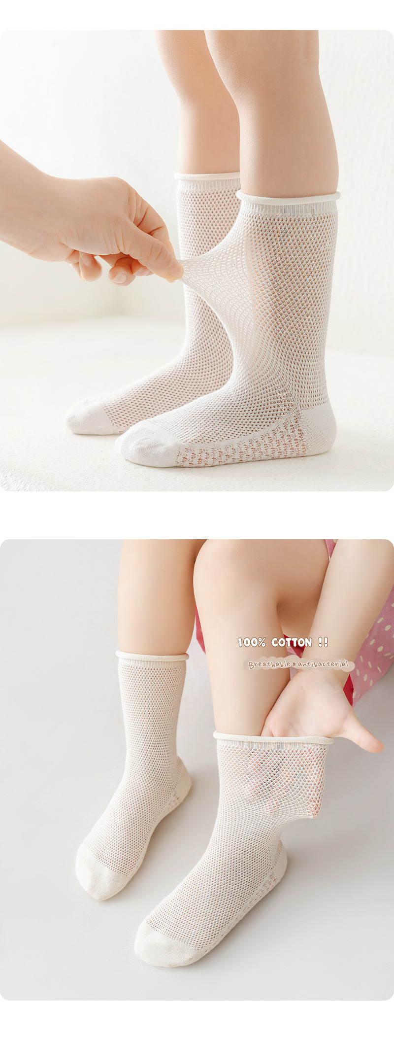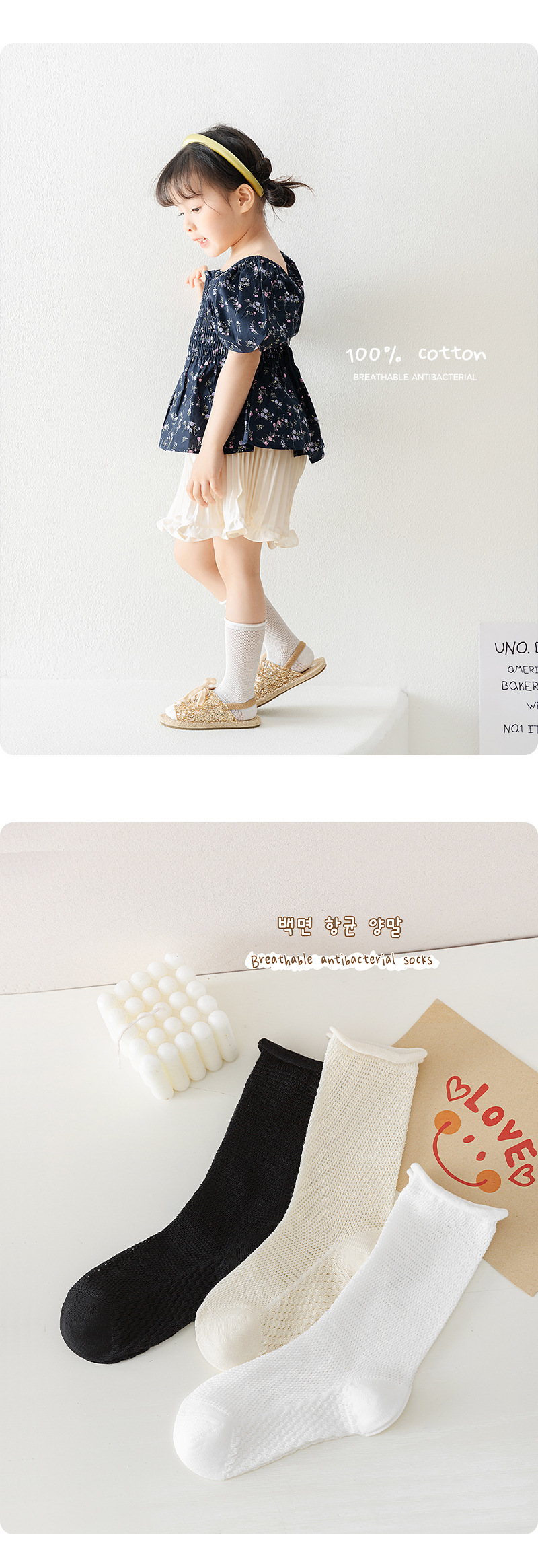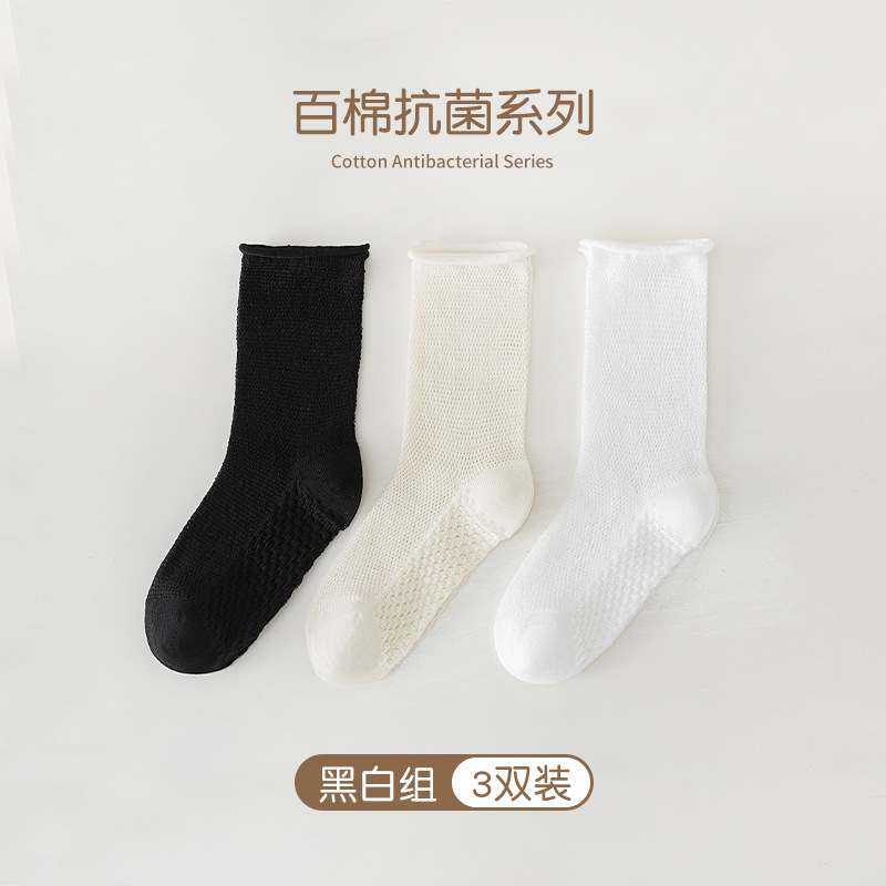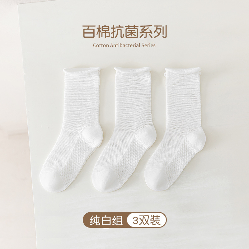 어린이 양말 2024 봄과 여름 새로운 서양식 소녀의 순수한면 통기성 항균 양말 소년 컬링 중반 종아리 길이 양말스토어 가기