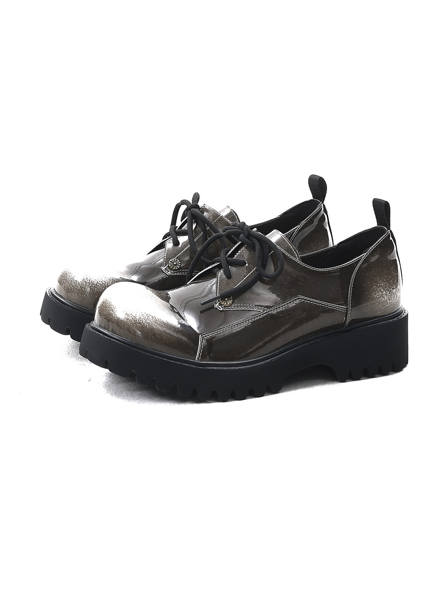 남성과 여성의 같은 스타일 2024 봄 새로운 Maillard 스타일 가죽 신발 여성의 세련된 오래된 플랫폼 더비 신발 쿨