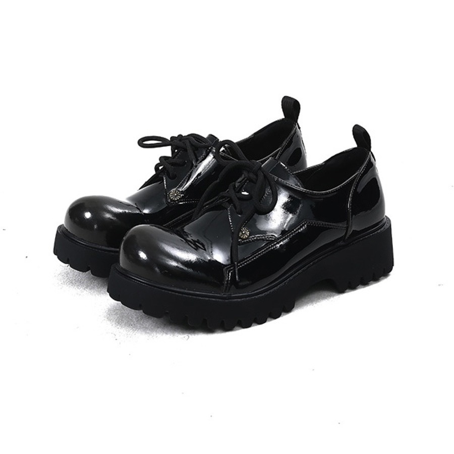 남성과 여성의 같은 스타일 2024 봄 새로운 Maillard 스타일 가죽 신발 여성의 세련된 오래된 플랫폼 더비 신발 쿨스토어 가기