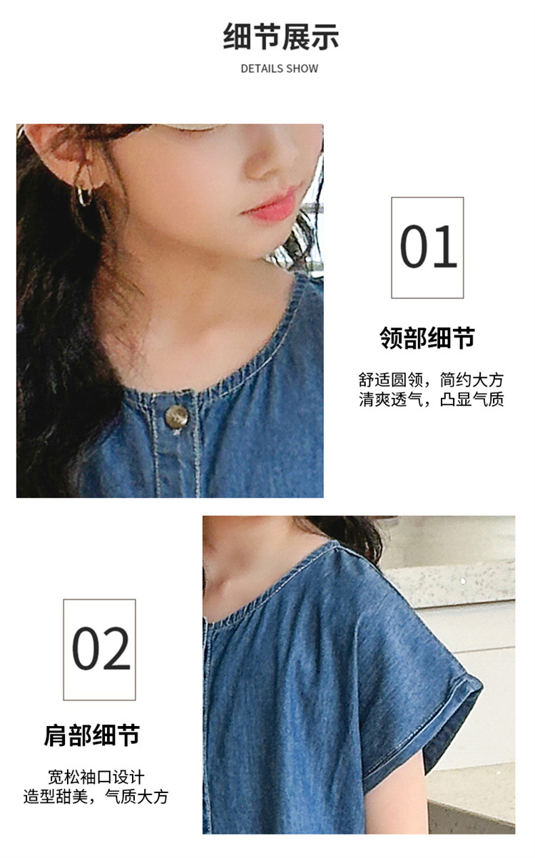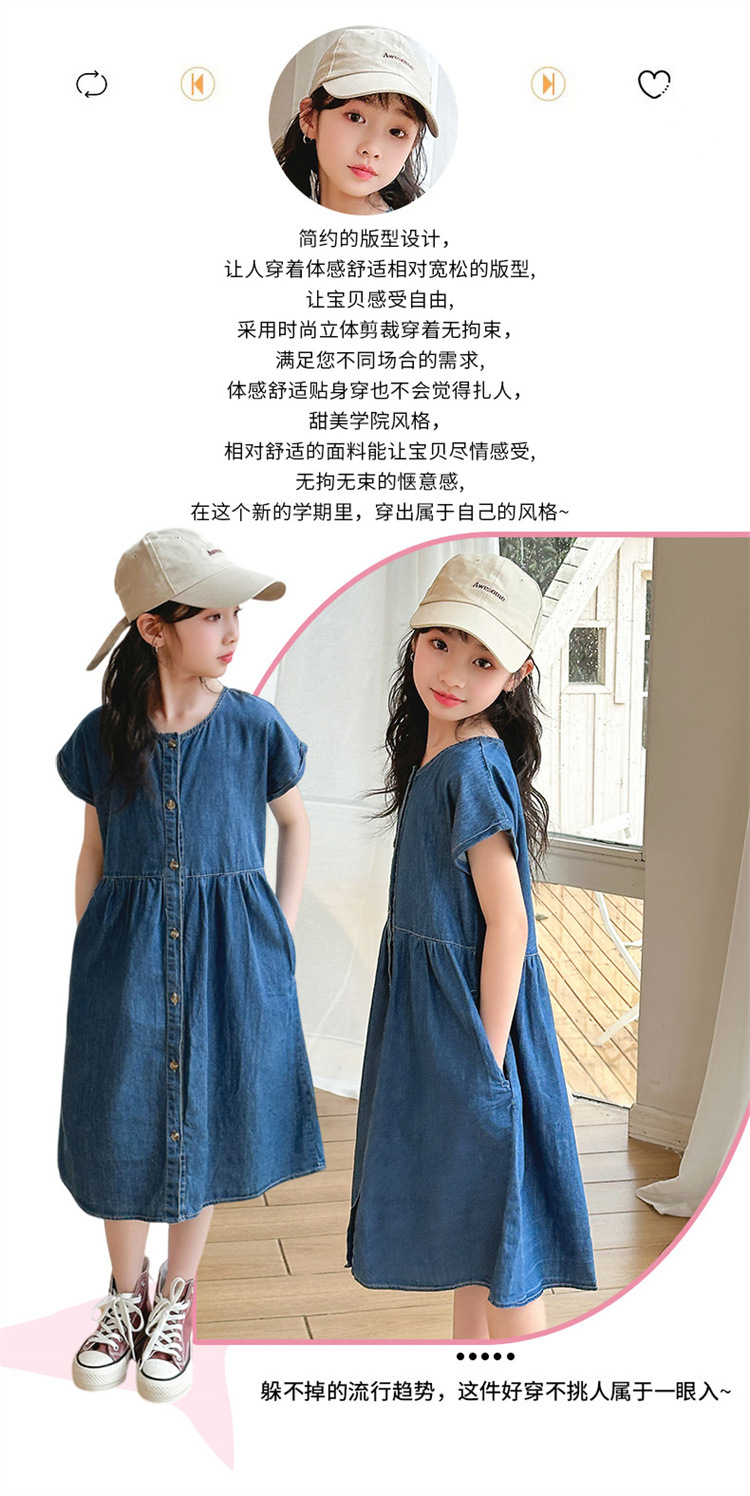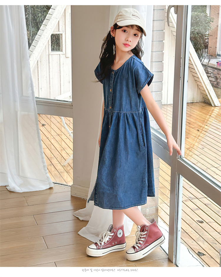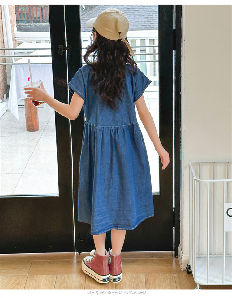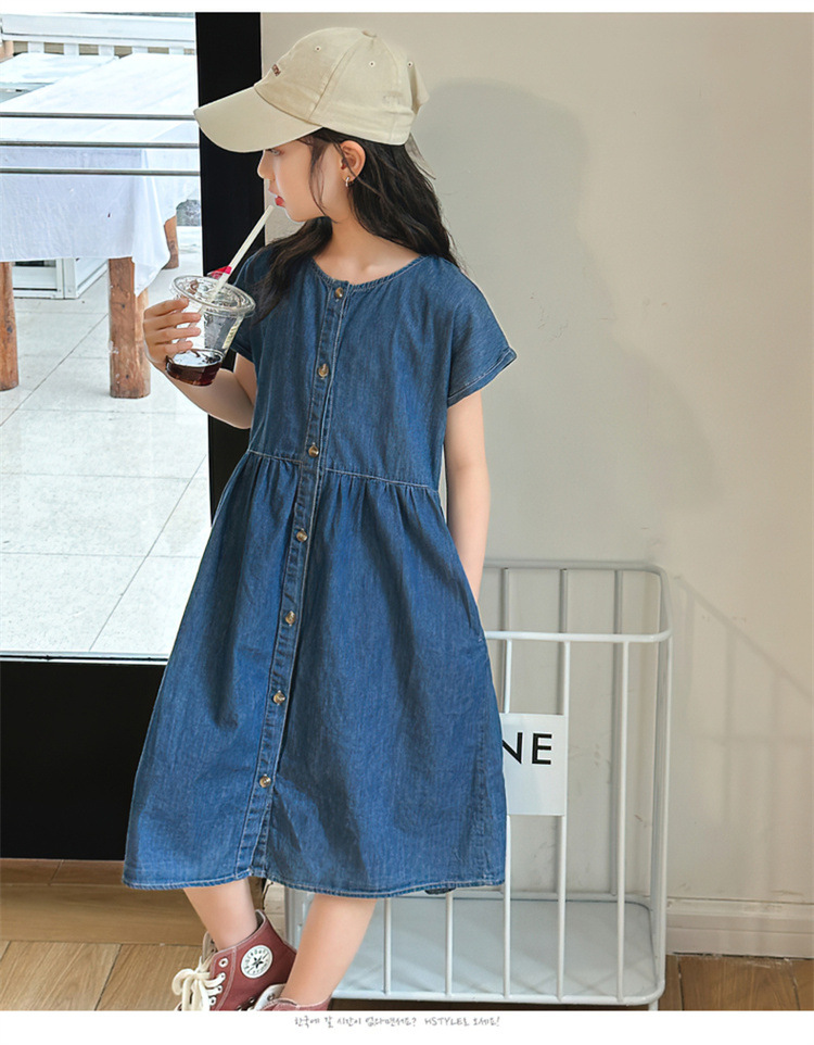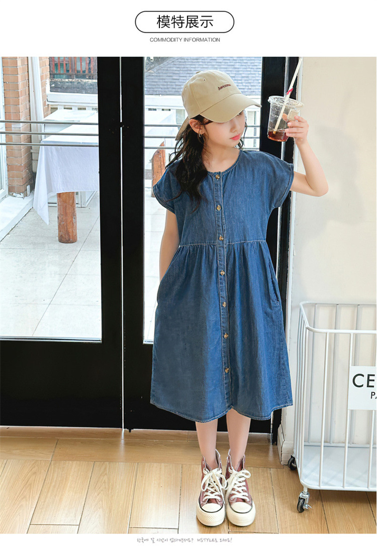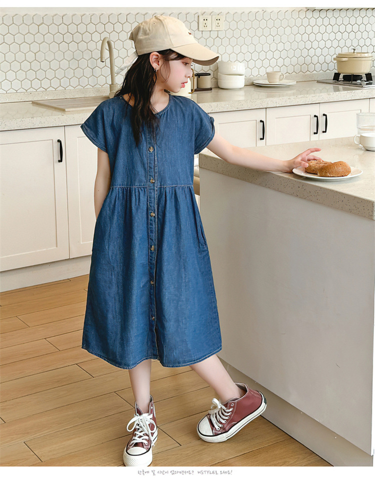 2024 여름 새로운 소녀 서양식 데님 원피스 한국식 어린이 유행 긴 원피스 중형 및 큰 어린이 공주 원피스스토어 가기