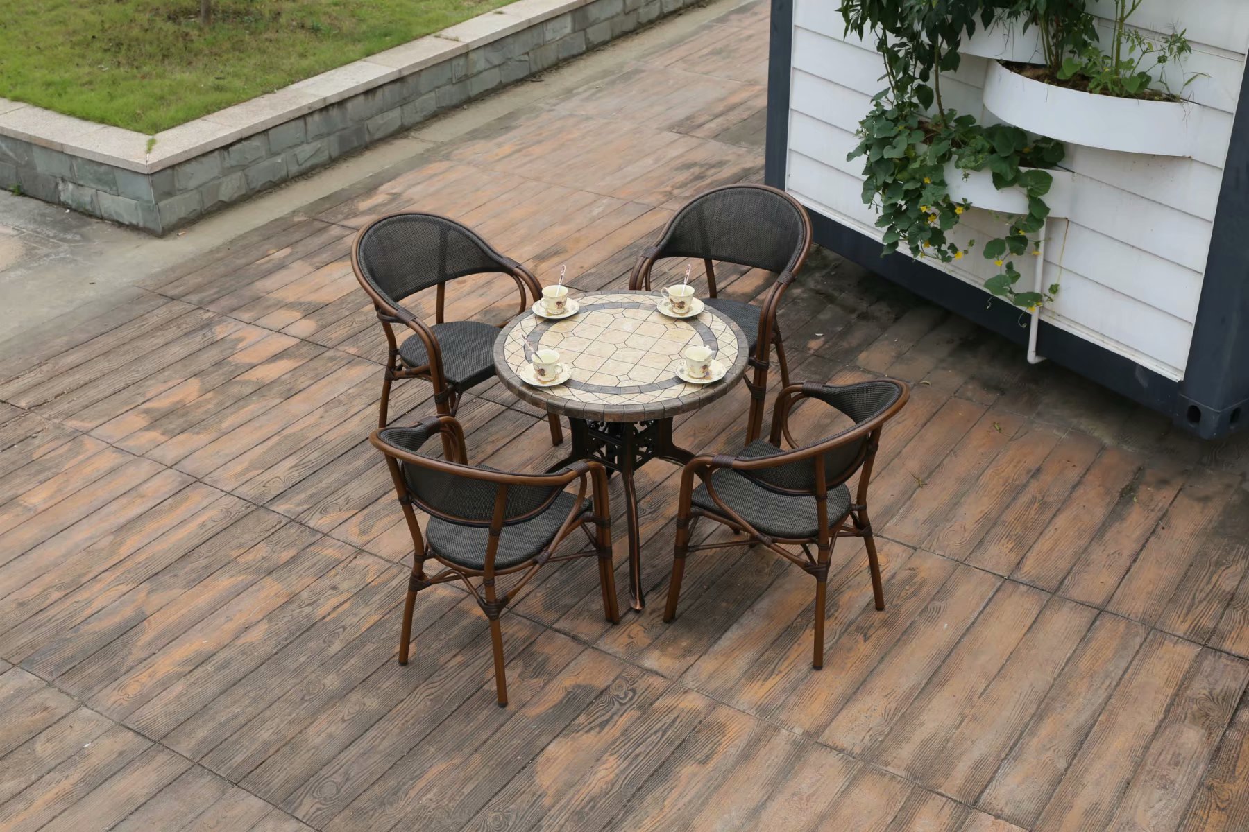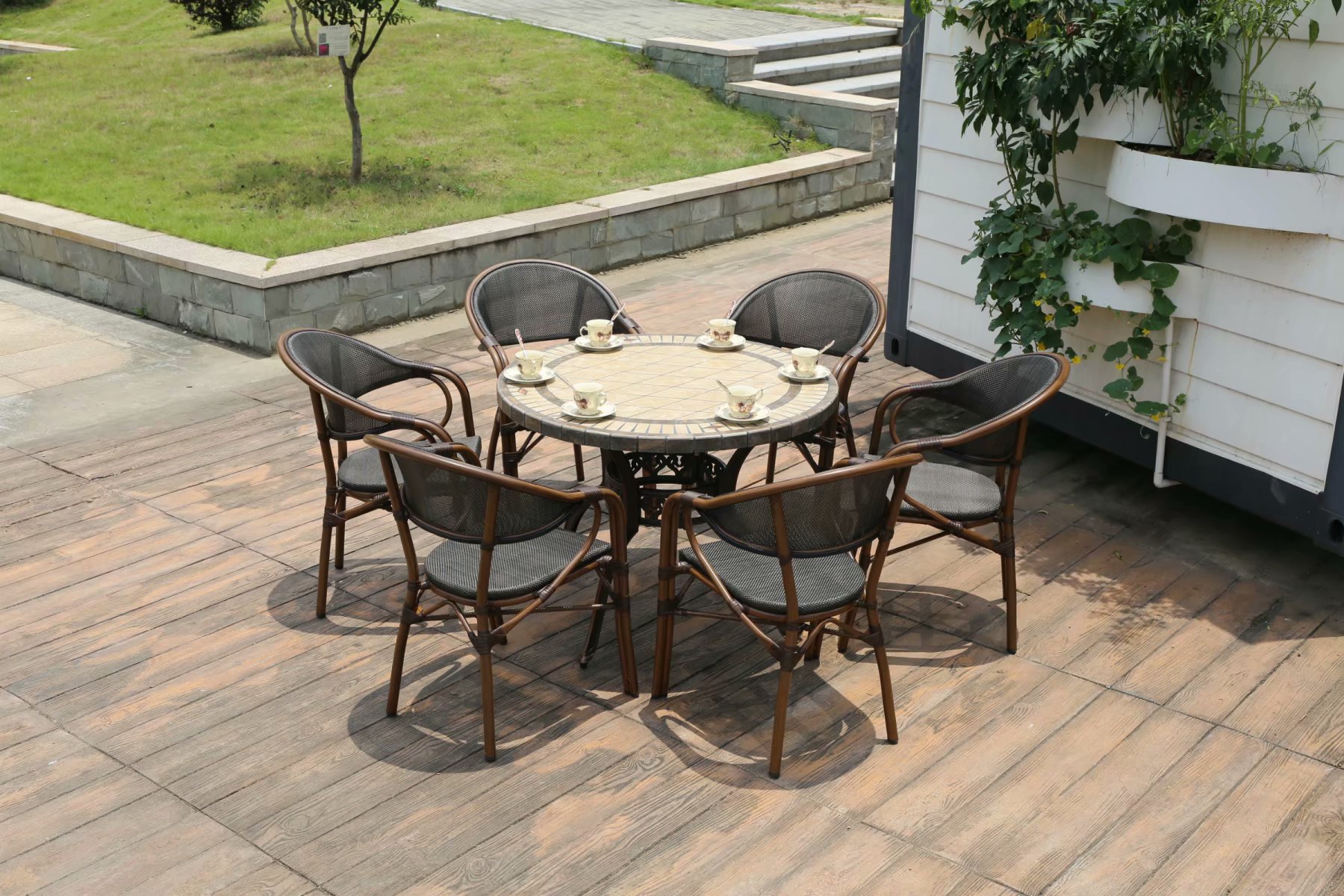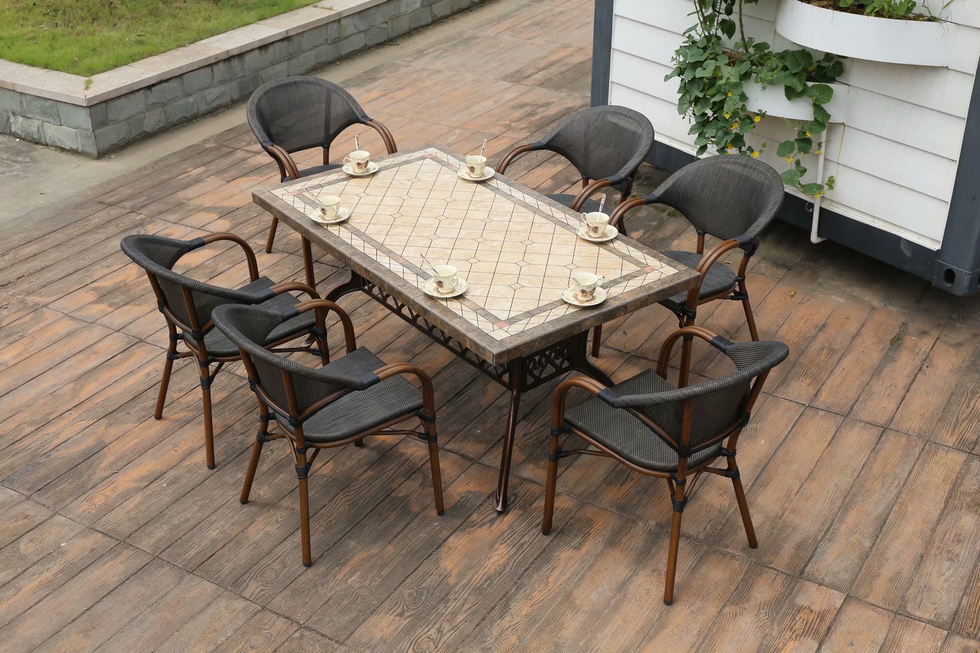 야외 금속 테이블과 의자 정원 주조 알루미늄 바베큐 테이블 빌라 발코니 정원 홈 테이블과 의자 조합 철 긴 식탁