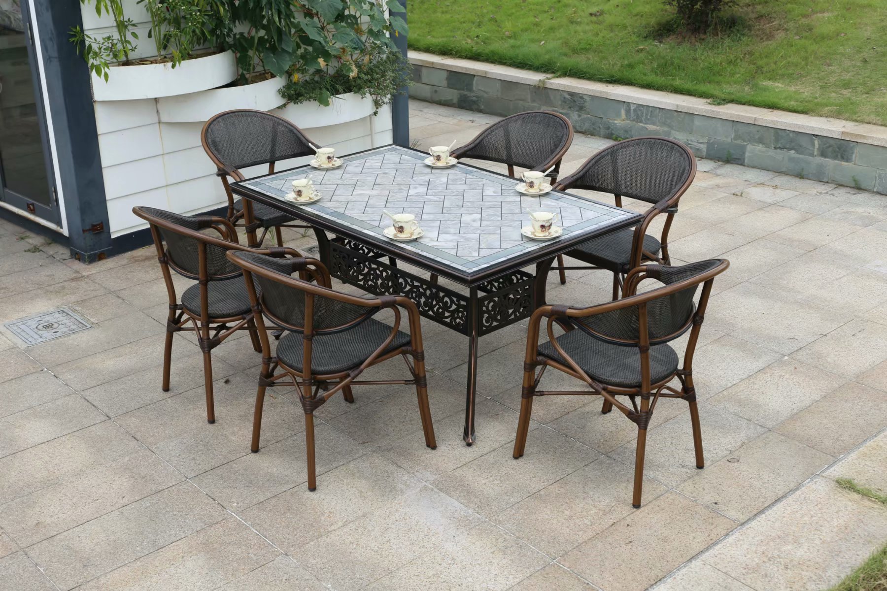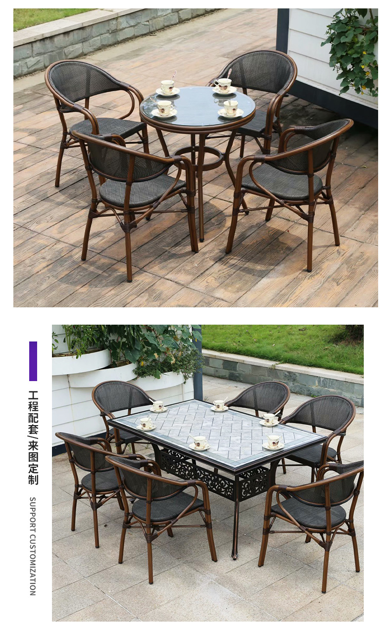 야외 금속 테이블과 의자 정원 주조 알루미늄 바베큐 테이블 빌라 발코니 정원 홈 테이블과 의자 조합 철 긴 식탁스토어 가기