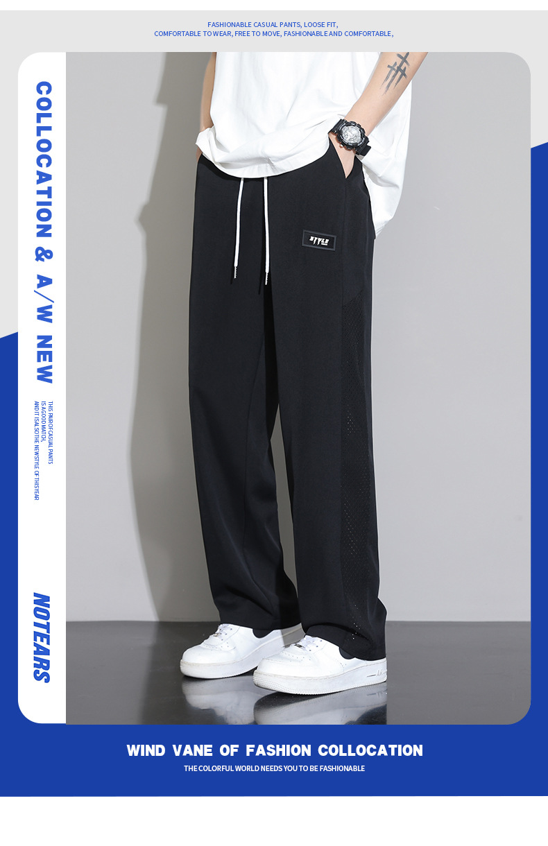 NASA 아이스 실크 바지 남자 여름 얇은 메쉬 빠른 건조 느슨한 스트레이트 트렌디 올 매치 캐주얼 바지