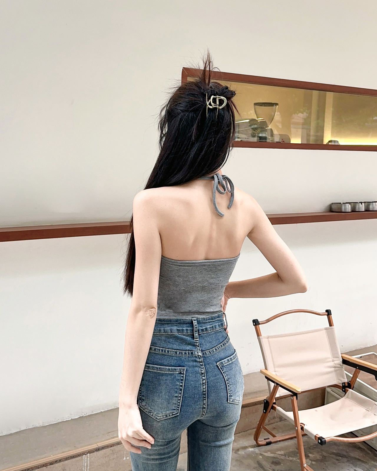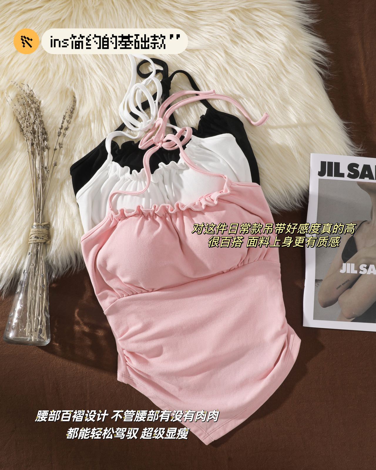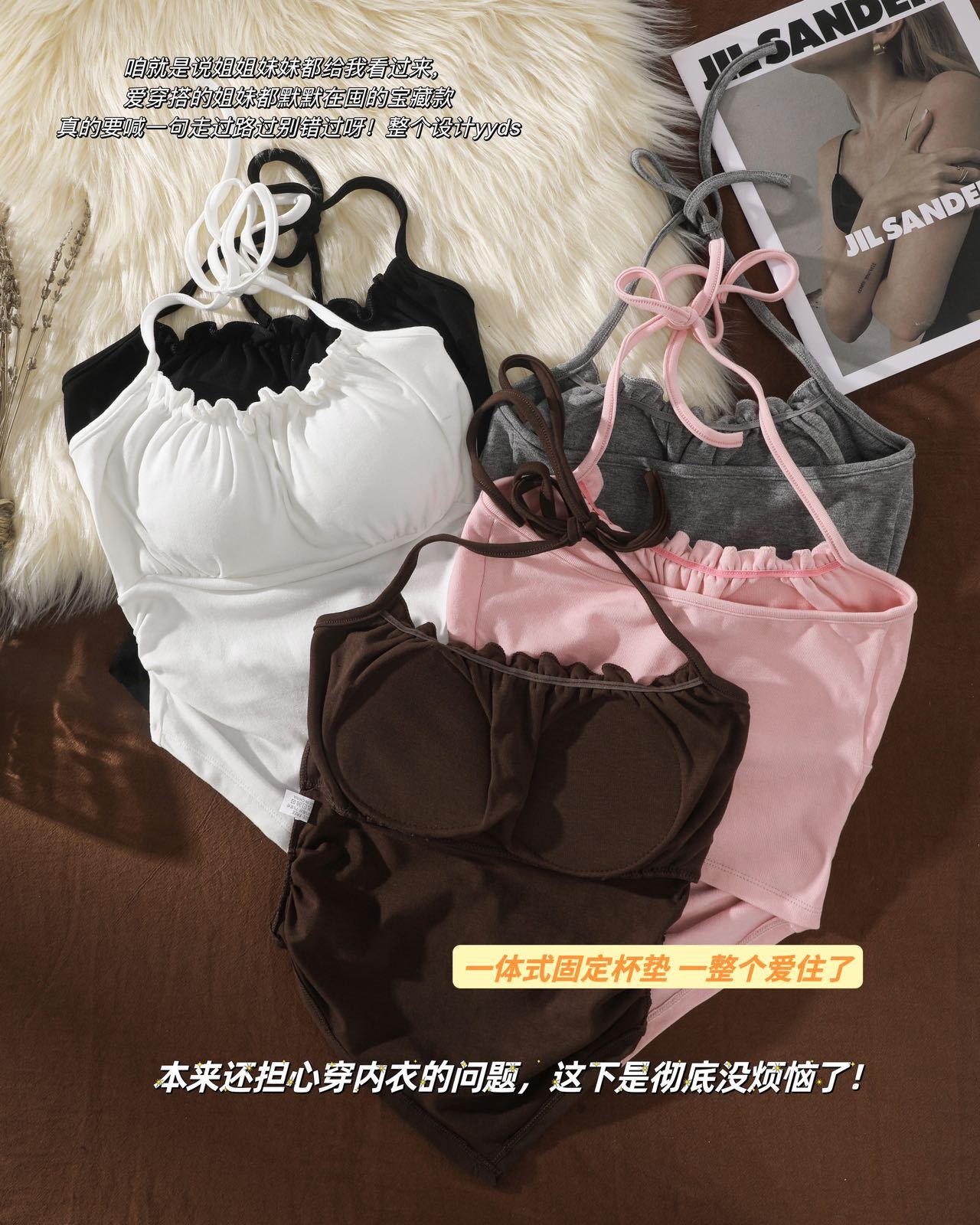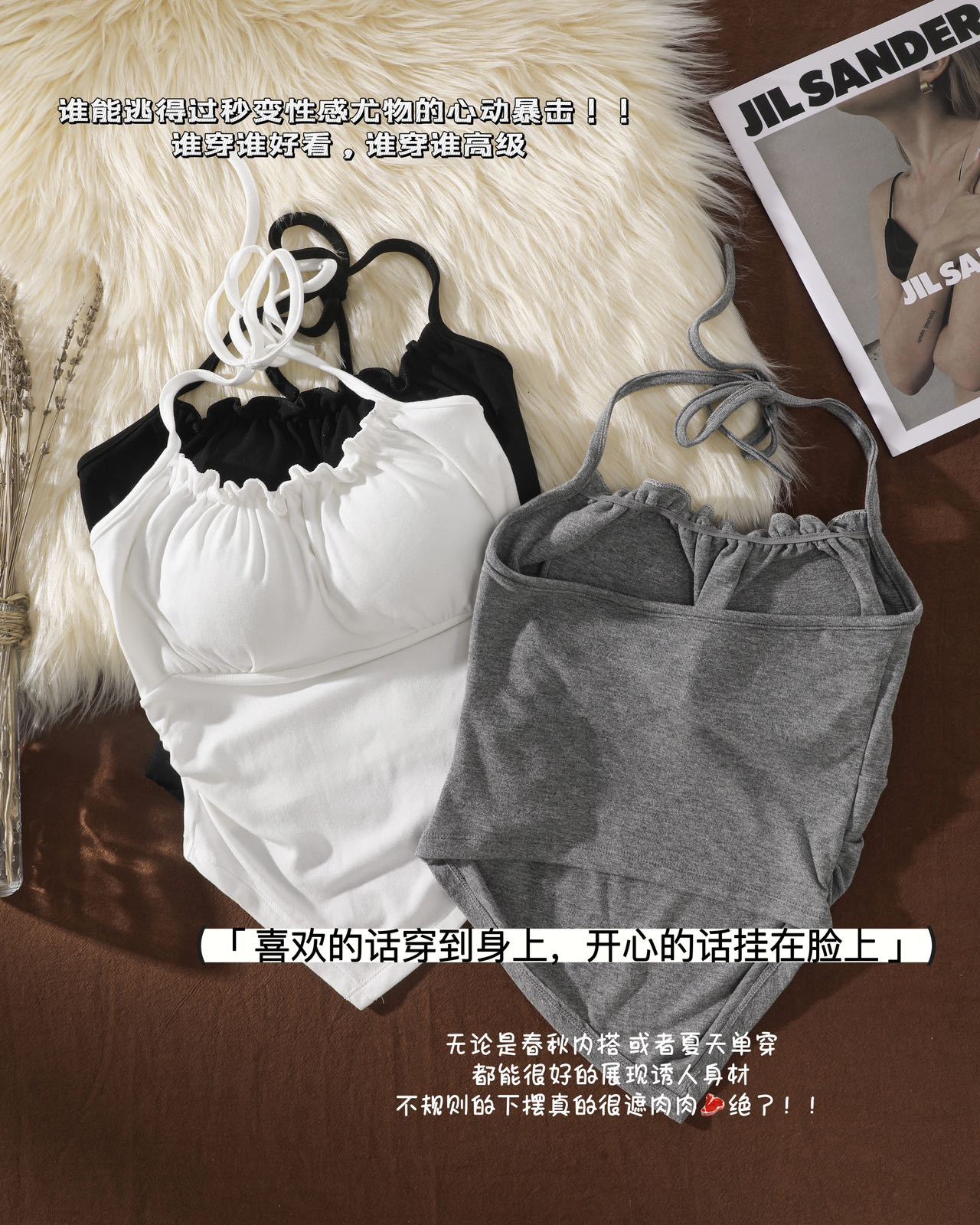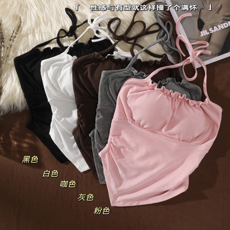 여성을위한 뜨거운 소녀 바닥 조끼를위한 Halter camisole 여름 순수한 욕망 섹시한 화이트 매치 뷰티 백 가슴 패드 탑으로 슬리밍