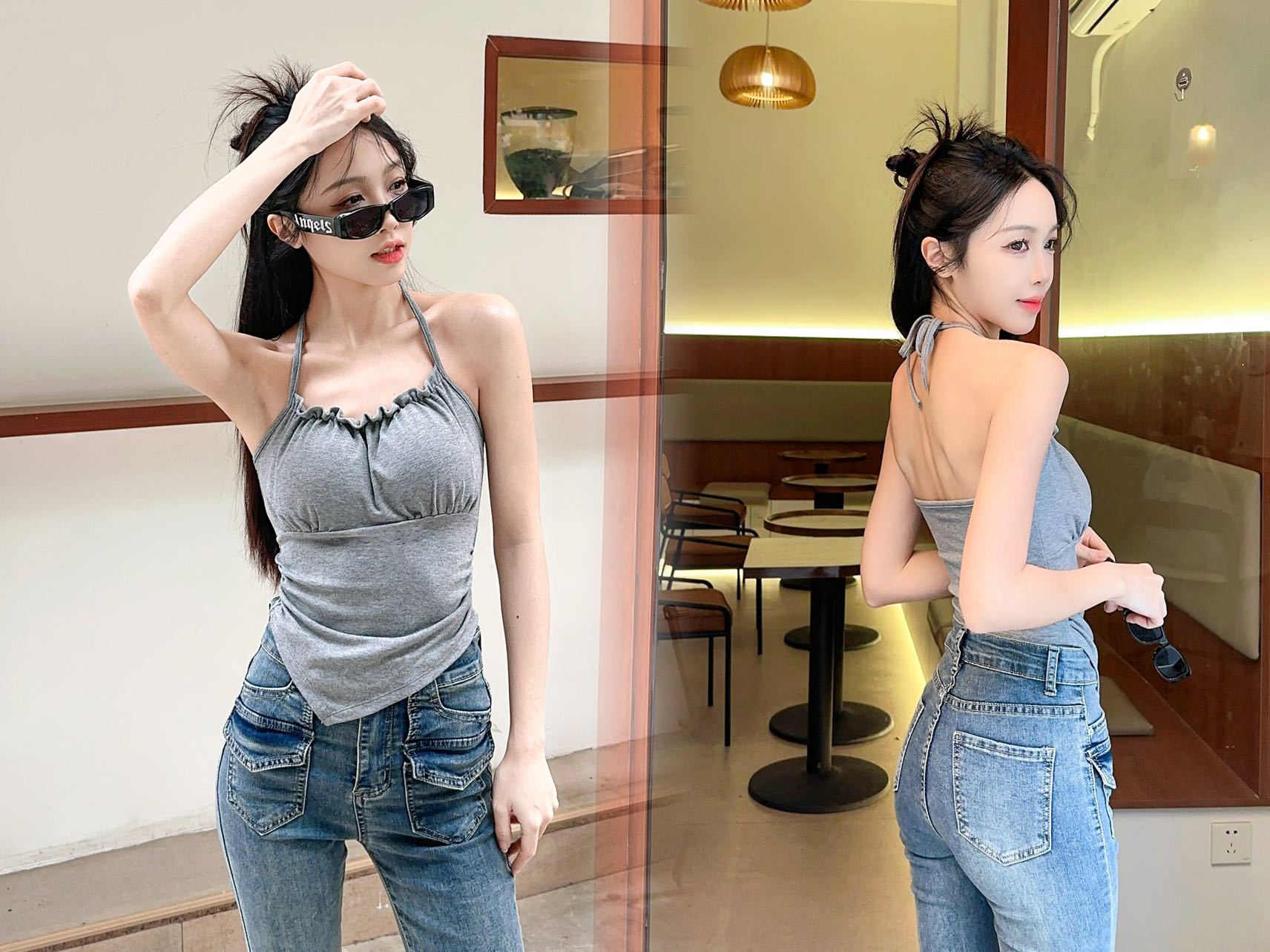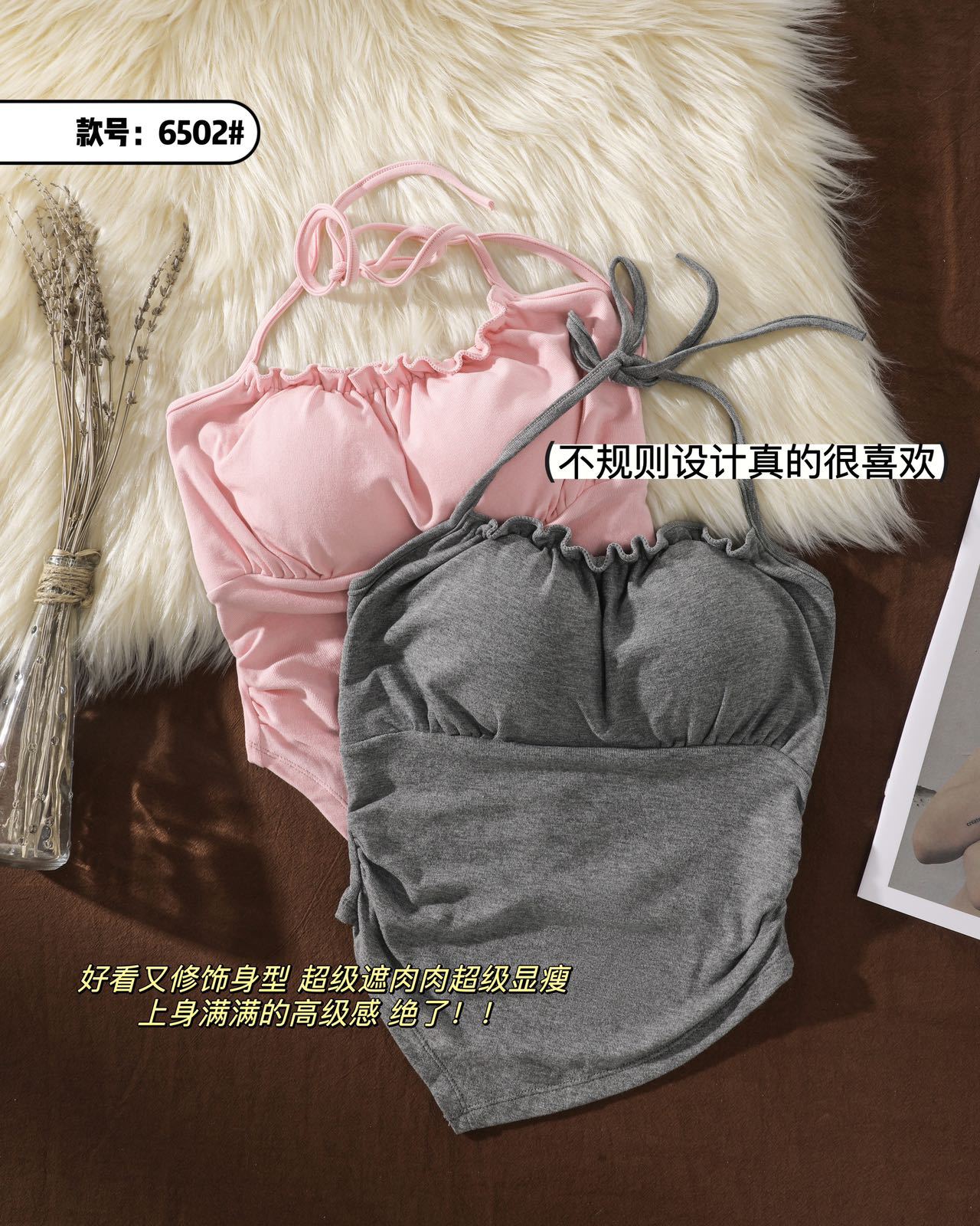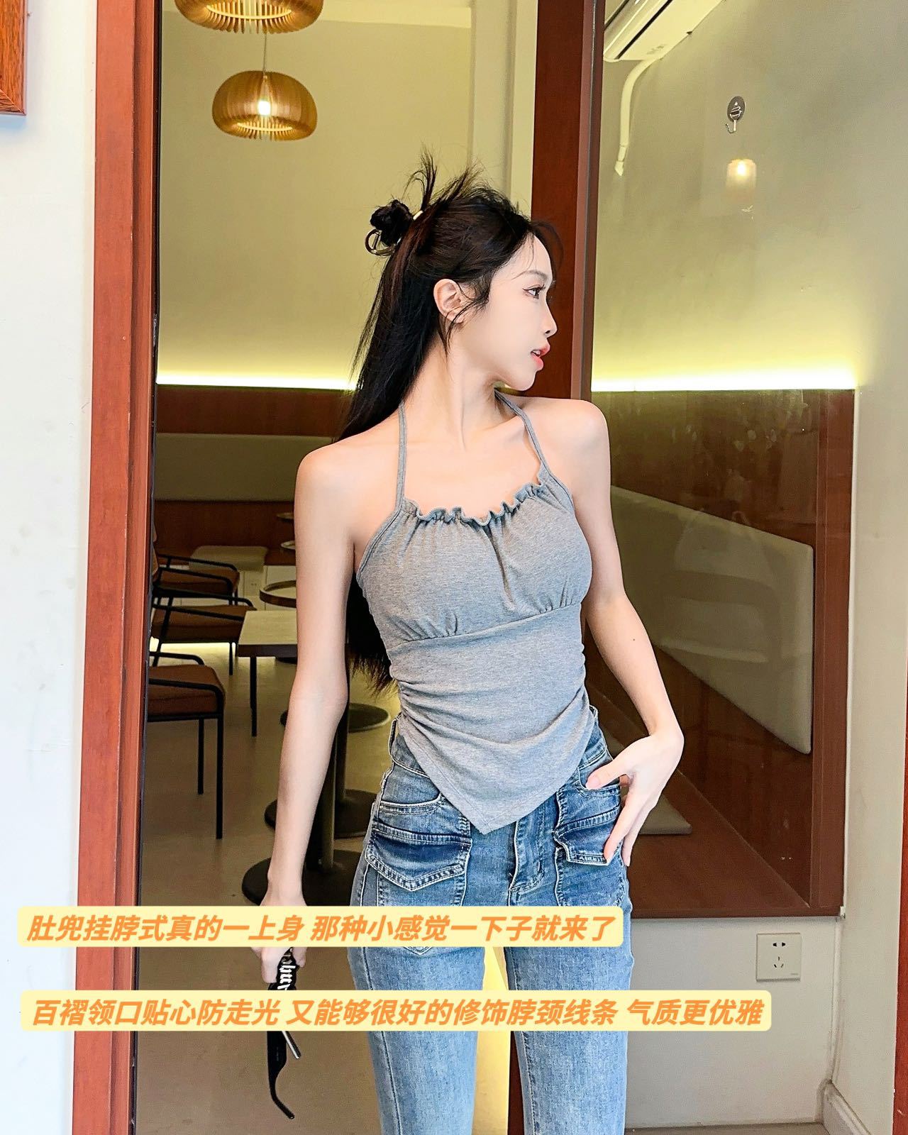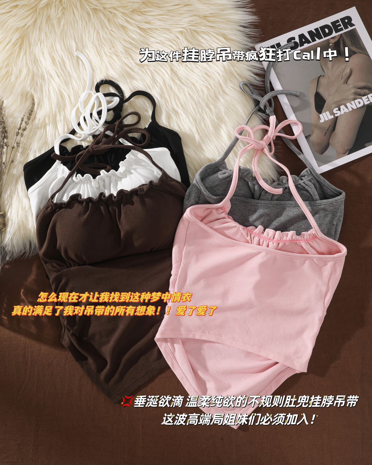 여성을위한 뜨거운 소녀 바닥 조끼를위한 Halter camisole 여름 순수한 욕망 섹시한 화이트 매치 뷰티 백 가슴 패드 탑으로 슬리밍스토어 가기