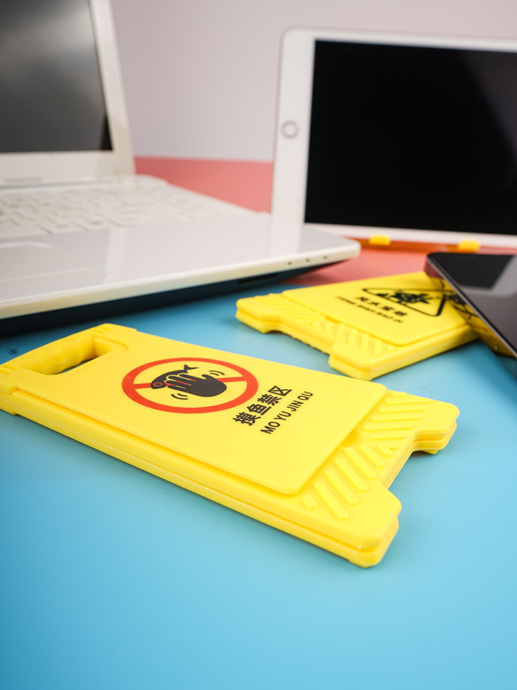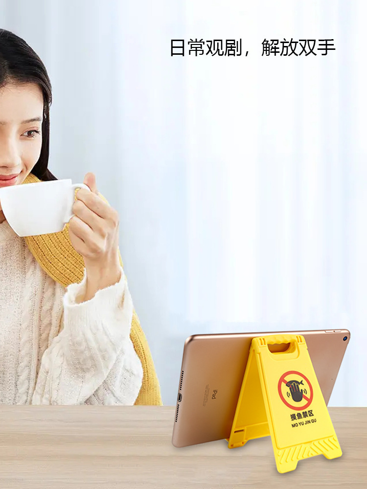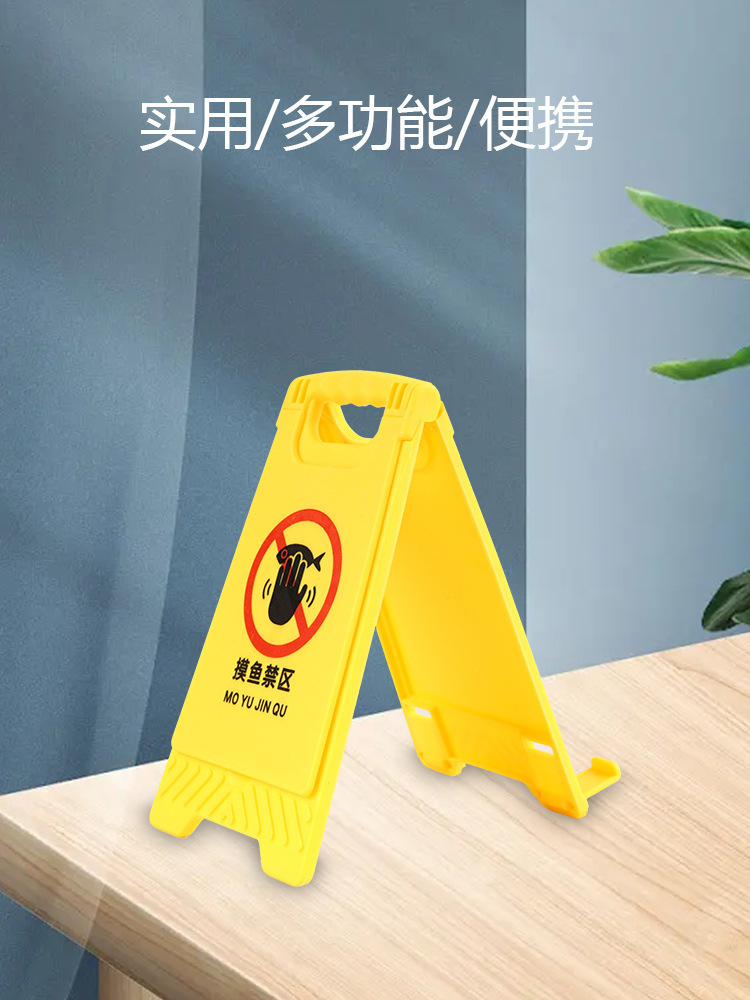 경고 표시 휴대 전화 홀더 크리 에이 티브 데스크탑 휴대 전화 홀더 메이크업 거울 양면 인쇄 로고가있는 작은 장식품스토어 가기