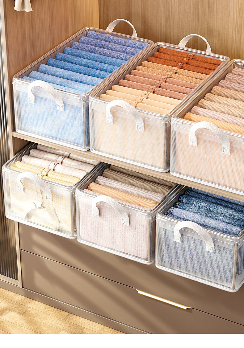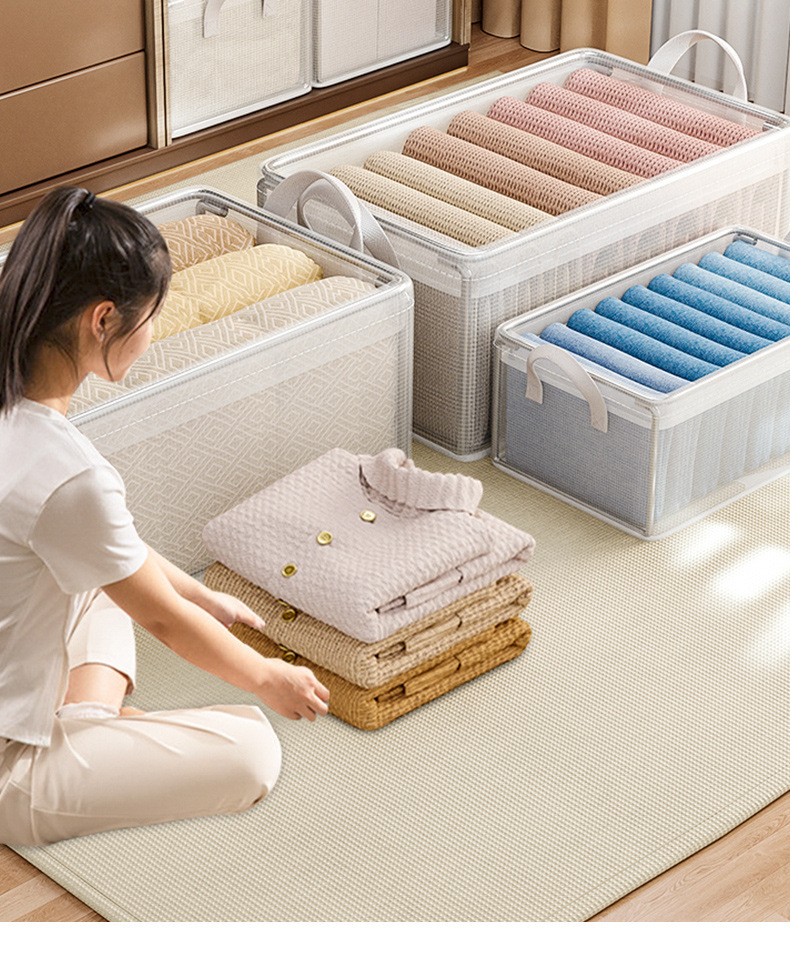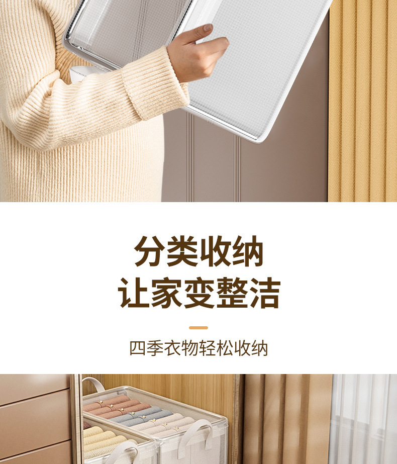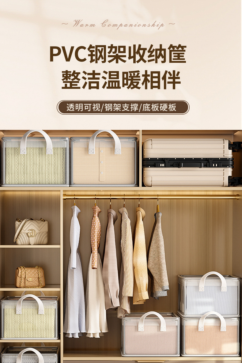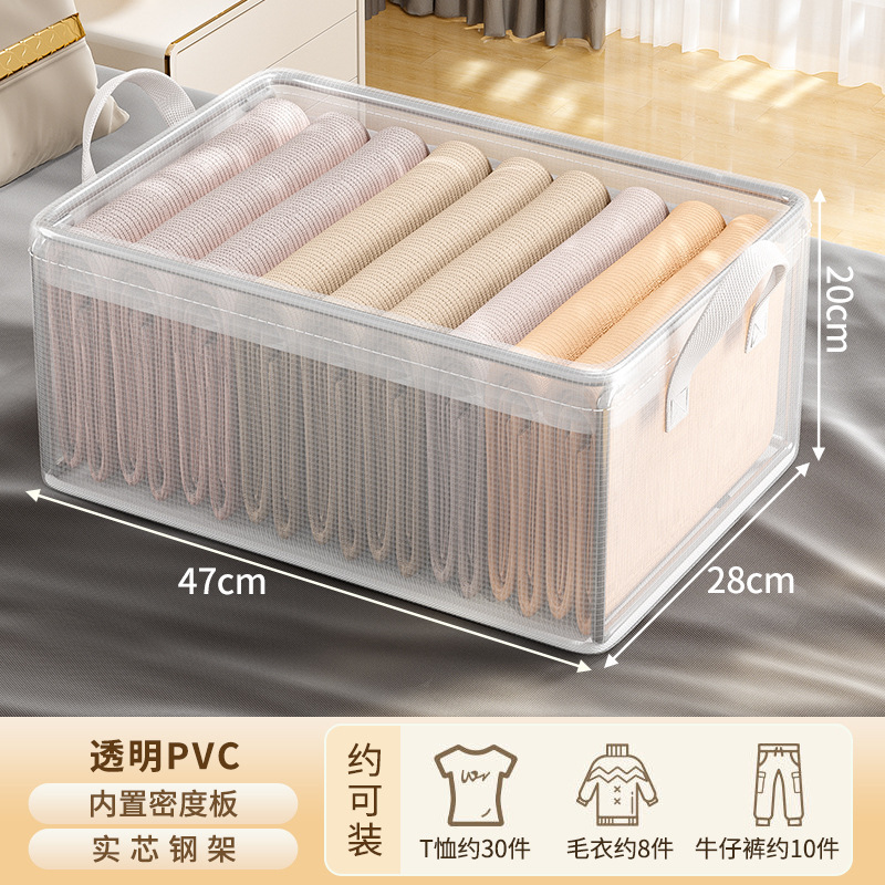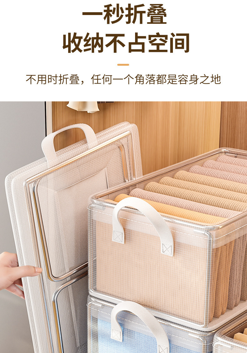 새로운 옷 보관 상자 투명 시각적 접이식 저장 상자 가정용 옷장 강철 프레임 바구니 옷 보관 상자스토어 가기