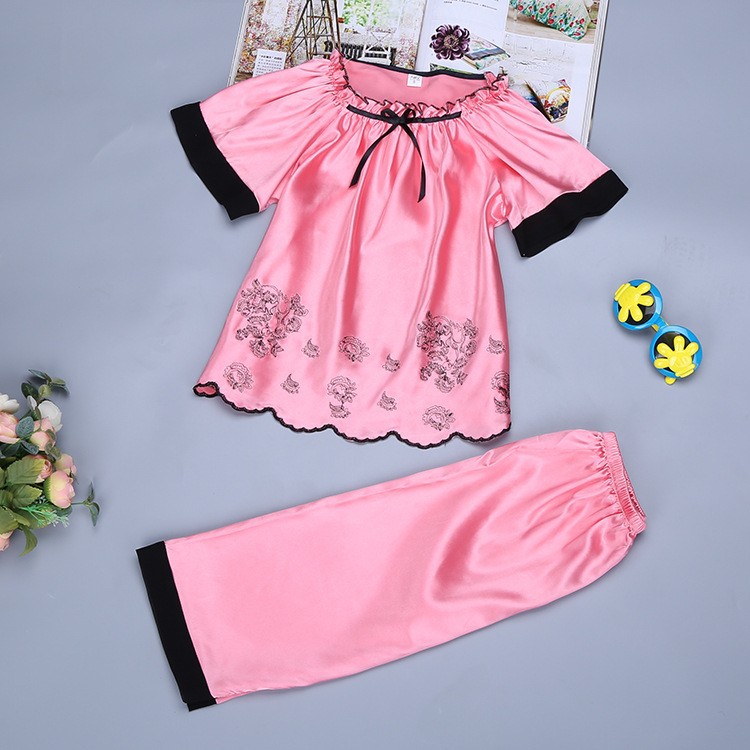 어린이 잠옷 여성 여름 새 한국식 아이스 실크 홈 옷 세트 시원한 반소매 바지 하이 퀄리티 아동복