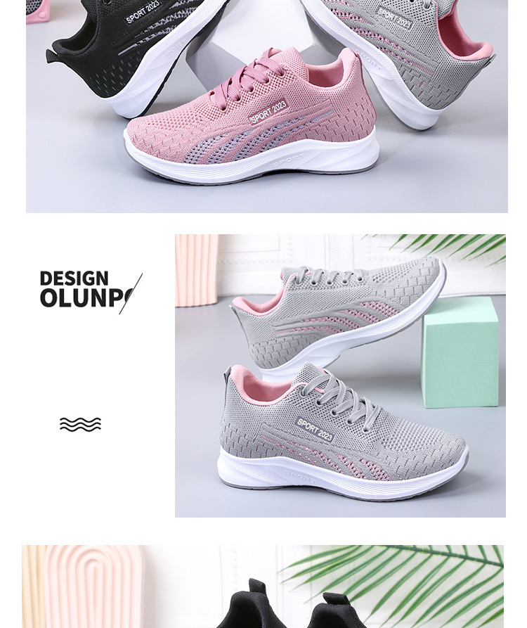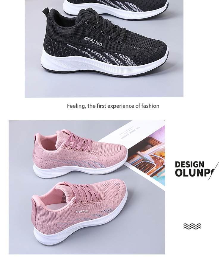 2024 봄과 가을 새로운 평면 바닥 플라이 짠 메쉬 스니커즈 여성 대외 무역 캐주얼 부드러운 바닥 조명 달리기 여성 신발 도매