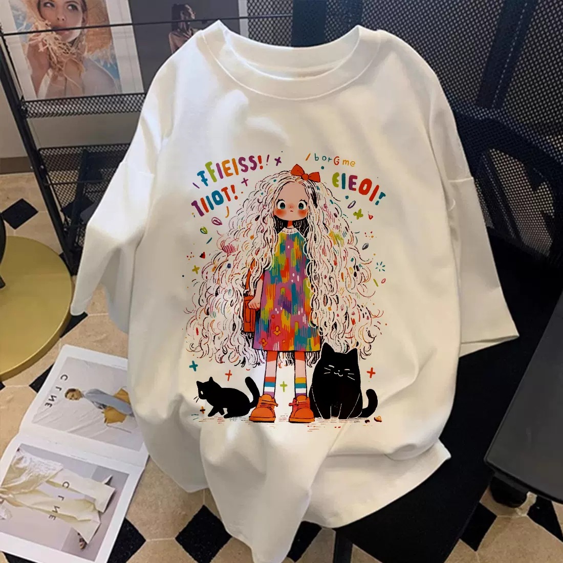 2025 여성을위한 새로운 헤비급 순수 코튼 라운드 넥 반팔 티셔츠 여름 복고풍 하이 엔드 시크하고 아름다운 커플 탑스토어 가기