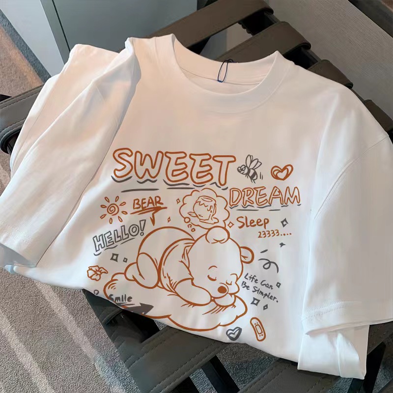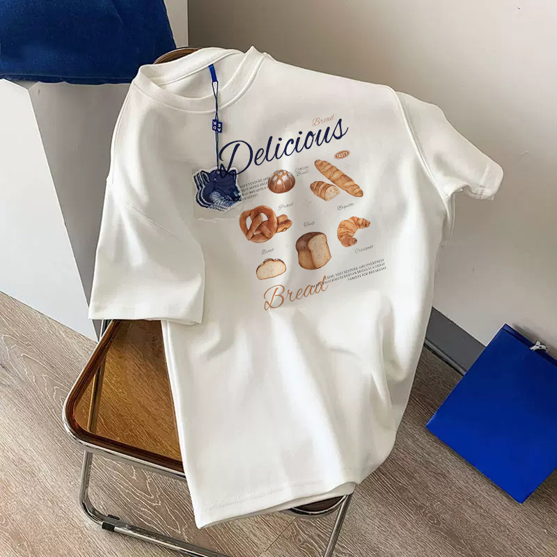 2025 여성을위한 새로운 헤비급 순수 코튼 라운드 넥 반팔 티셔츠 여름 복고풍 하이 엔드 시크하고 아름다운 커플 탑