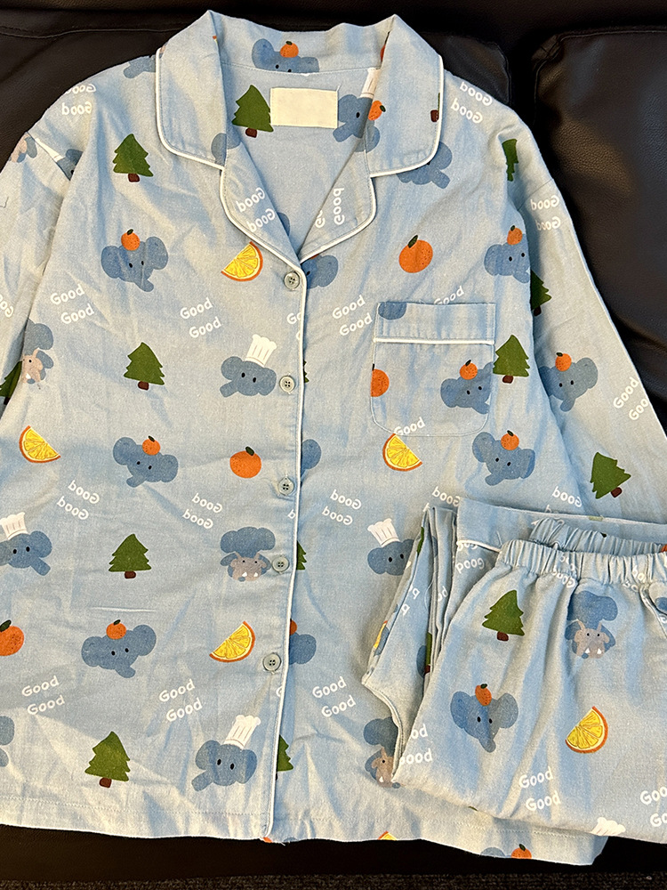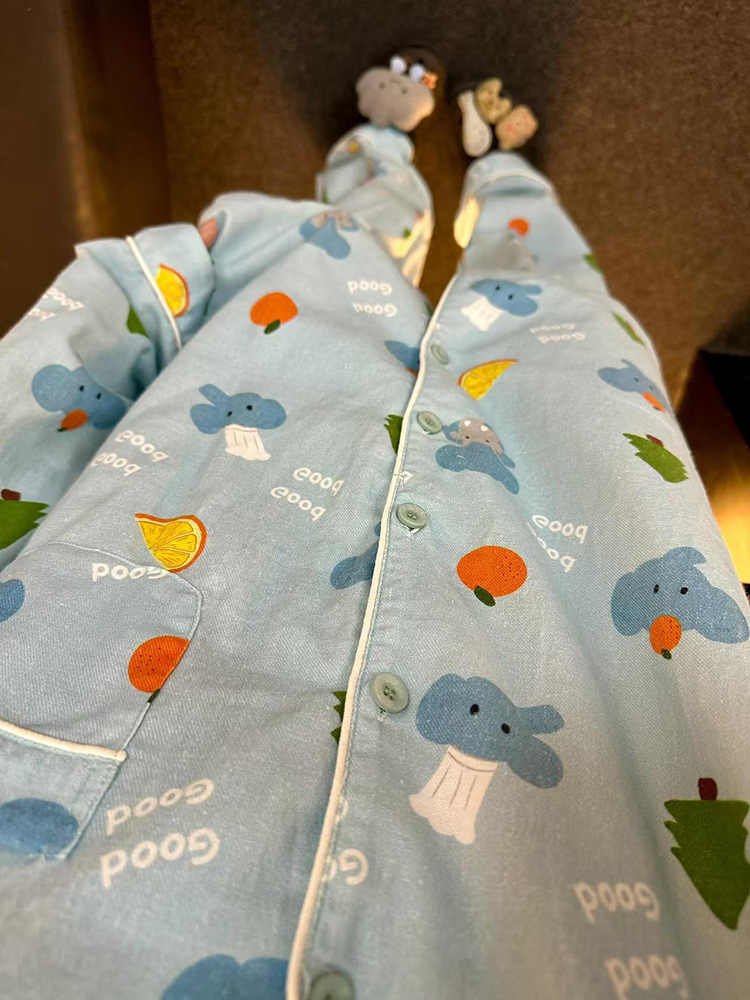 커플 너구리 잠옷 여성 봄과 가을 남자 일본 줄무늬 세트 플러스 사이즈 긴소매 겉옷 홈웨어스토어 가기
