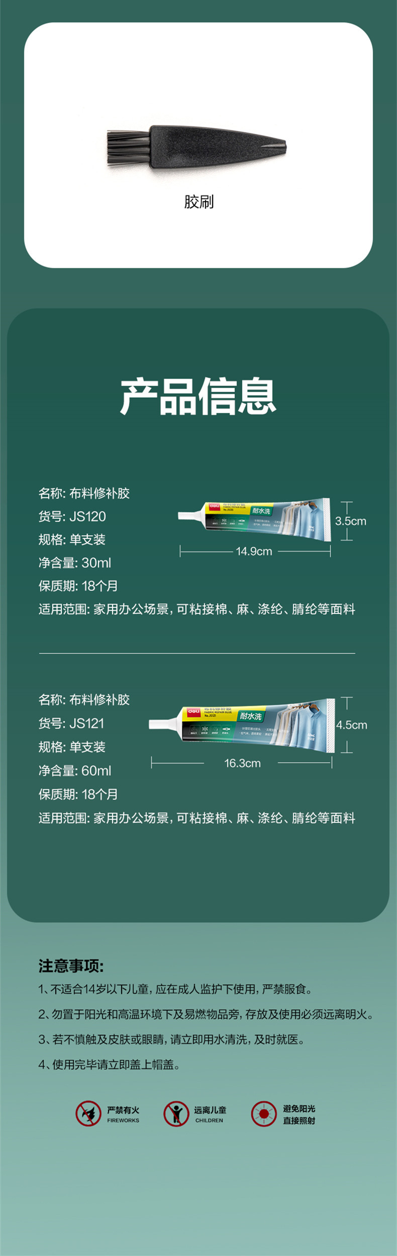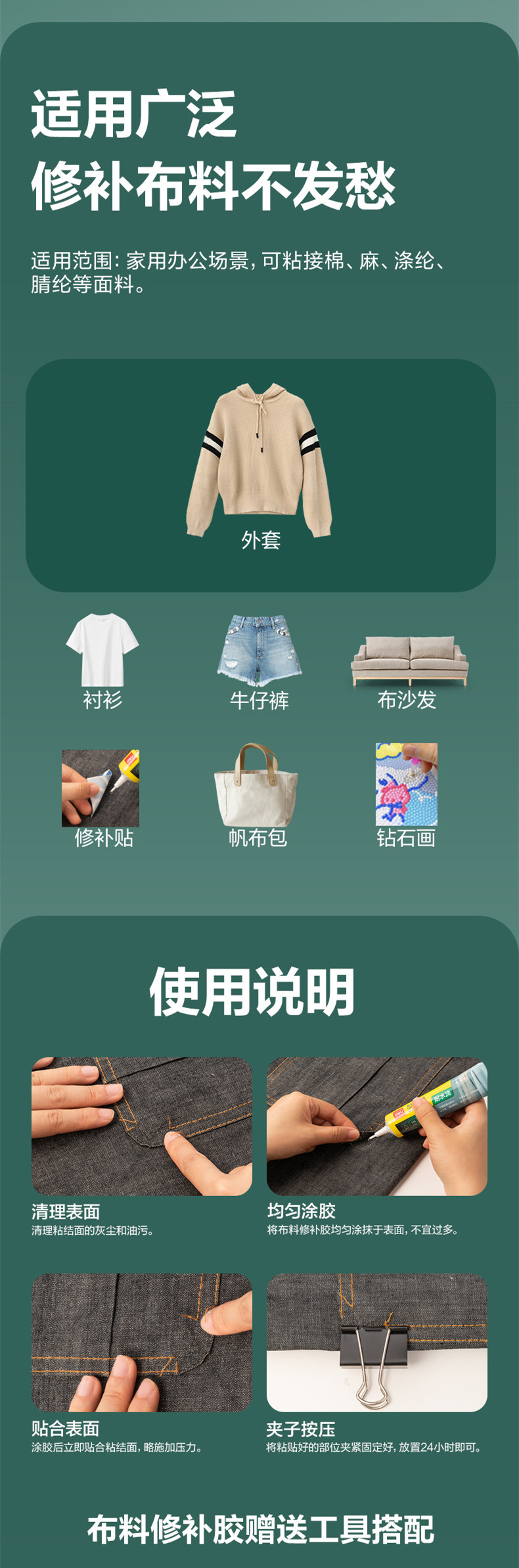 델리 JS120/JS121 직물 수리 접착제 범용 수리 접착 직물 접착제 바지 찢어진 직물 부드러운 접착제스토어 가기