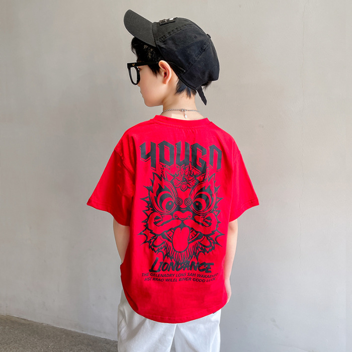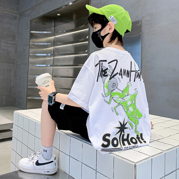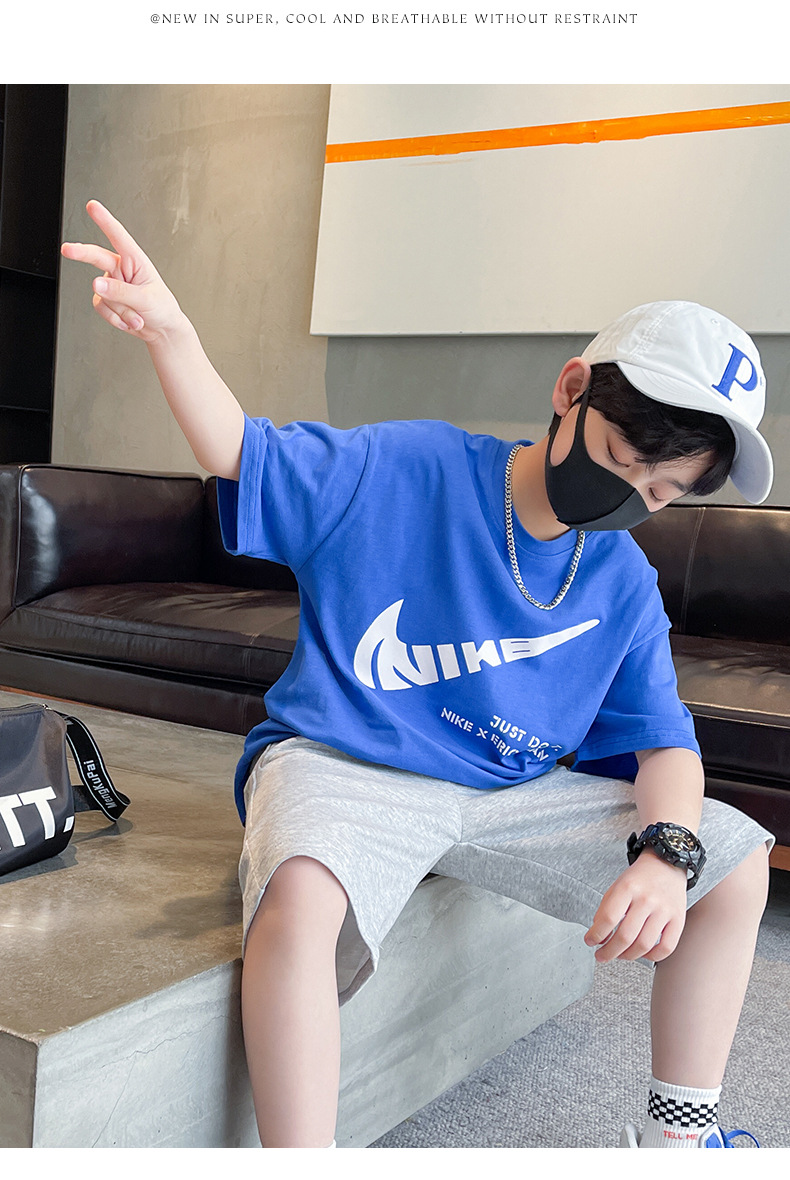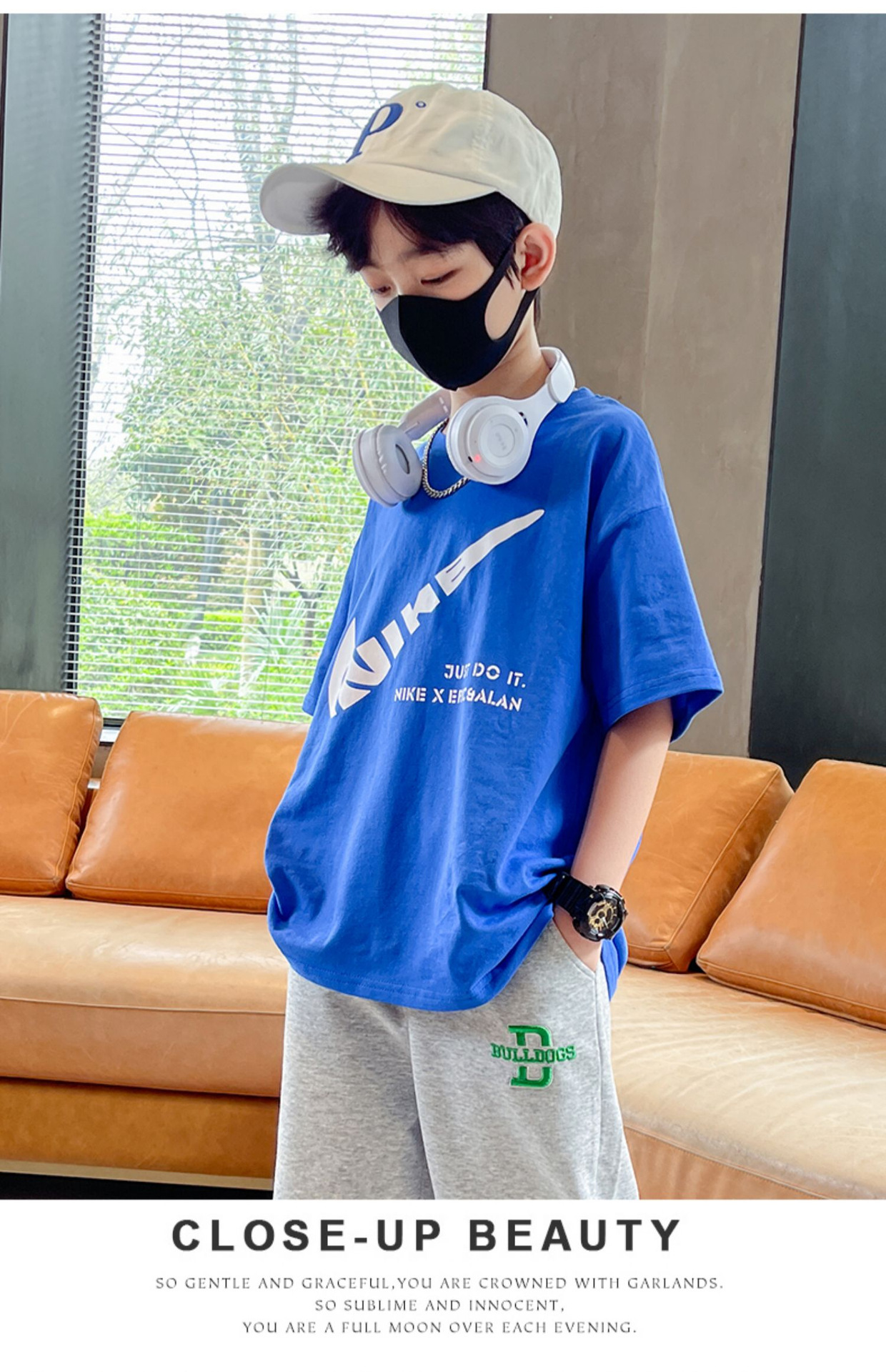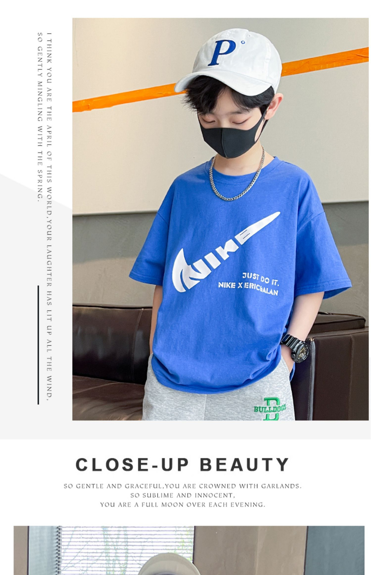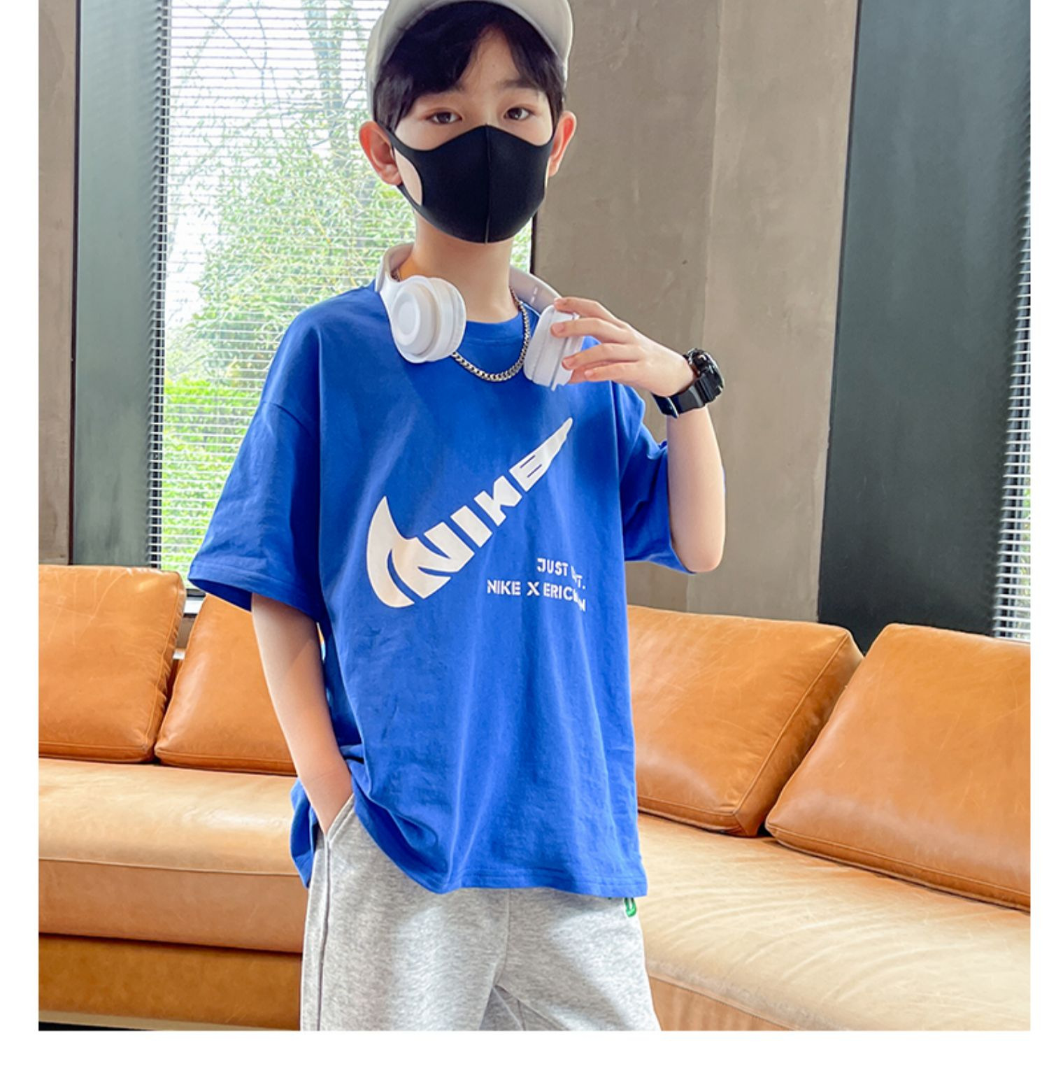 어린이 순면 티셔츠 여름 반팔 라운드 넥 2025 새로운 잘 생긴 중대형 어린이 소년 탑 티셔츠 아동 의류 트렌드스토어 가기