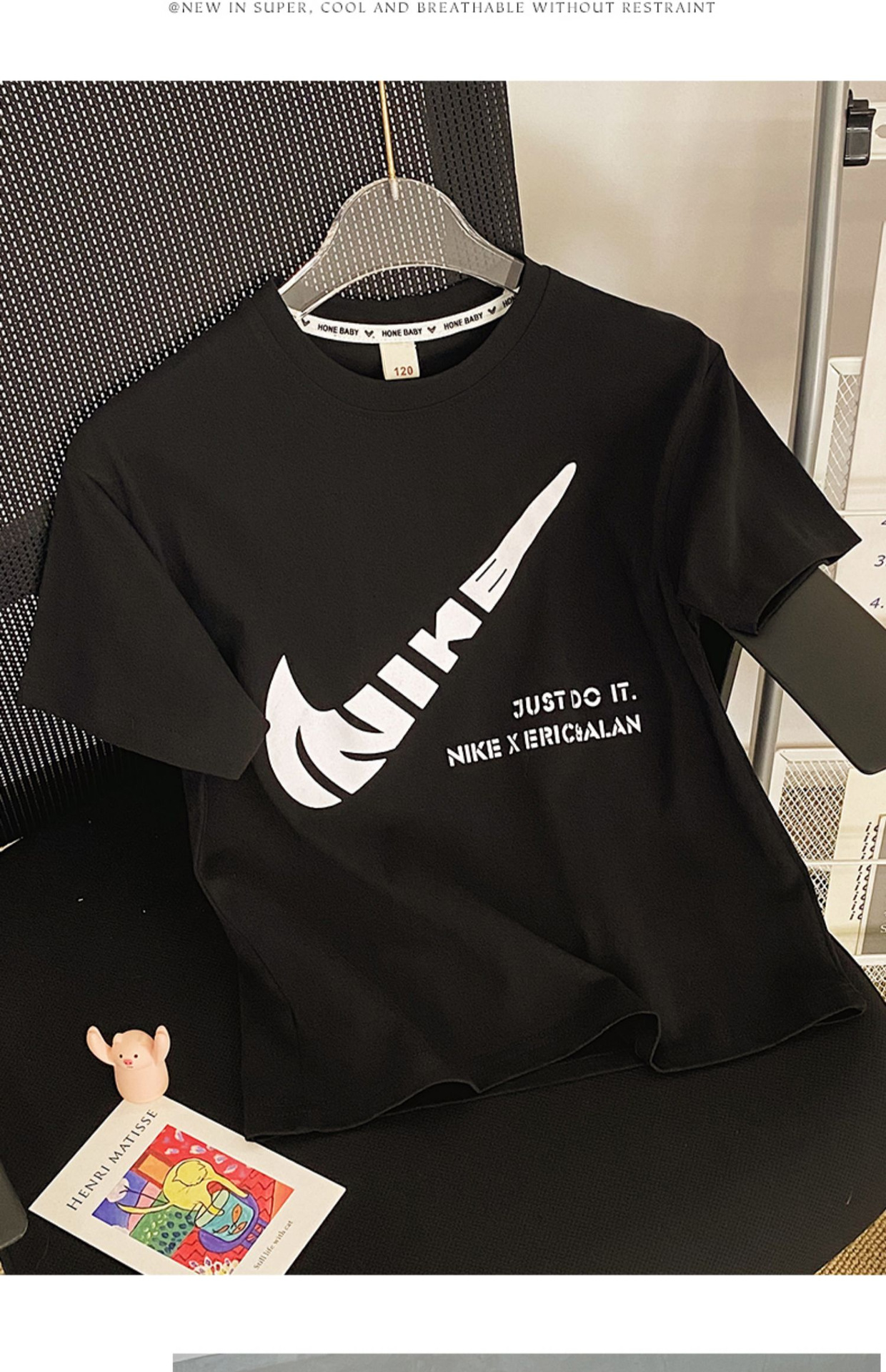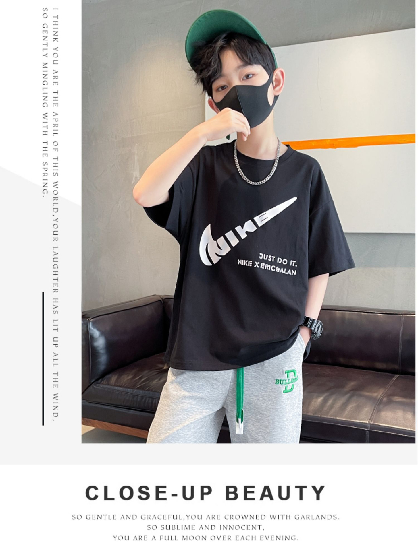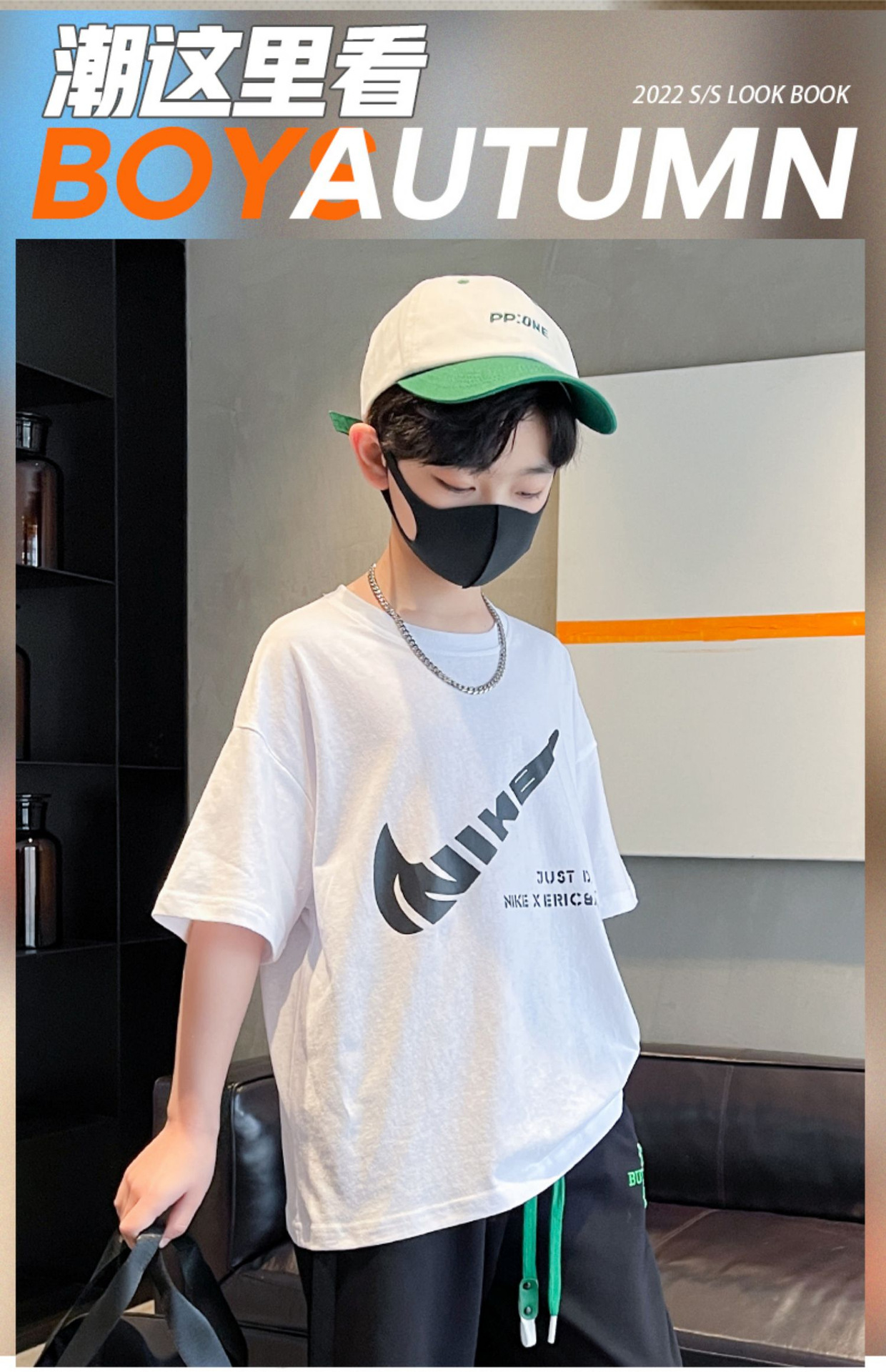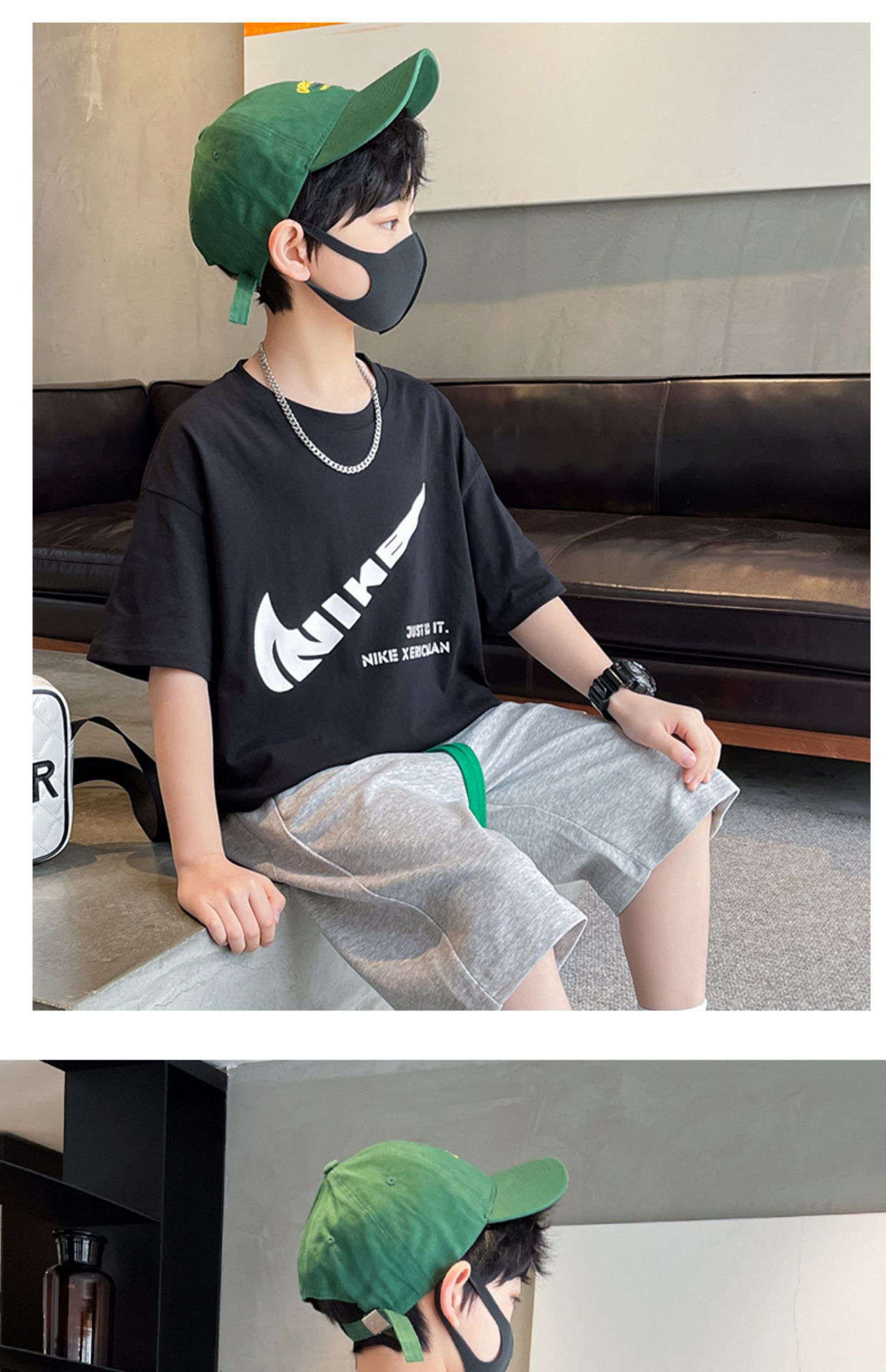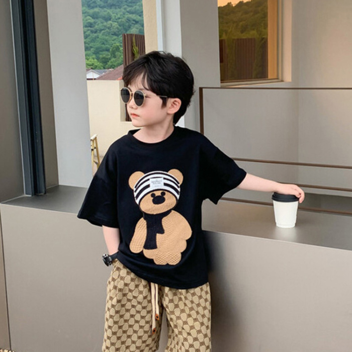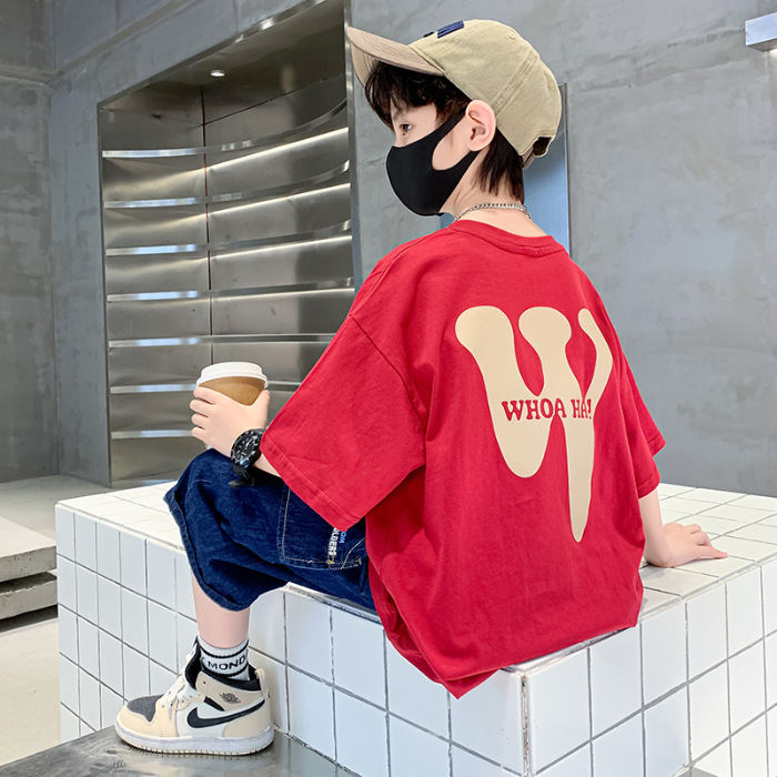 어린이 순면 티셔츠 여름 반팔 라운드 넥 2025 새로운 잘 생긴 중대형 어린이 소년 탑 티셔츠 아동 의류 트렌드스토어 가기