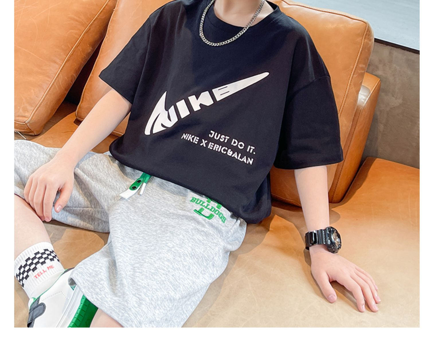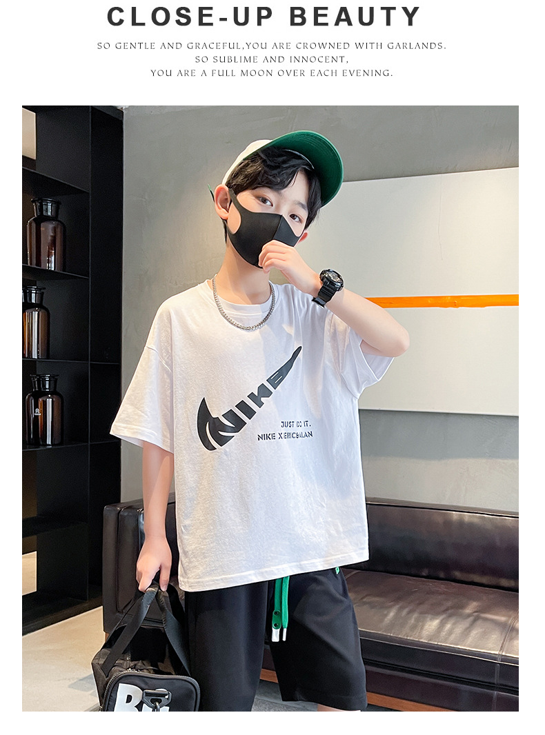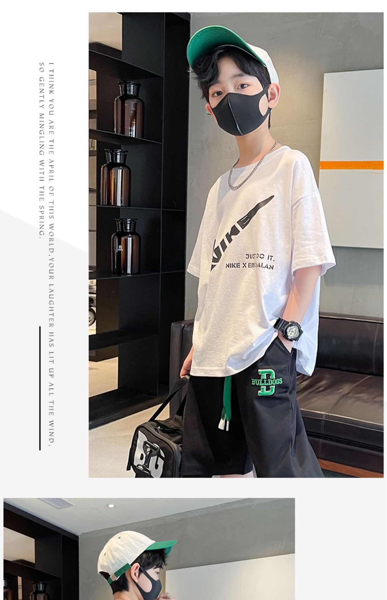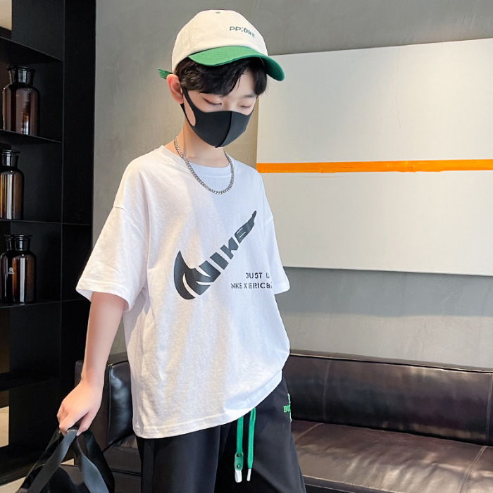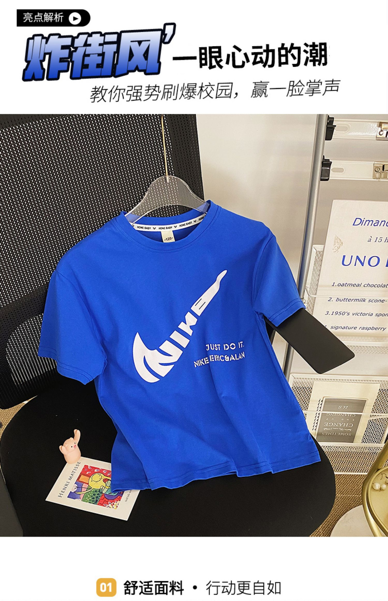 어린이 순면 티셔츠 여름 반팔 라운드 넥 2025 새로운 잘 생긴 중대형 어린이 소년 탑 티셔츠 아동 의류 트렌드스토어 가기