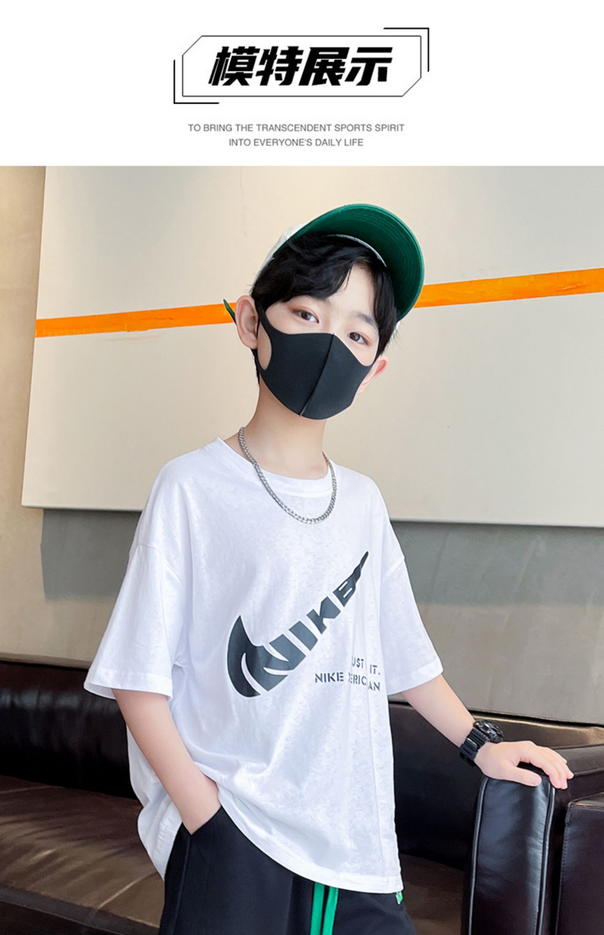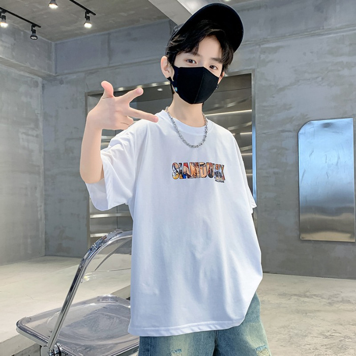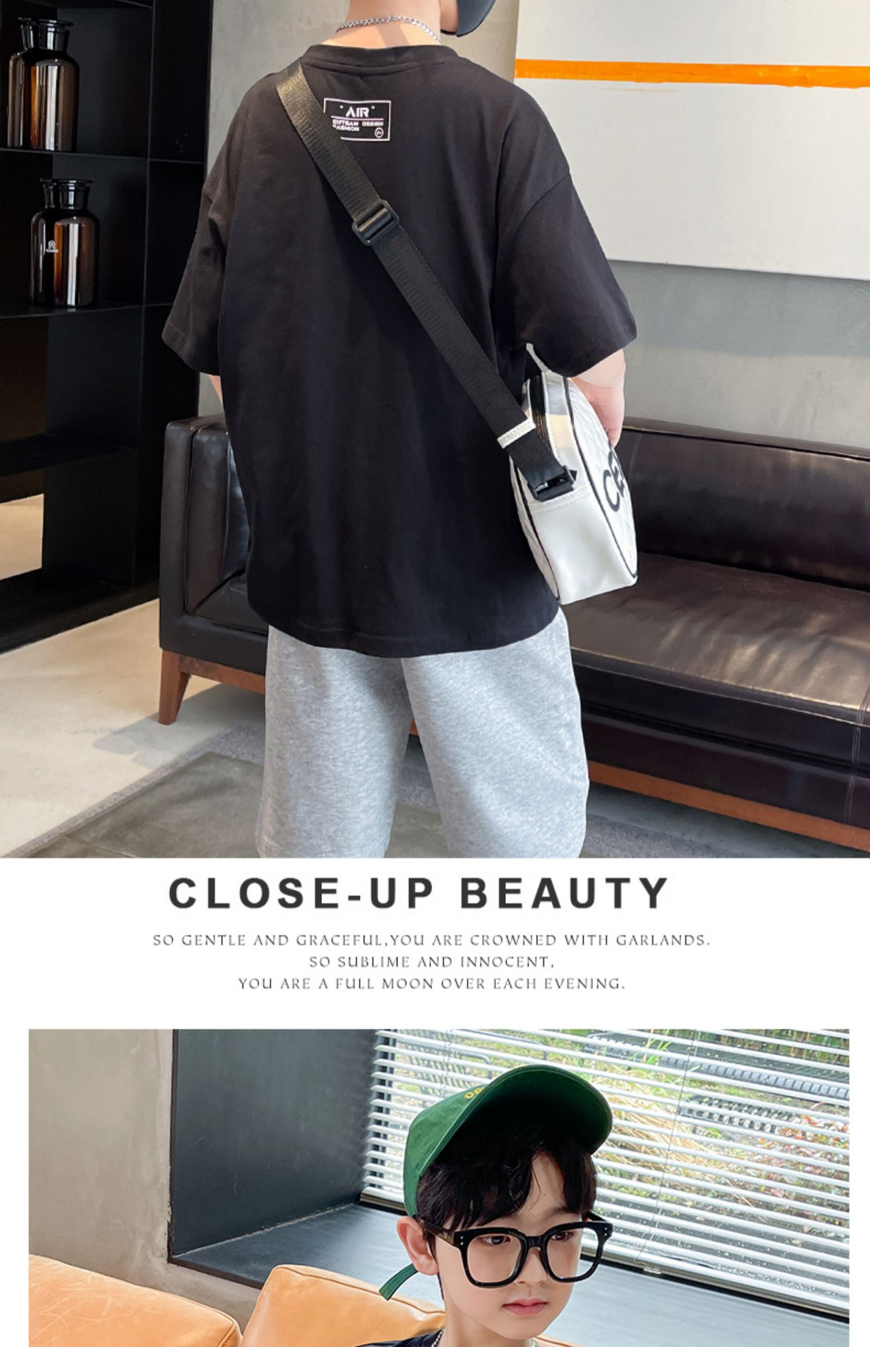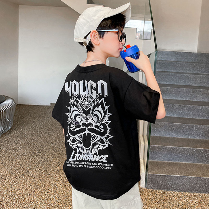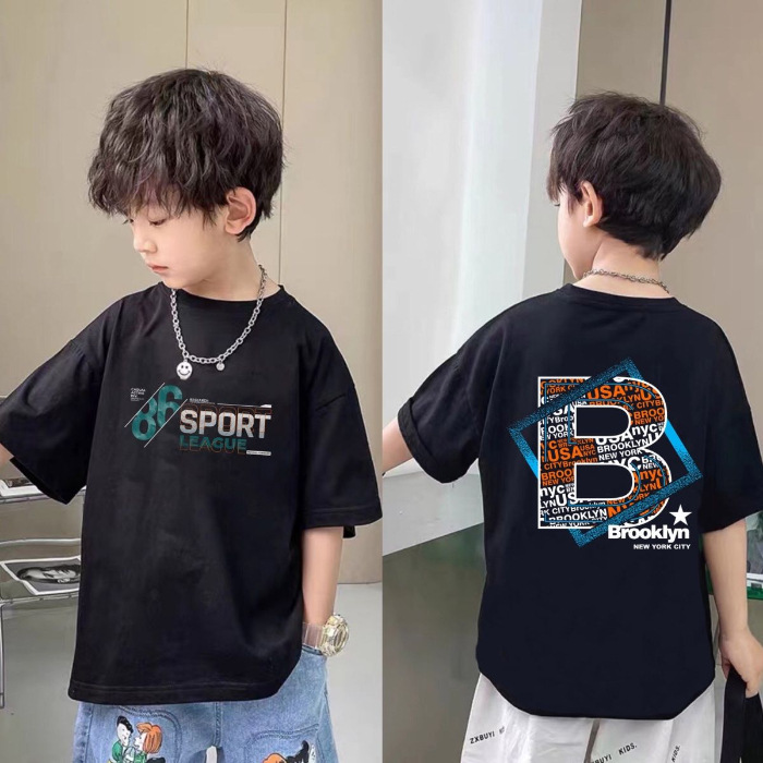 어린이 순면 티셔츠 여름 반팔 라운드 넥 2025 새로운 잘 생긴 중대형 어린이 소년 탑 티셔츠 아동 의류 트렌드