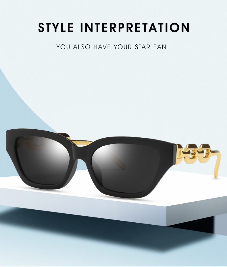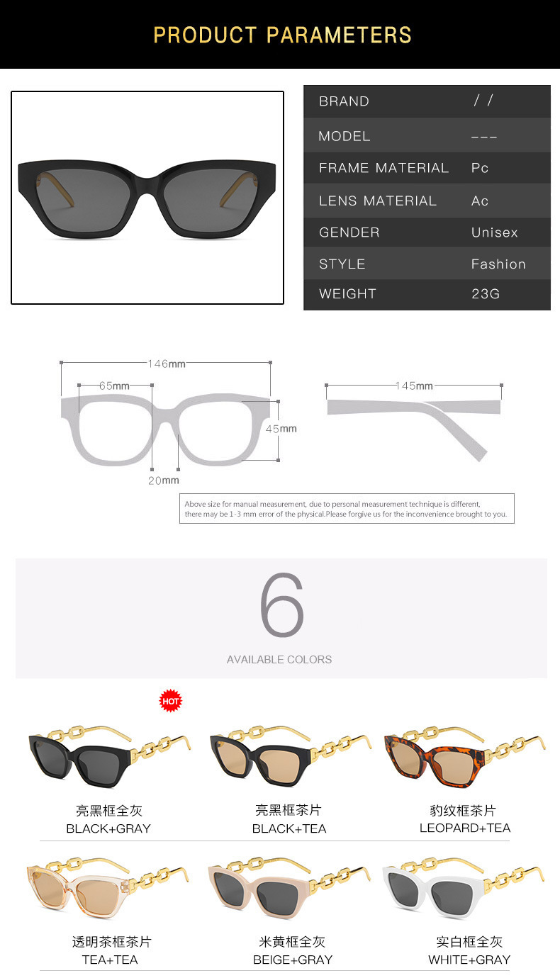레트로 고양이 눈 성격 두꺼운 체인 다리 선글라스 남성용 고급 얼굴 모양의 작은 선글라스 유럽과 미국의 뜨거운 소녀 태양 방지 안경 여성