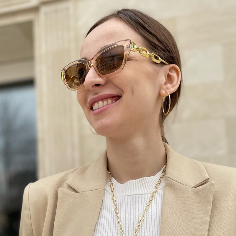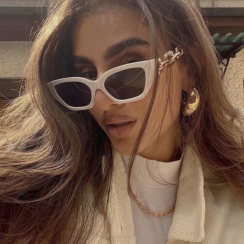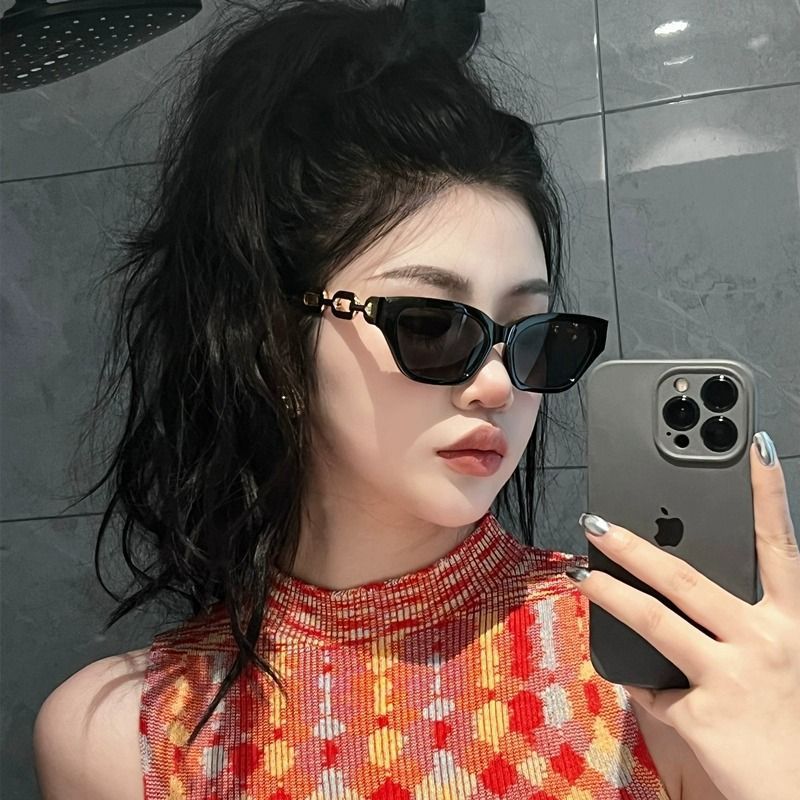 레트로 고양이 눈 성격 두꺼운 체인 다리 선글라스 남성용 고급 얼굴 모양의 작은 선글라스 유럽과 미국의 뜨거운 소녀 태양 방지 안경 여성스토어 가기