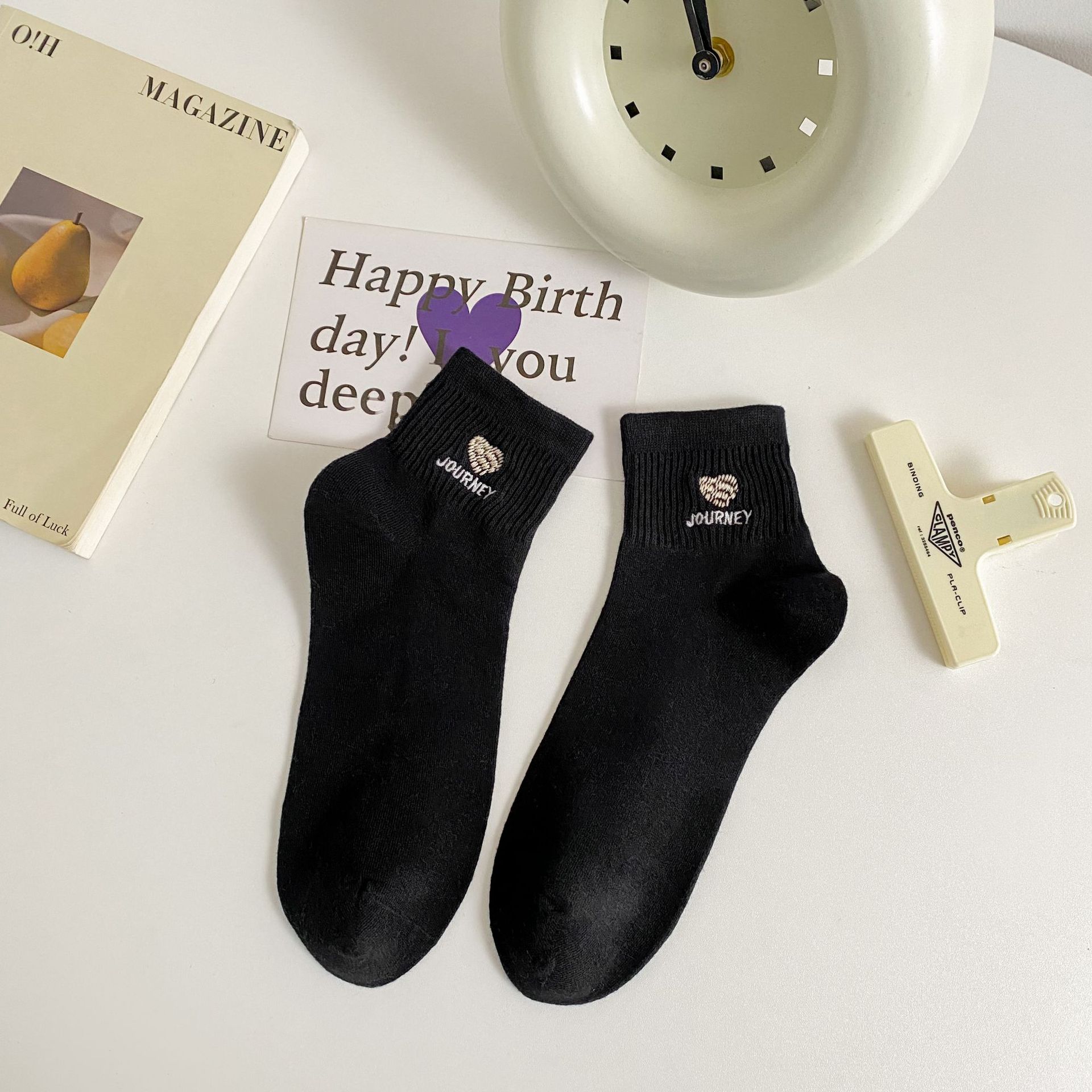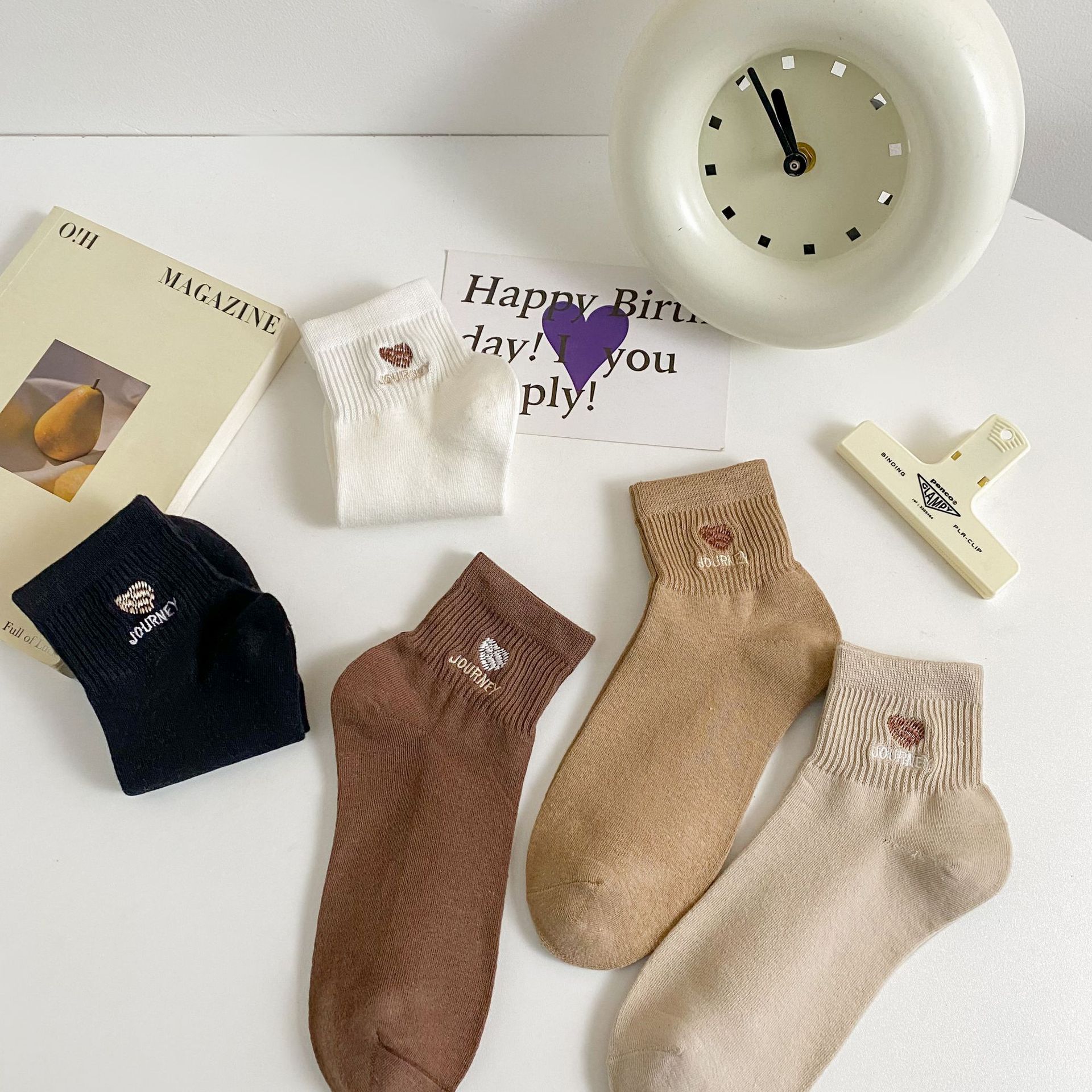 여성 양말 봄/여름 Maillard 짧은 여성 양말 트렌디 한 사랑 자수 여성 발목 양말 여름 다크 브라운 양말 도매
