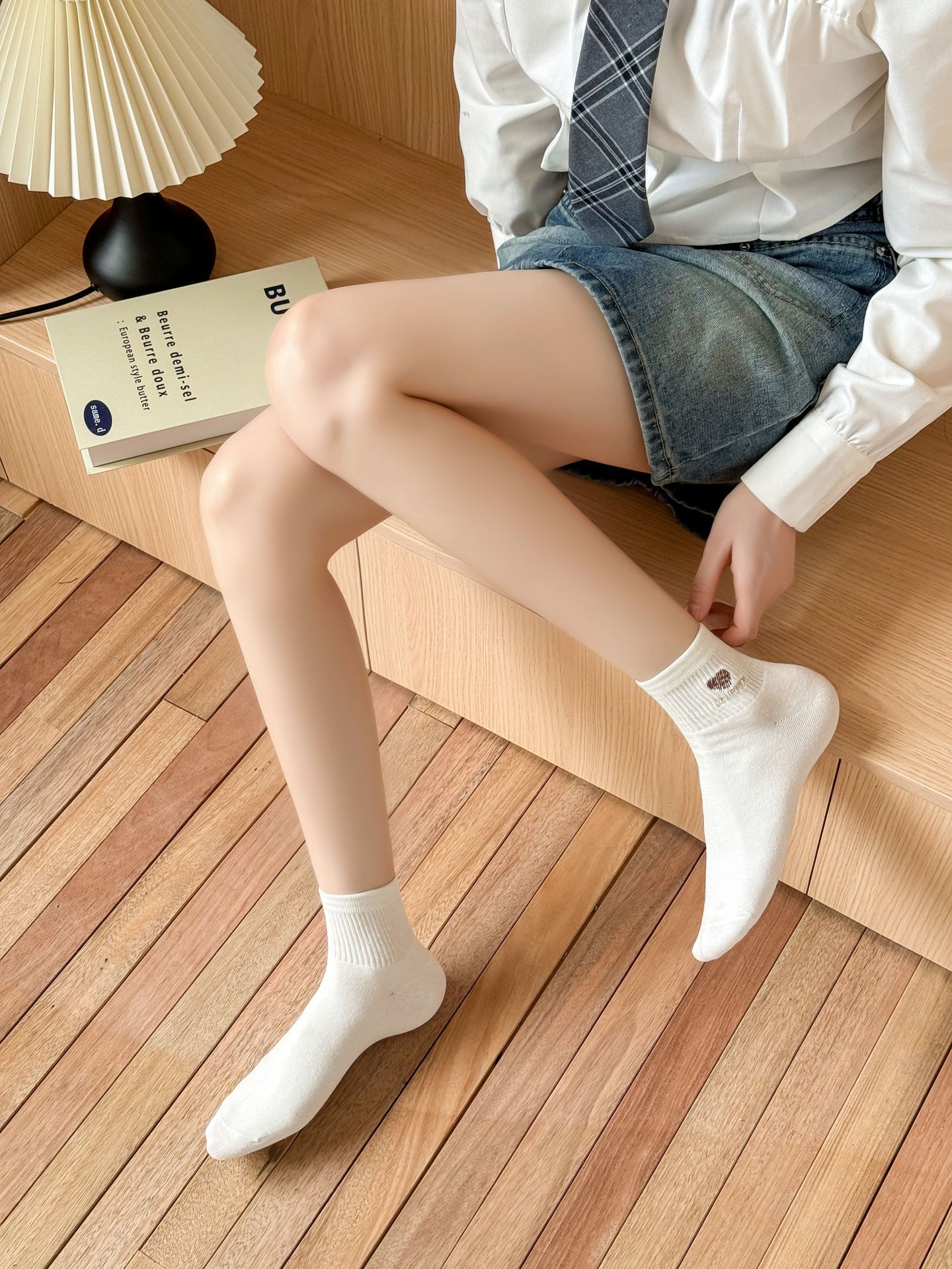 名称:Y奶咖色刺绣爱心女船袜