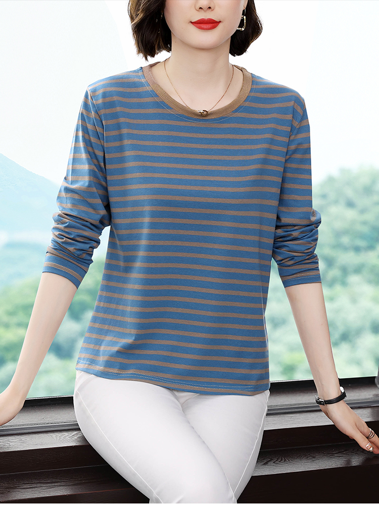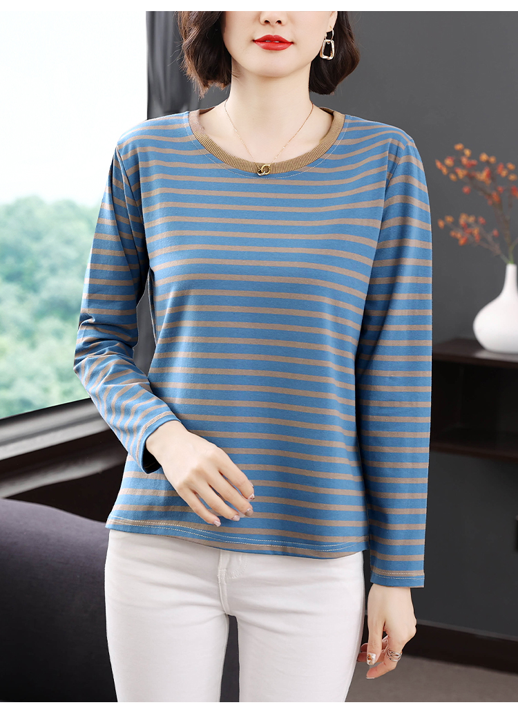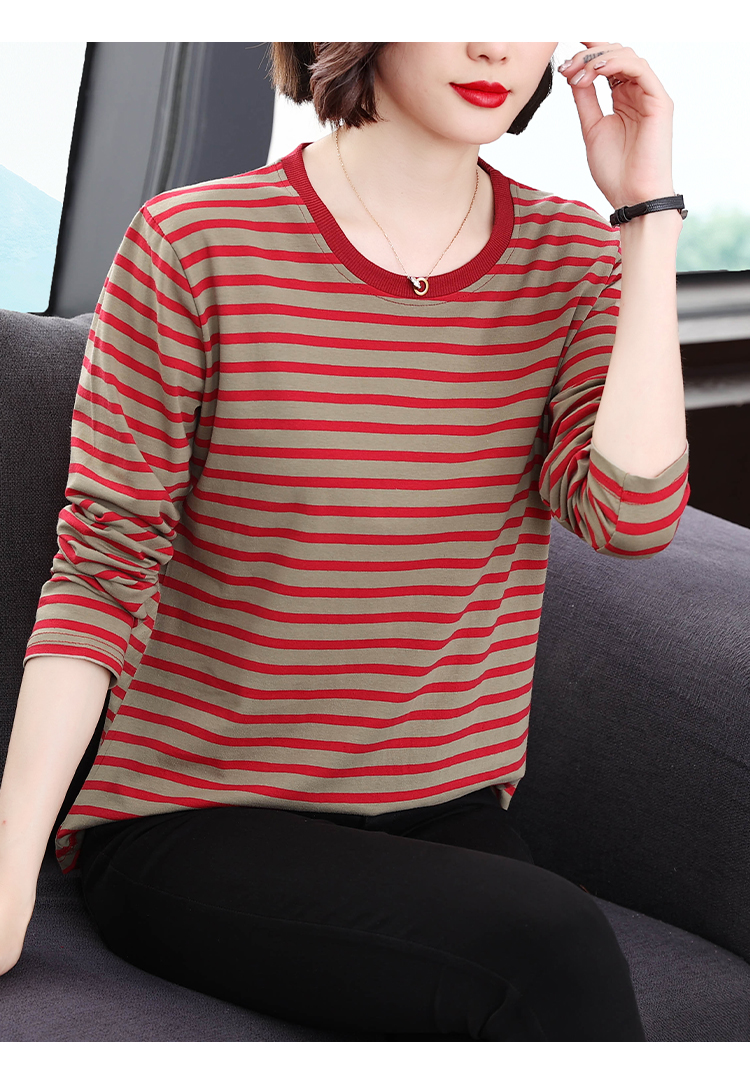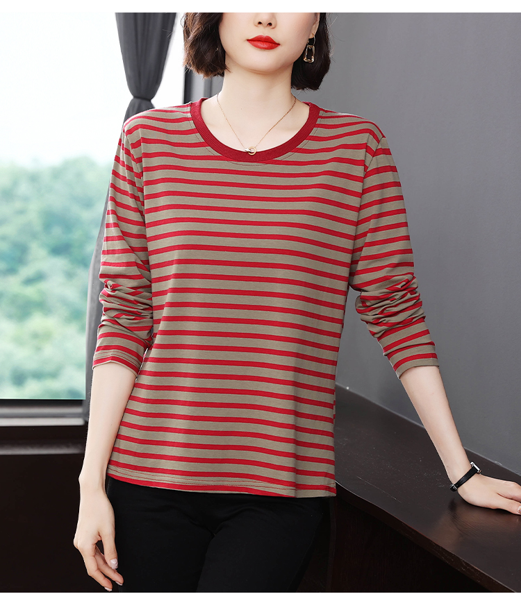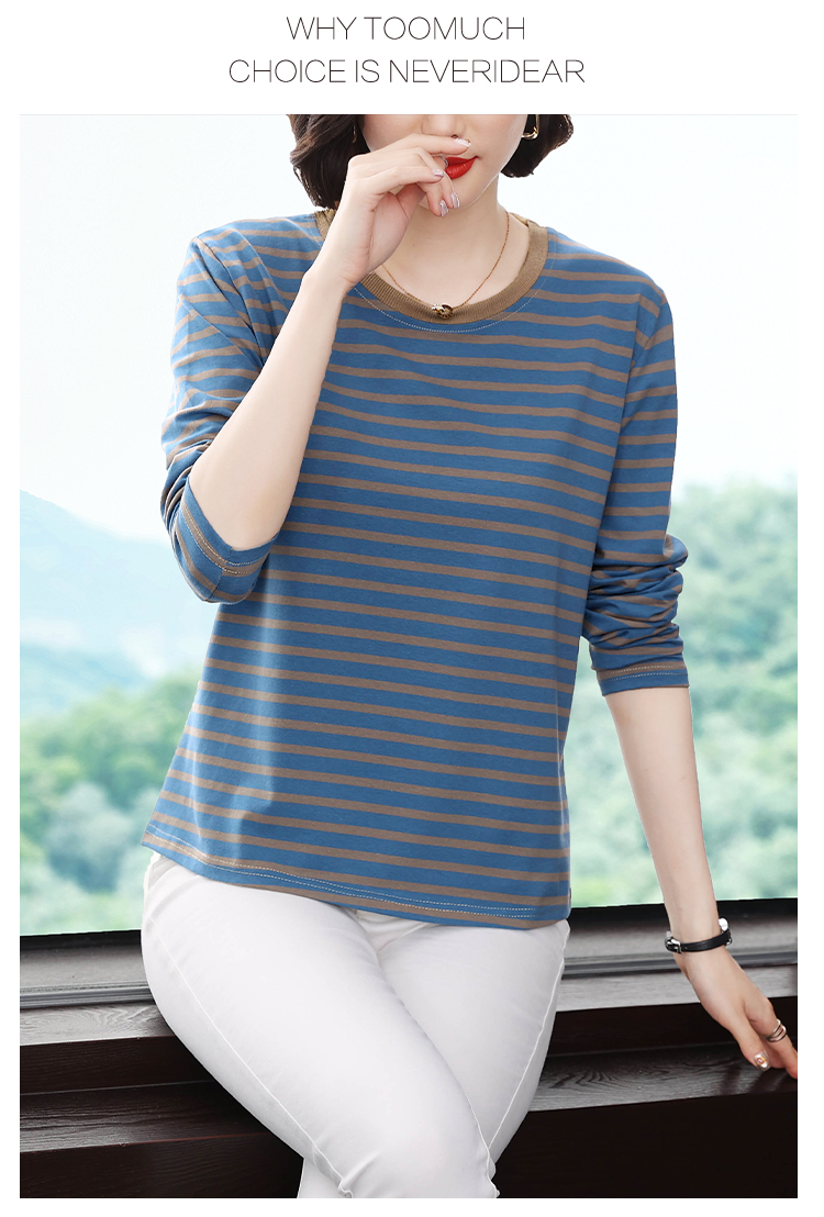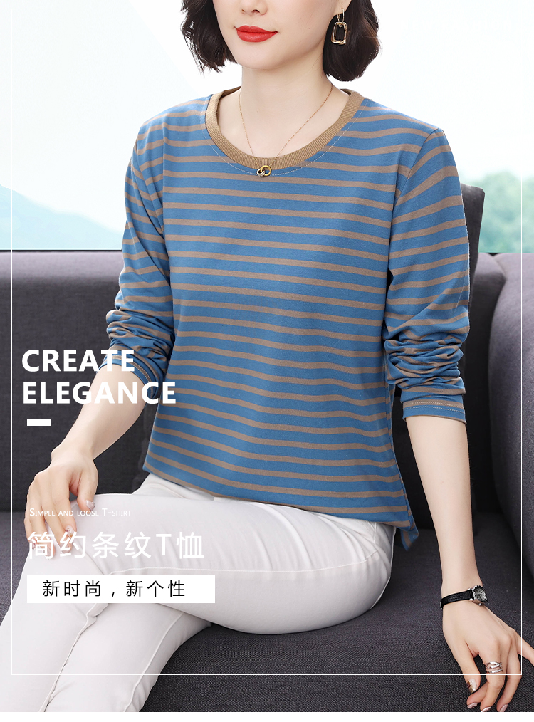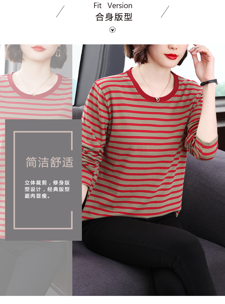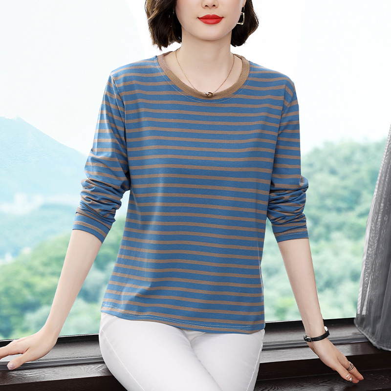 중년 및 노인 어머니를위한 코튼 둥근 목 긴팔 티셔츠 플러스 사이즈 느슨한 2024 봄과 가을 새로운 바닥 셔츠 탑스토어 가기