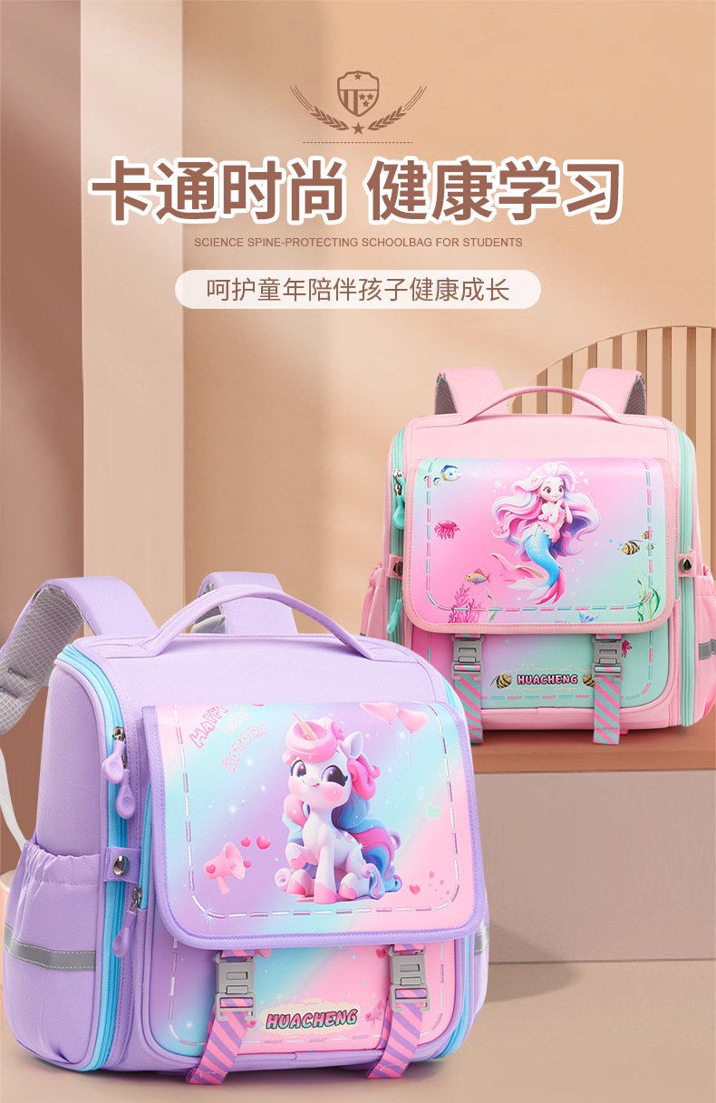 2025 새로운 가로 버전 초등학교 가방 유행 패션 만화 어린이 가방 1, 2, 3 학년 부담 감소 배낭스토어 가기