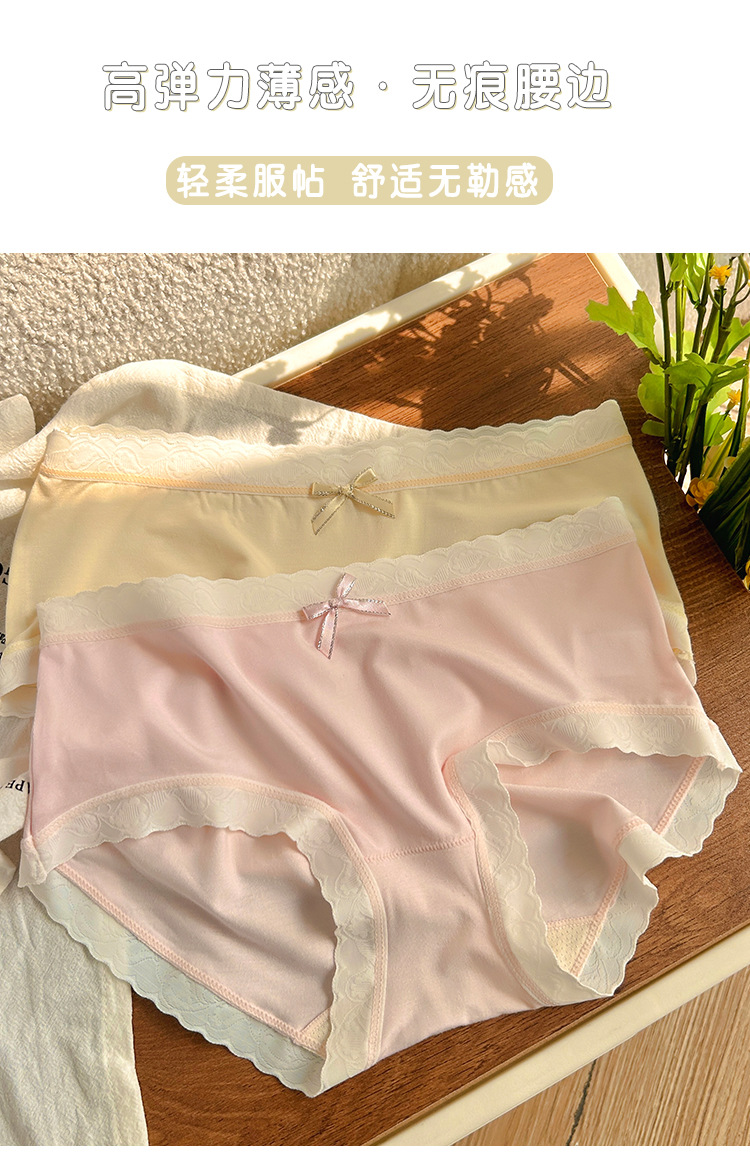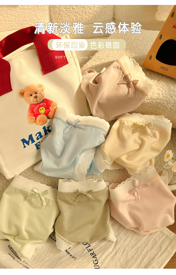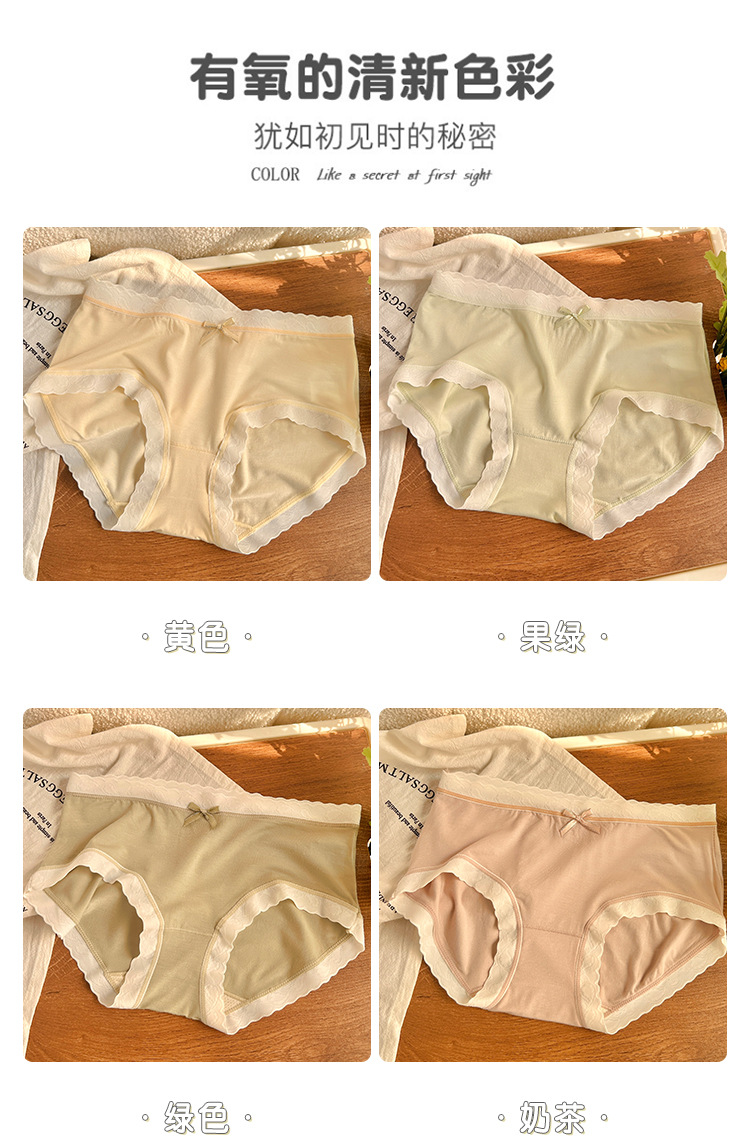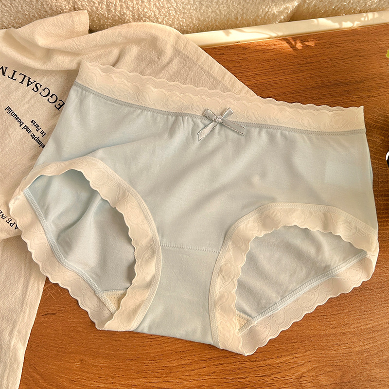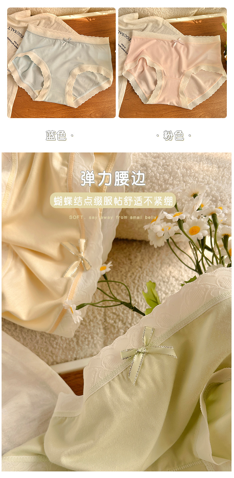 경량 통기성 일본식 부드러운 찹쌀 대비 색상 섬세한 부드러운 상쾌한 편안한 간단한 레이스 가장자리 중간 허리 소녀 브리핑
