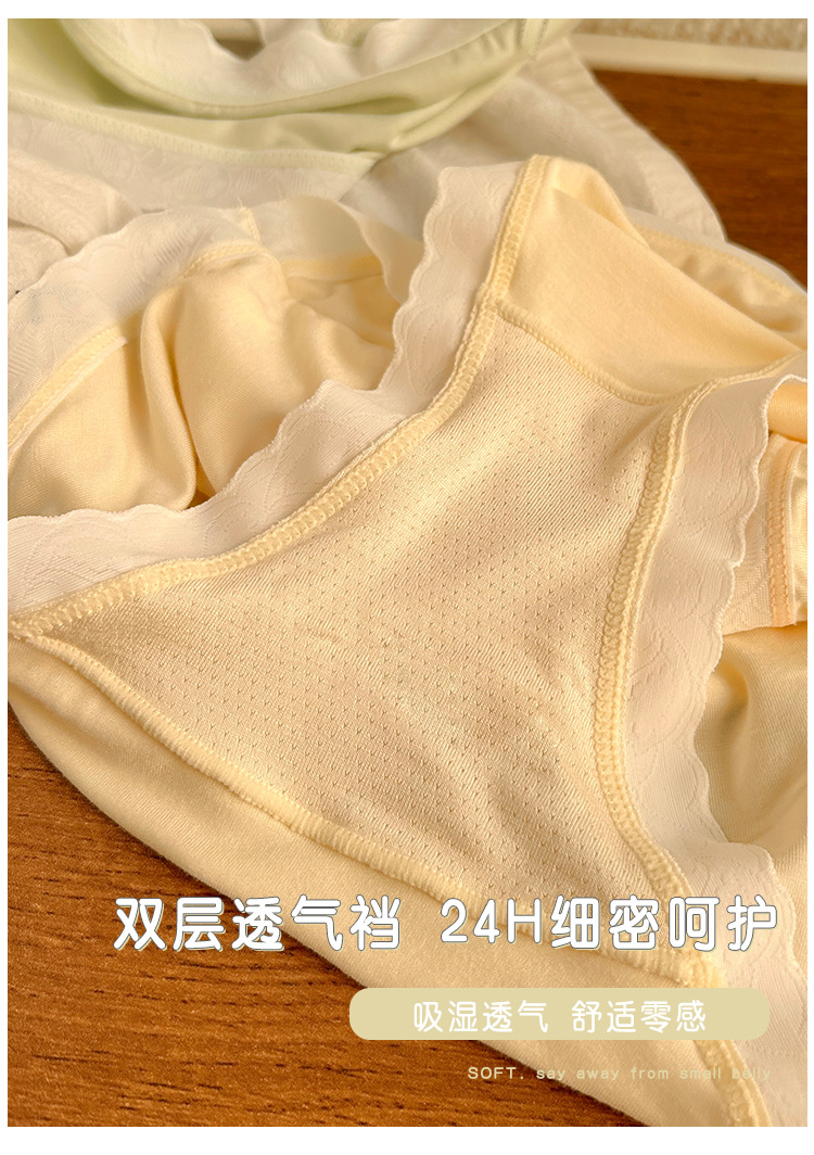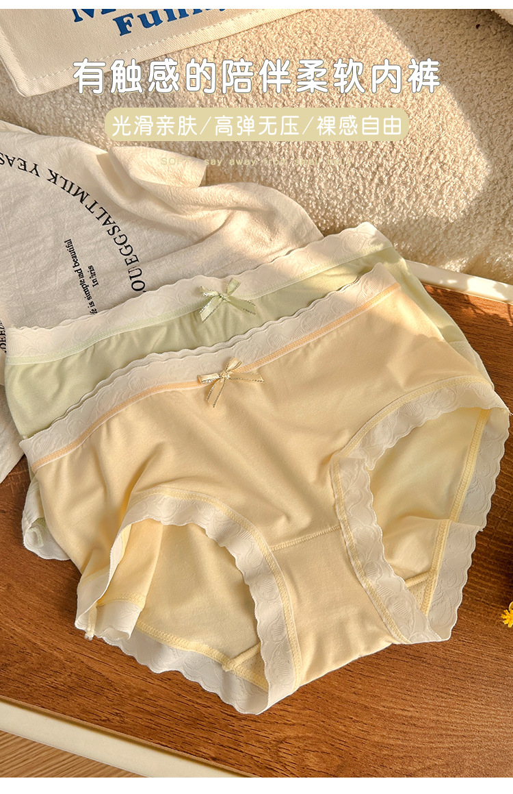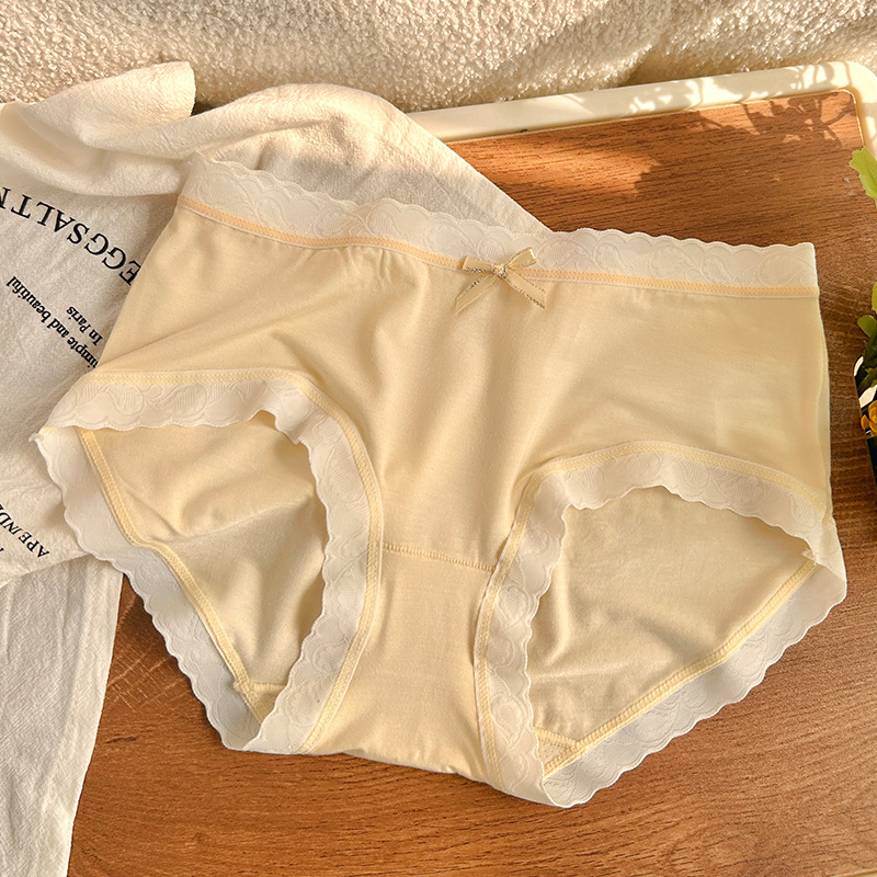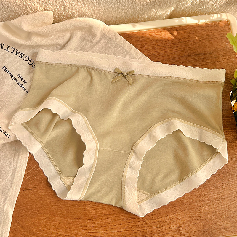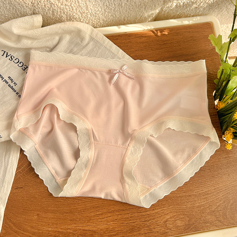 경량 통기성 일본식 부드러운 찹쌀 대비 색상 섬세한 부드러운 상쾌한 편안한 간단한 레이스 가장자리 중간 허리 소녀 브리핑