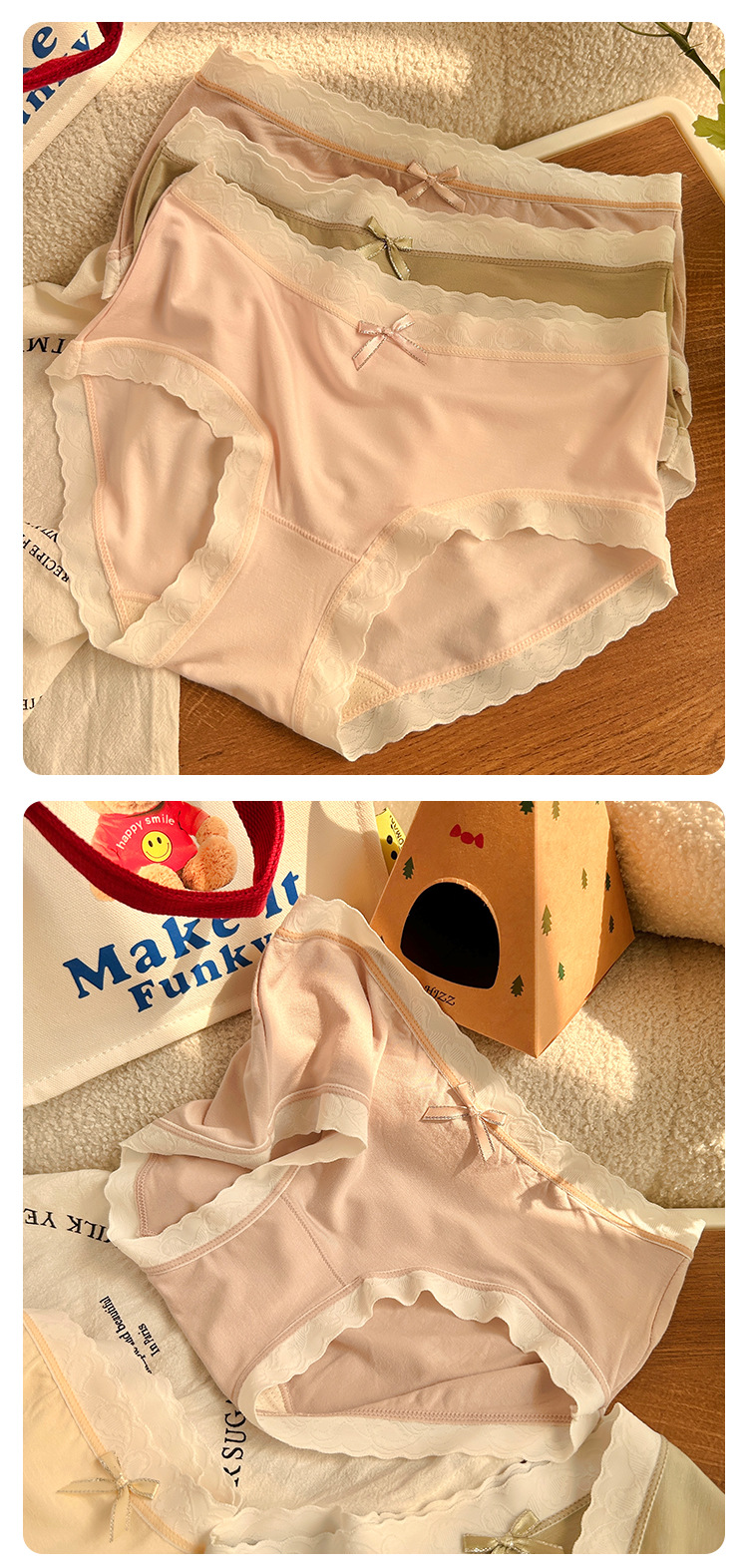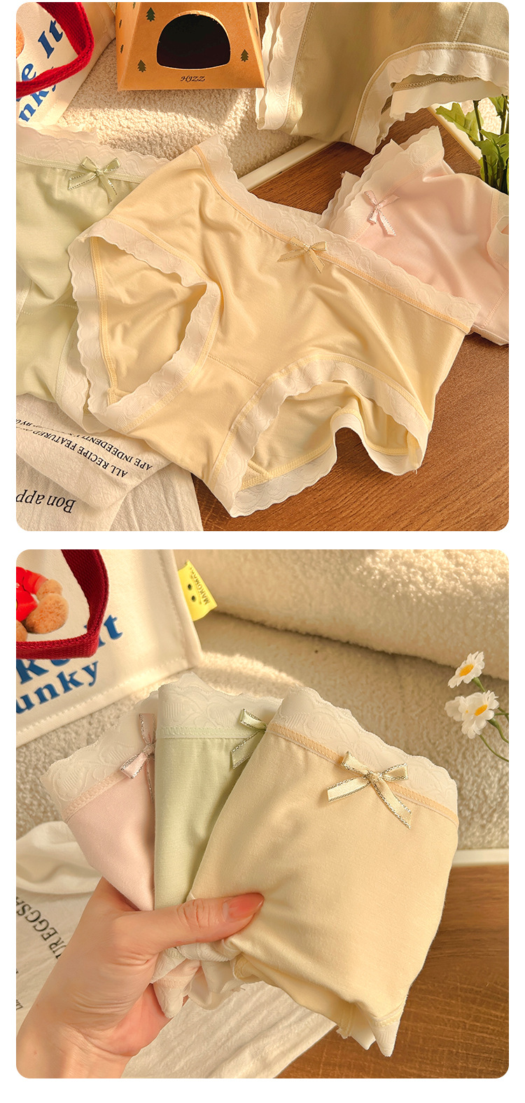 경량 통기성 일본식 부드러운 찹쌀 대비 색상 섬세한 부드러운 상쾌한 편안한 간단한 레이스 가장자리 중간 허리 소녀 브리핑스토어 가기