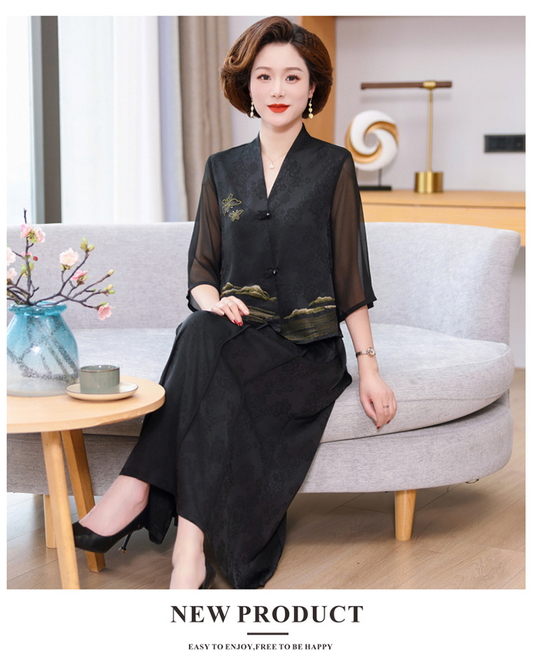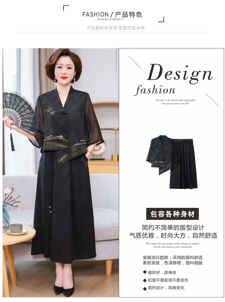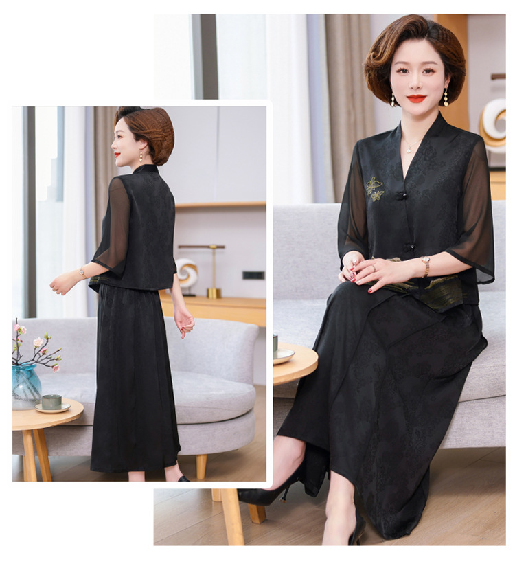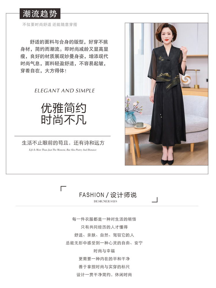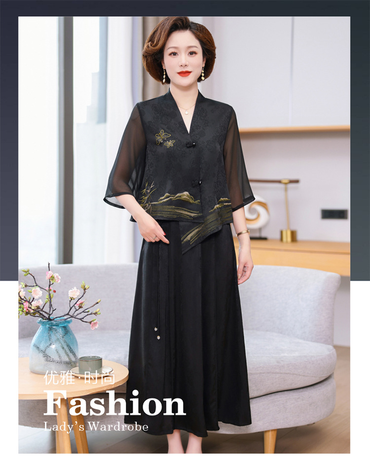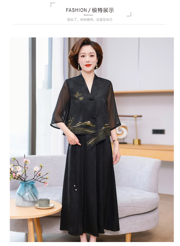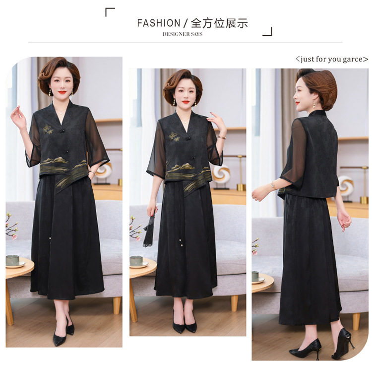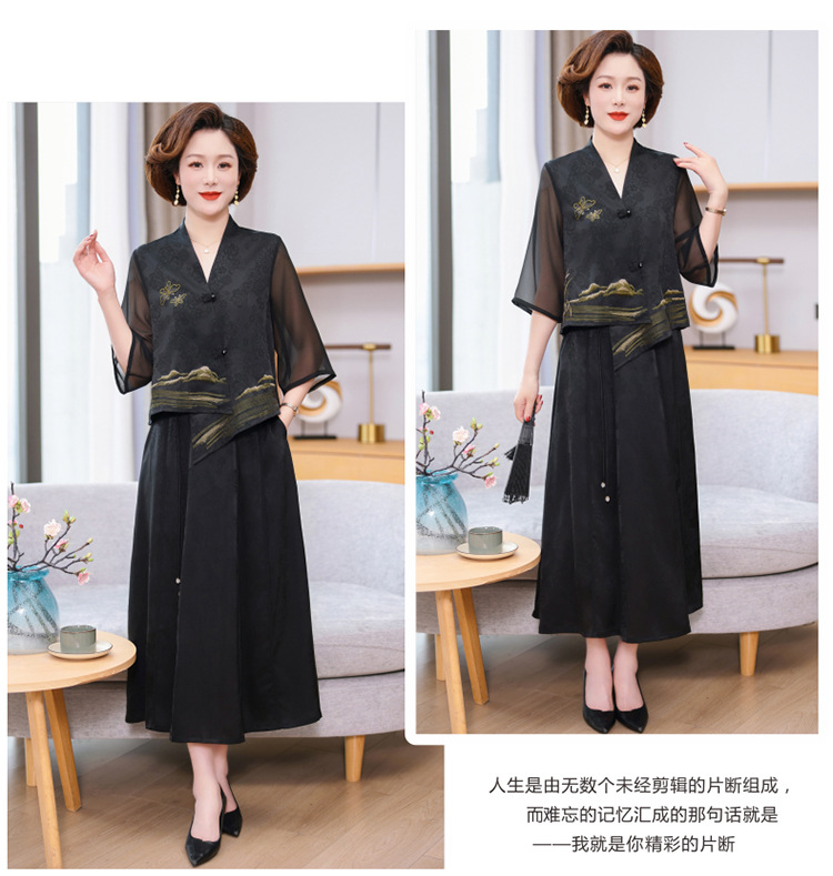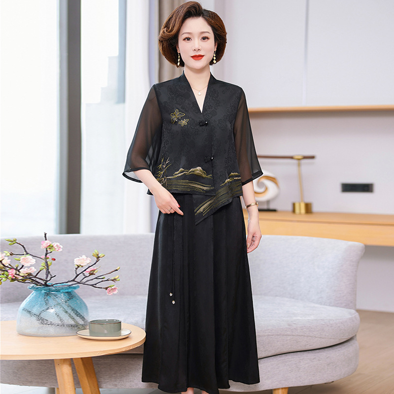 새로운 중국 엄마 세트 봄 원피스 우아한 레이디 샹윤 원사 스커트 중년 및 노인 여성 의류 봄과 여름 새로운
