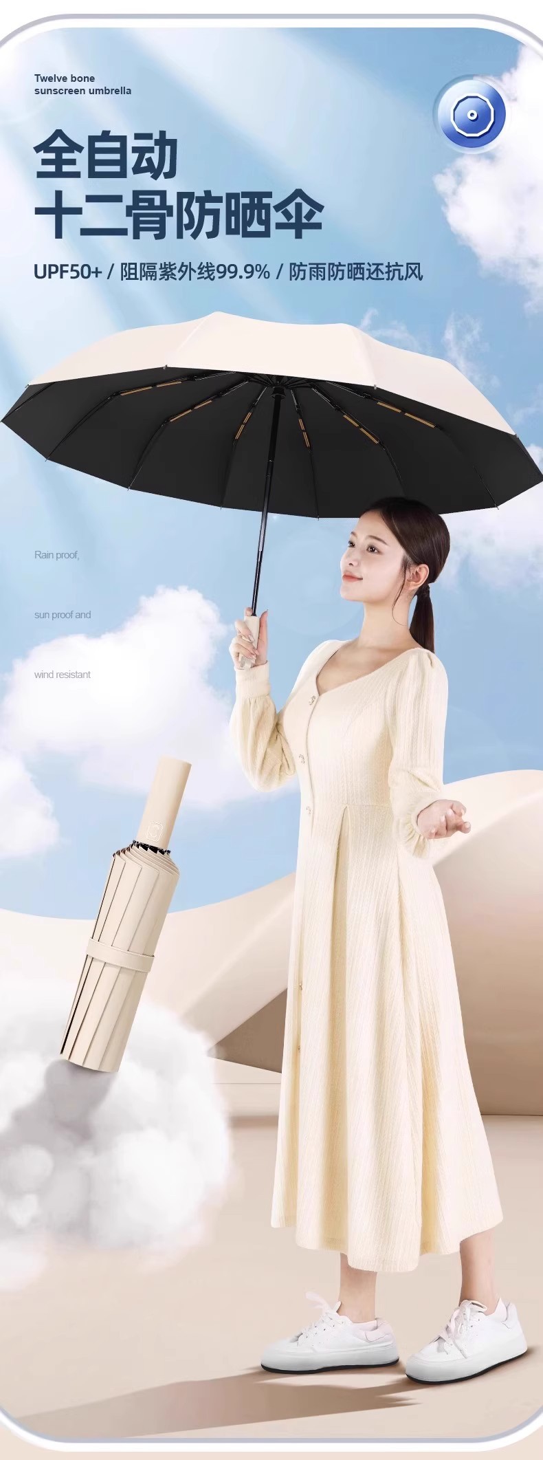• 전자동 - 우통쌀 [폭동 방지 기능을 강화한 24개의 유리섬유 우산 갈비뼈 플래그십 모델]