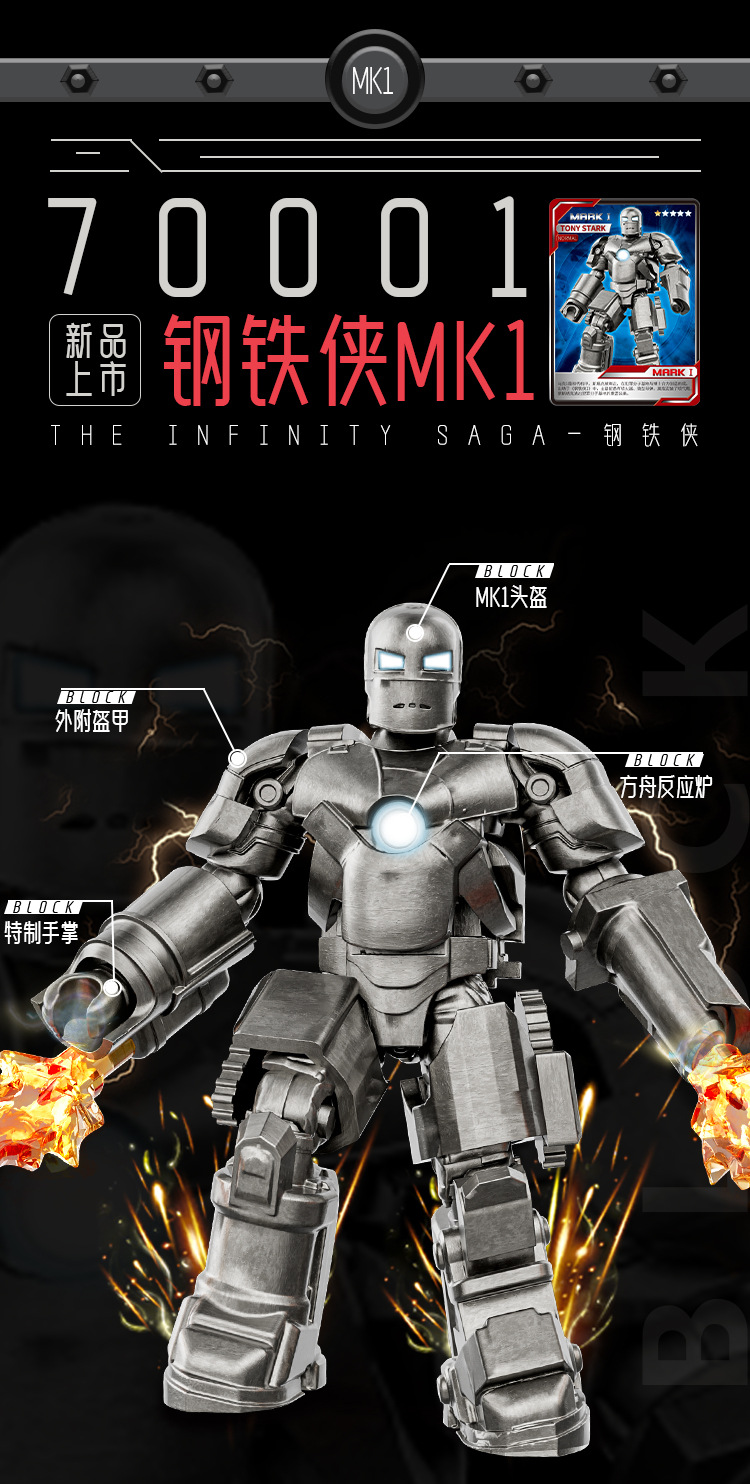 마블 어벤져 스 아이언 맨 MK1-7 빌딩 블록 마크 85 모델 장식 소년을위한 교육 장난감 조립스토어 가기