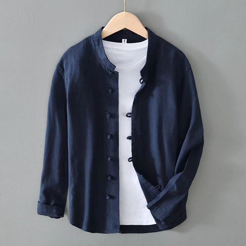 2024 여름 중국 스타일 리넨 긴 소매 셔츠 남성용 캐주얼 루즈 유행 유행 캐주얼 탑스토어 가기