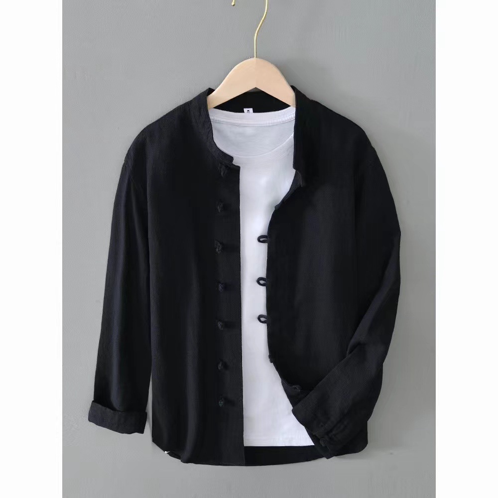 2024 여름 중국 스타일 리넨 긴 소매 셔츠 남성용 캐주얼 루즈 유행 유행 캐주얼 탑