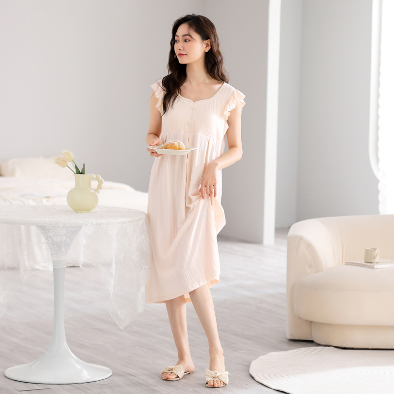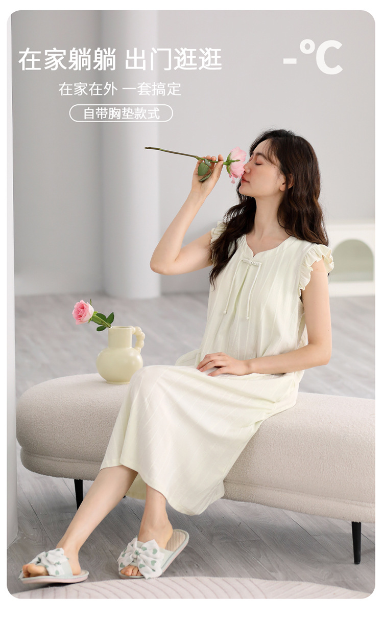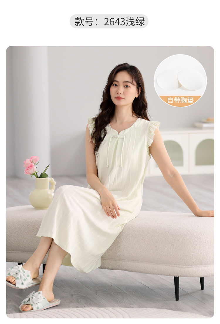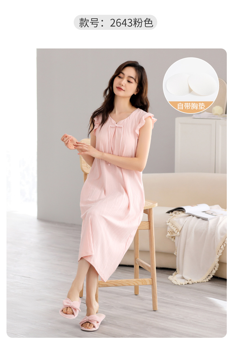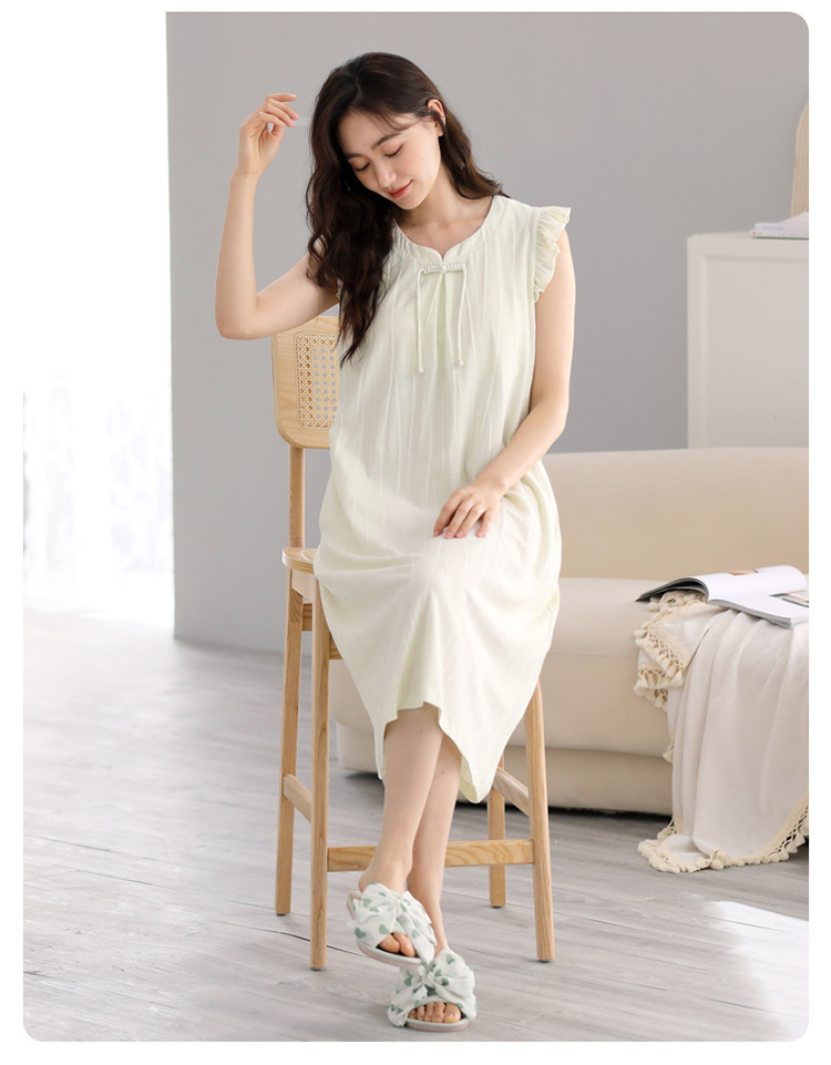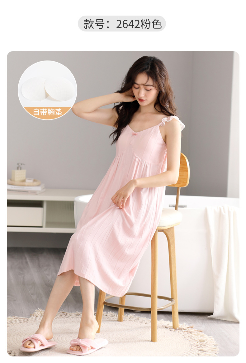 여성을위한 잠옷 여름 2025 새로운 민소매 파자마 드레스 여름 얇은 순수 코튼 패딩 조끼 홈 의류스토어 가기