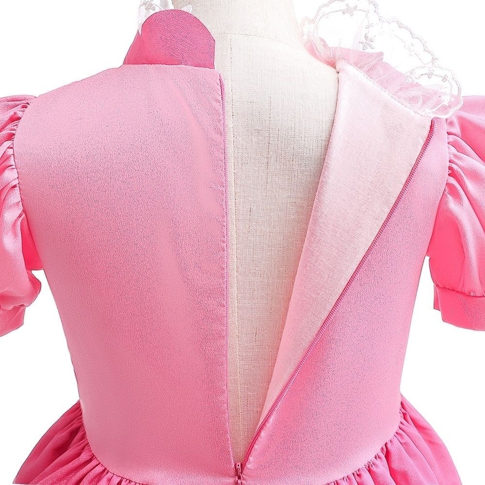 국경 간 여름 어린이 복숭아 공주 원피스 마리오 롤 플레잉 소녀 핑크 원피스 공연 옷