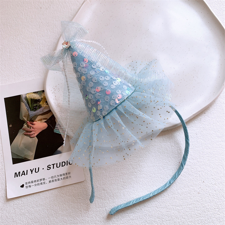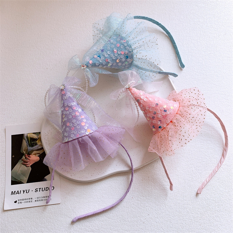 한국 스타일 귀여운 어린이 왕관 모자 머리띠 소녀 메쉬 활 머리띠 아기 생일 머리 장식