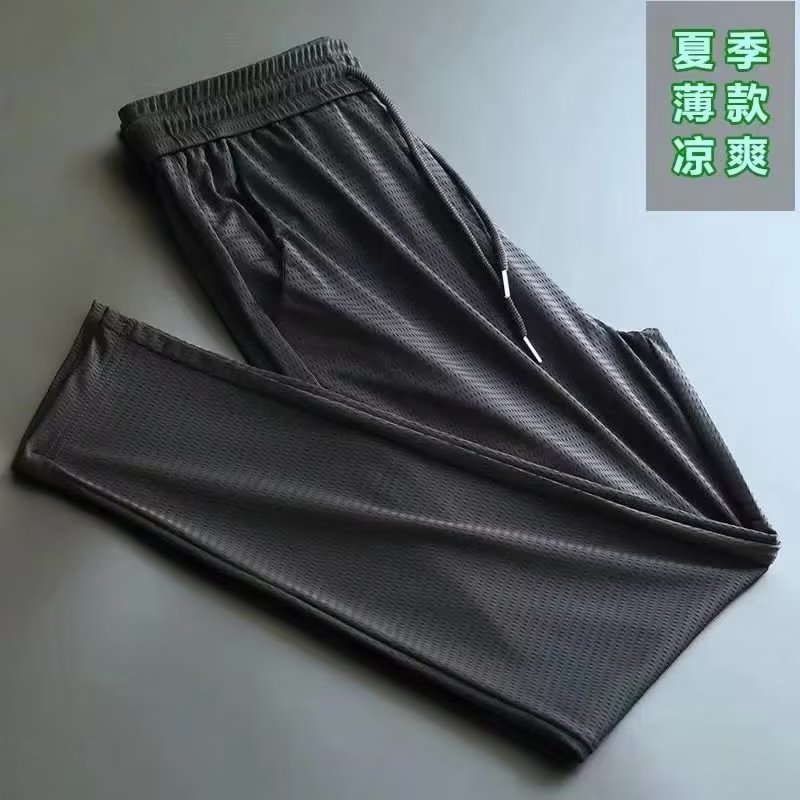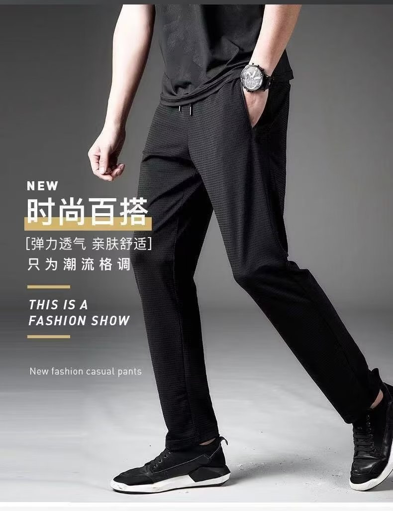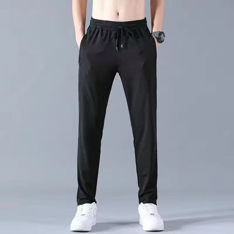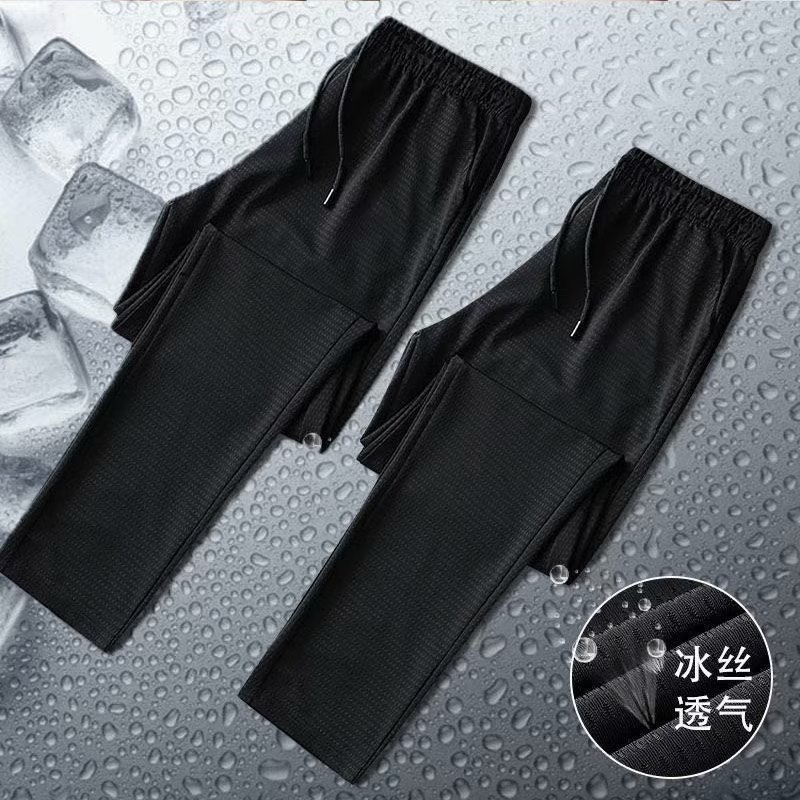 아이스 실크 스트레치 팬츠 남성용 여름 캐주얼 바지 남성용 느슨한 플러스 사이즈 스포츠 바지 남성용 슬림 핏 올 매치 스트레이트 롱 팬츠