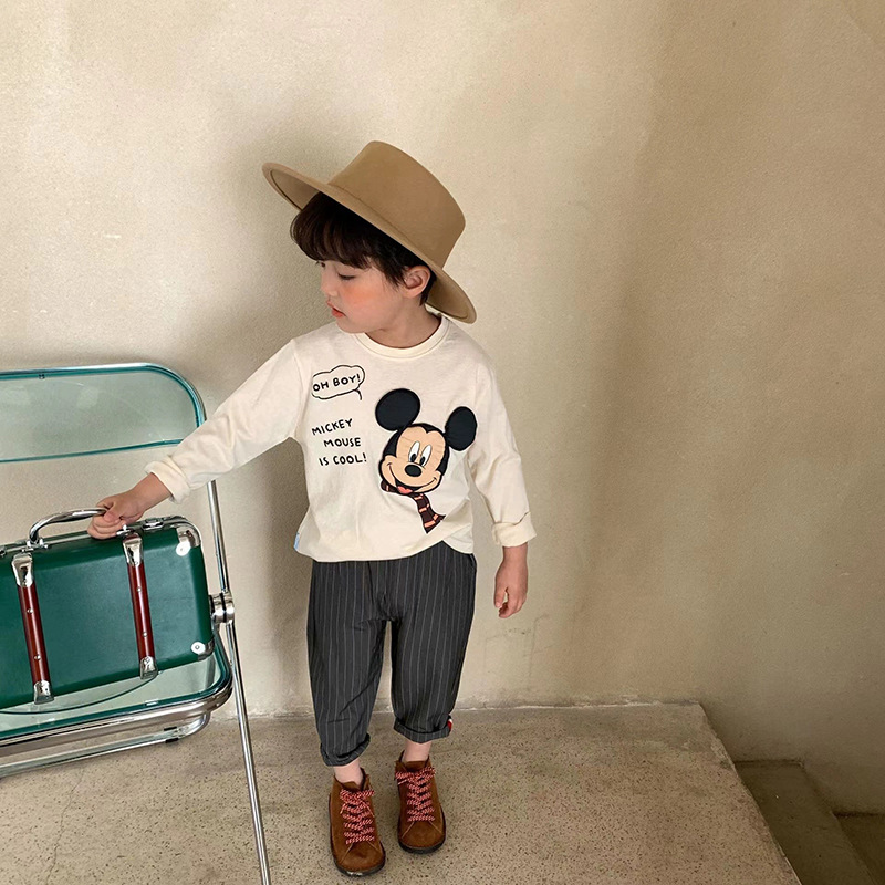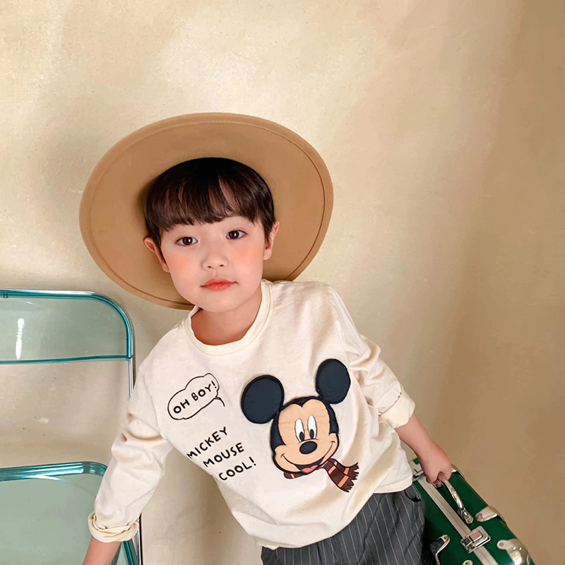 면 남성과 여성의 긴팔 티셔츠 봄 미키 귀여운 만화 인쇄 어린이 바닥 셔츠 봄과 가을스토어 가기