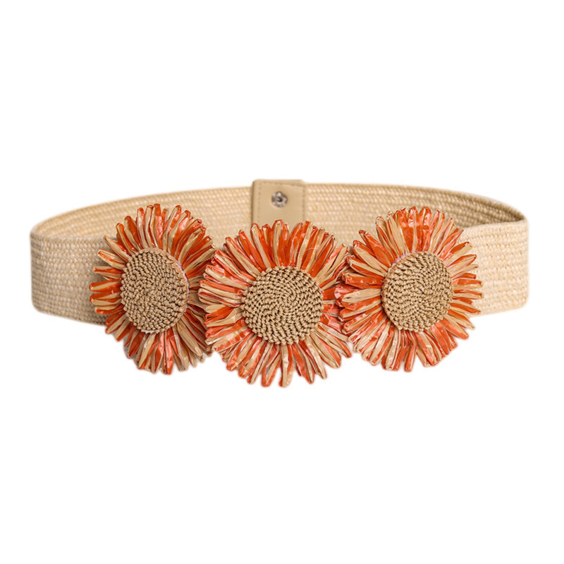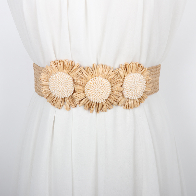 새로운 태양 꽃 장식 pp 잔디 벨트 여성의 넓은 탄성 탄성 패션 보헤미안 원피스 허리 씰