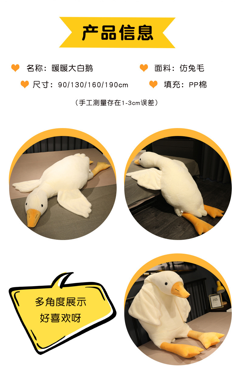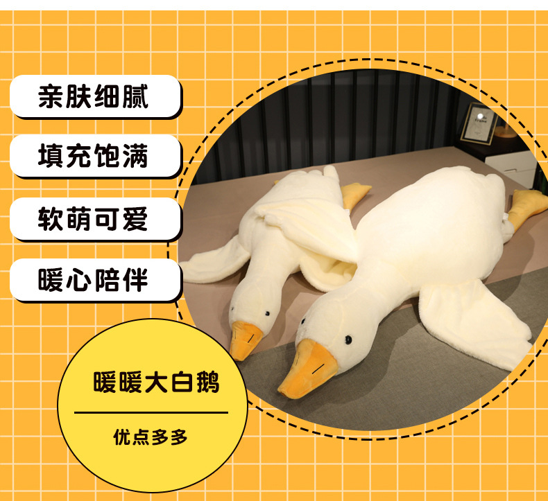 큰 흰색 거위 베개 봉제 장난감 큰 거위 인형 Ragdoll 침대 다리 클립 여자를위한 잠자는 인형 생일 선물스토어 가기